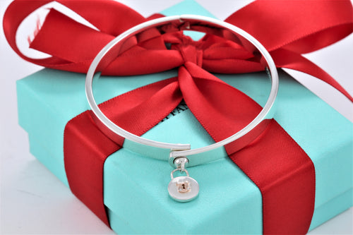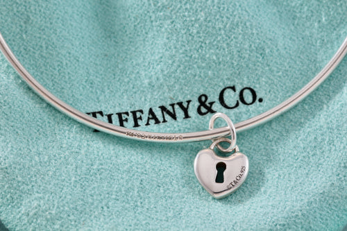 Tiffany & Co. Silver Small Keyhole Heart Dangle Bangle Bracelet *Custom*