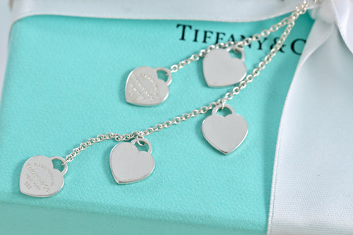 Please Return To Tiffany & Co. Dangling Silver Hearts 5 Drop Necklace