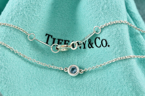 Tiffany & Co. Elsa Peretti Silver Color By The Yard Aquamarine Delicate Chain Bracelet