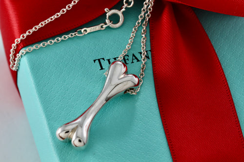 Tiffany & Co. Elsa Peretti Silver Large Dog Bone Pendant 16" Thick Chain Necklace
