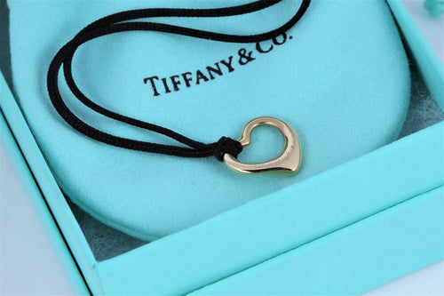 Tiffany & Co. Elsa Peretti 18K Gold Small Open Heart necklace on 18" Back Silk Cord