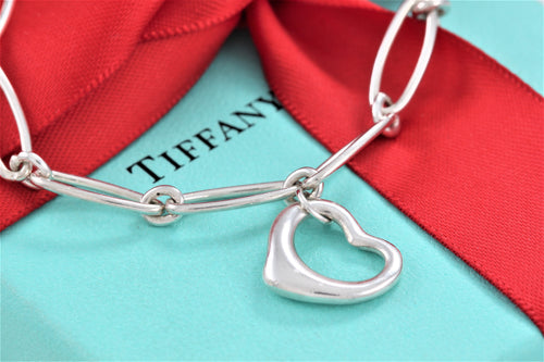 Tiffany & Co. Elsa Peretti Silver Small Open Heart Link 7" Bracelet