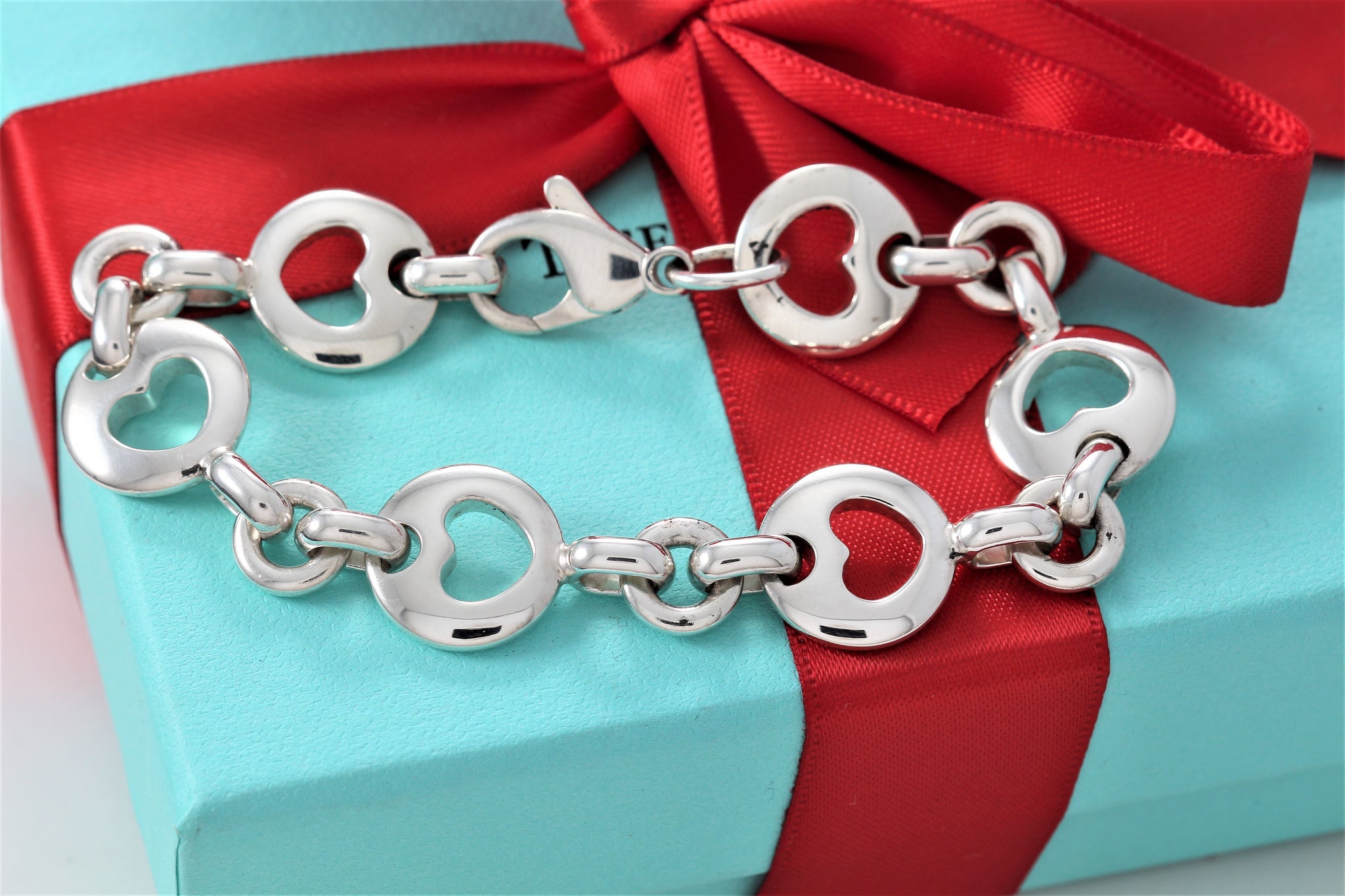 Tiffany & Co. Silver Stencil Heart Link 7" Bracelet