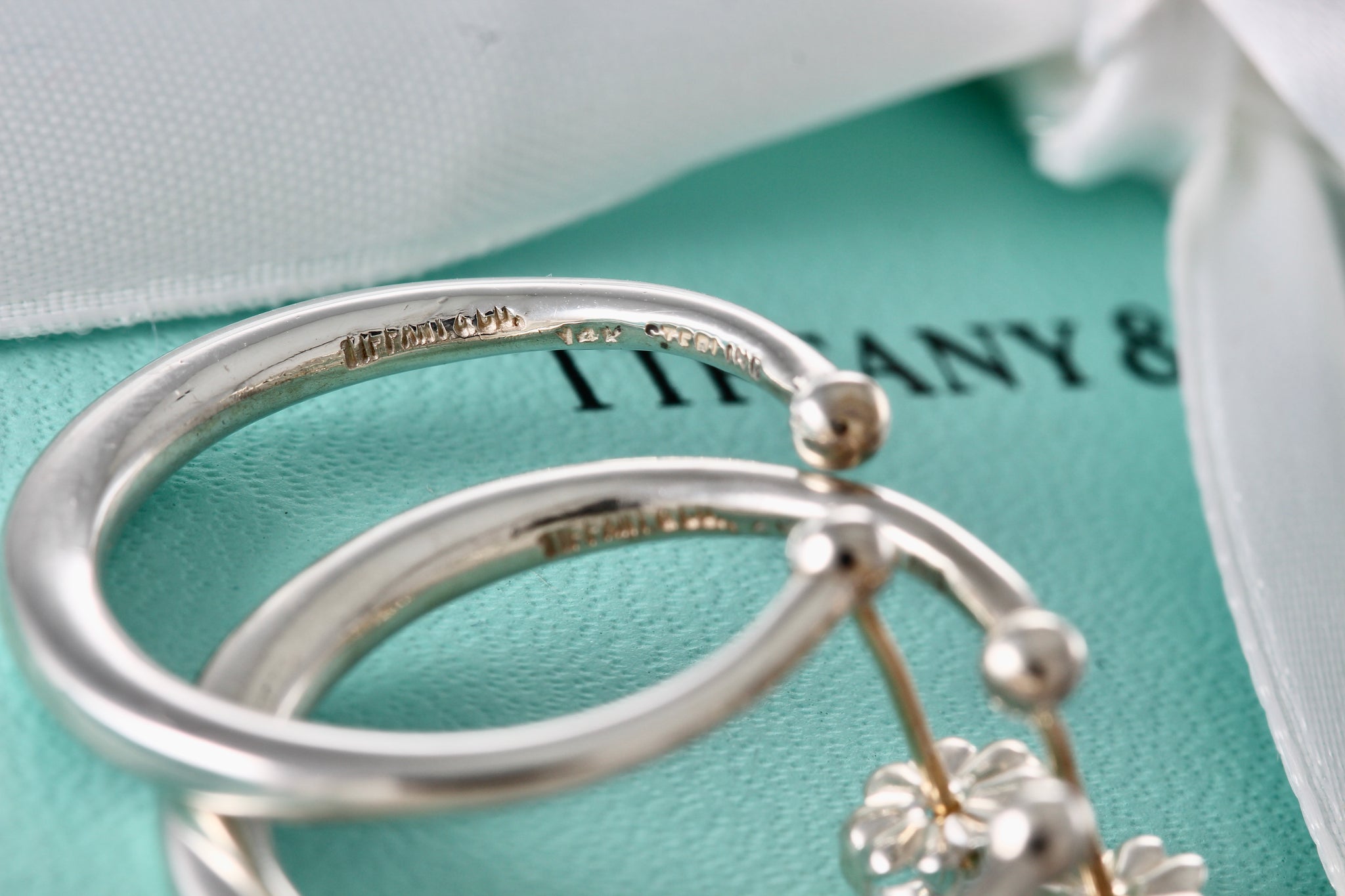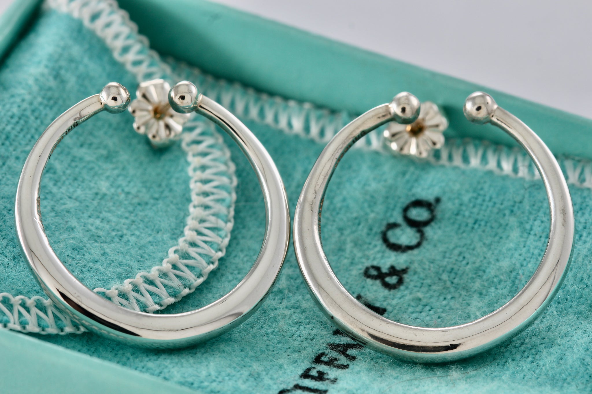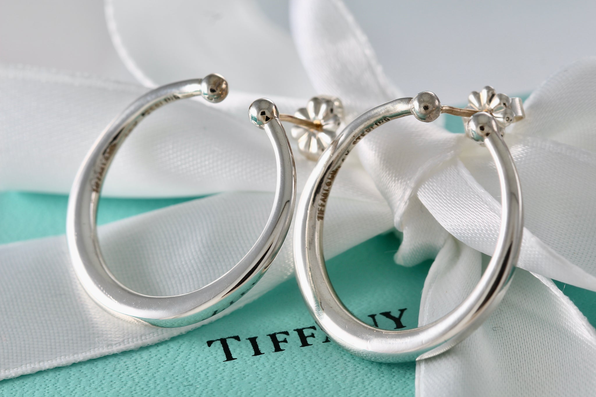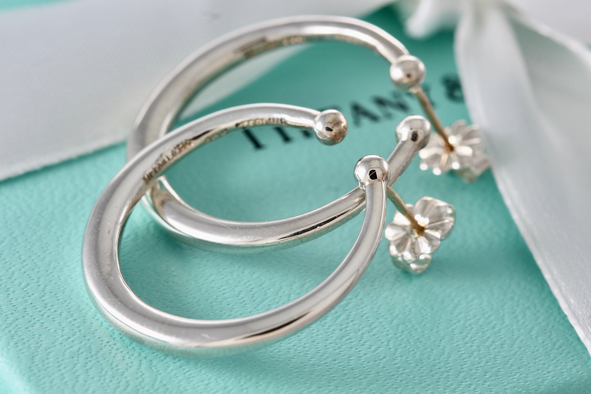 Tiffany & Co. Vintage Silver Open Circle Hoop Stud Earrings w/ 14K Gold Post