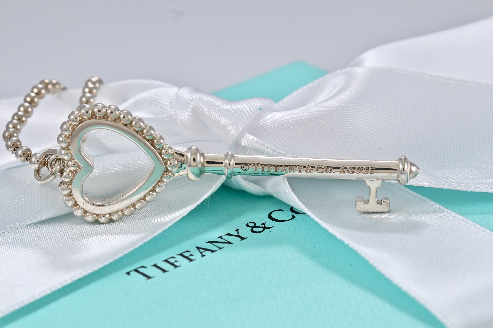 Tiffany & Co. Silver Blue Enamel Beaded Edge Large Heart Key Pendant Only