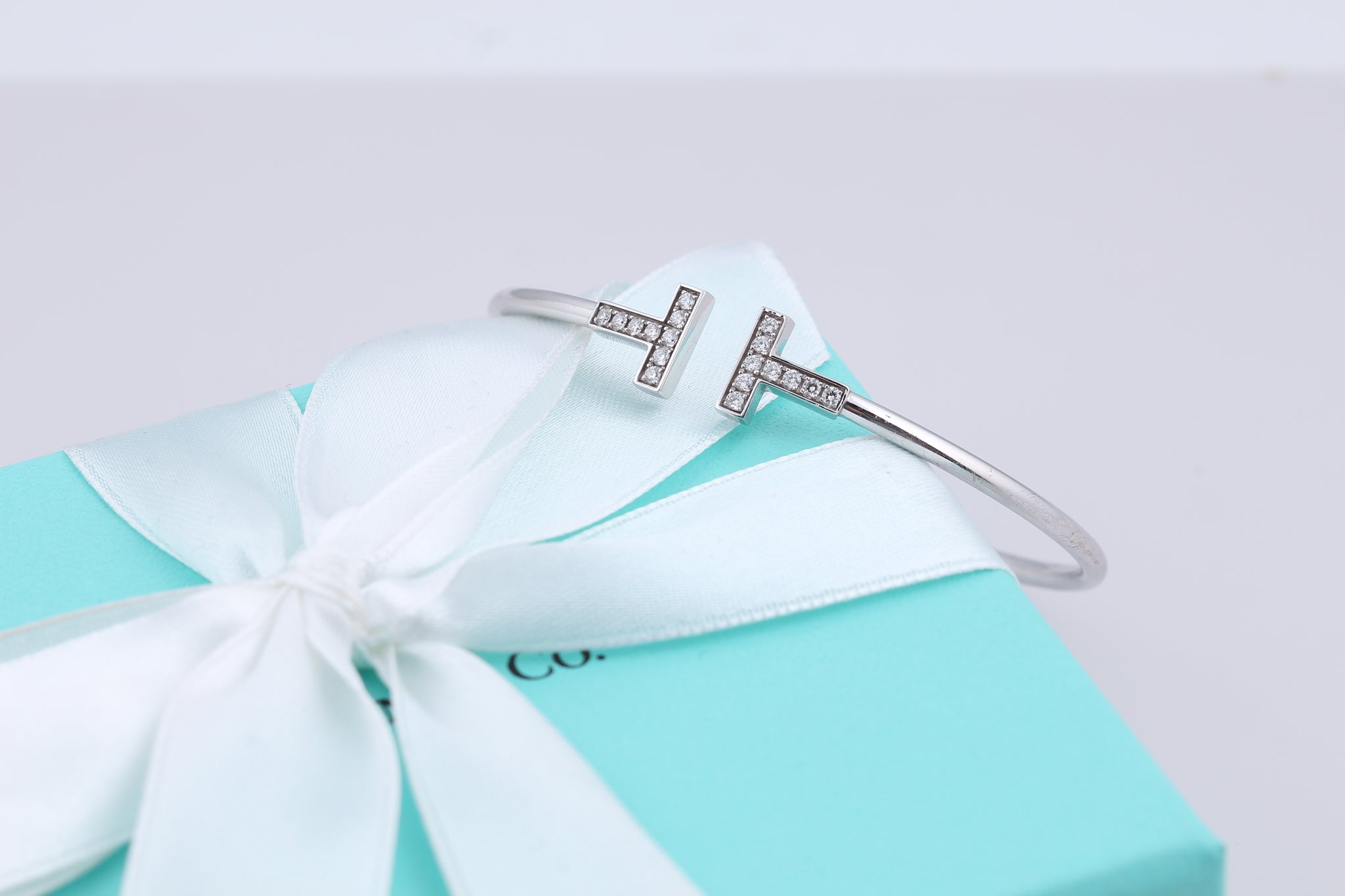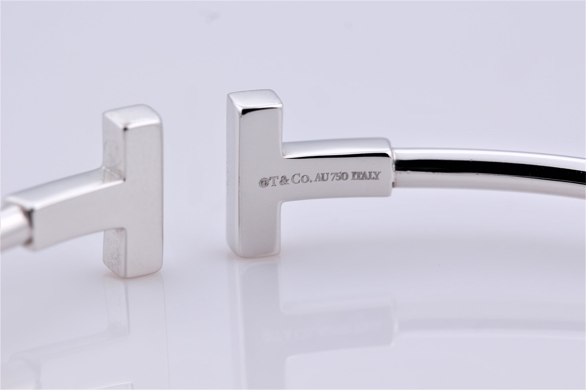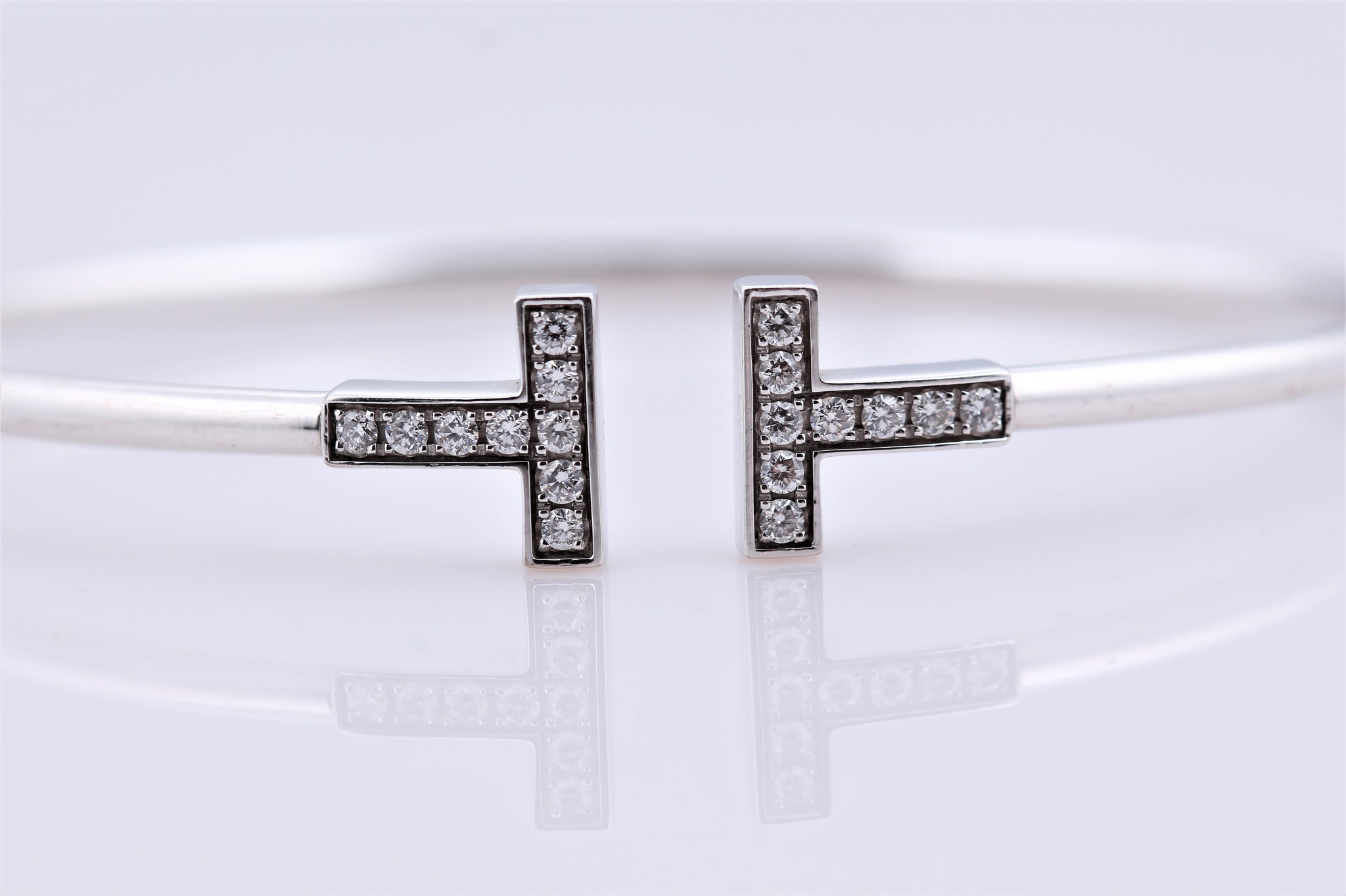 Tiffany & Co. 18K White Gold Diamond T Wire Bangle Bracelet