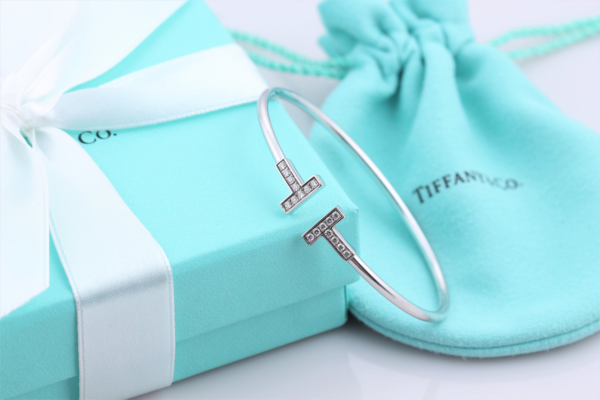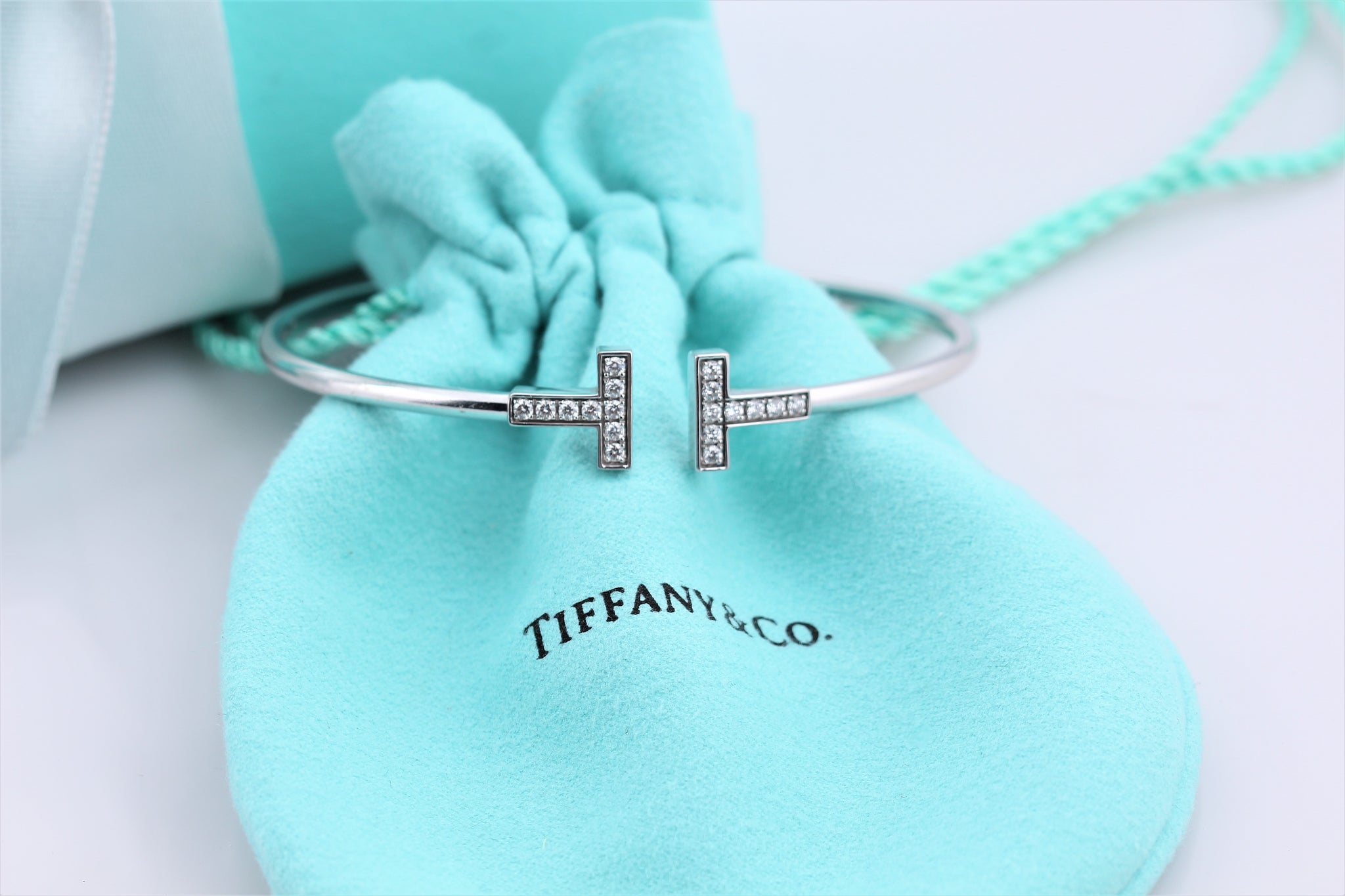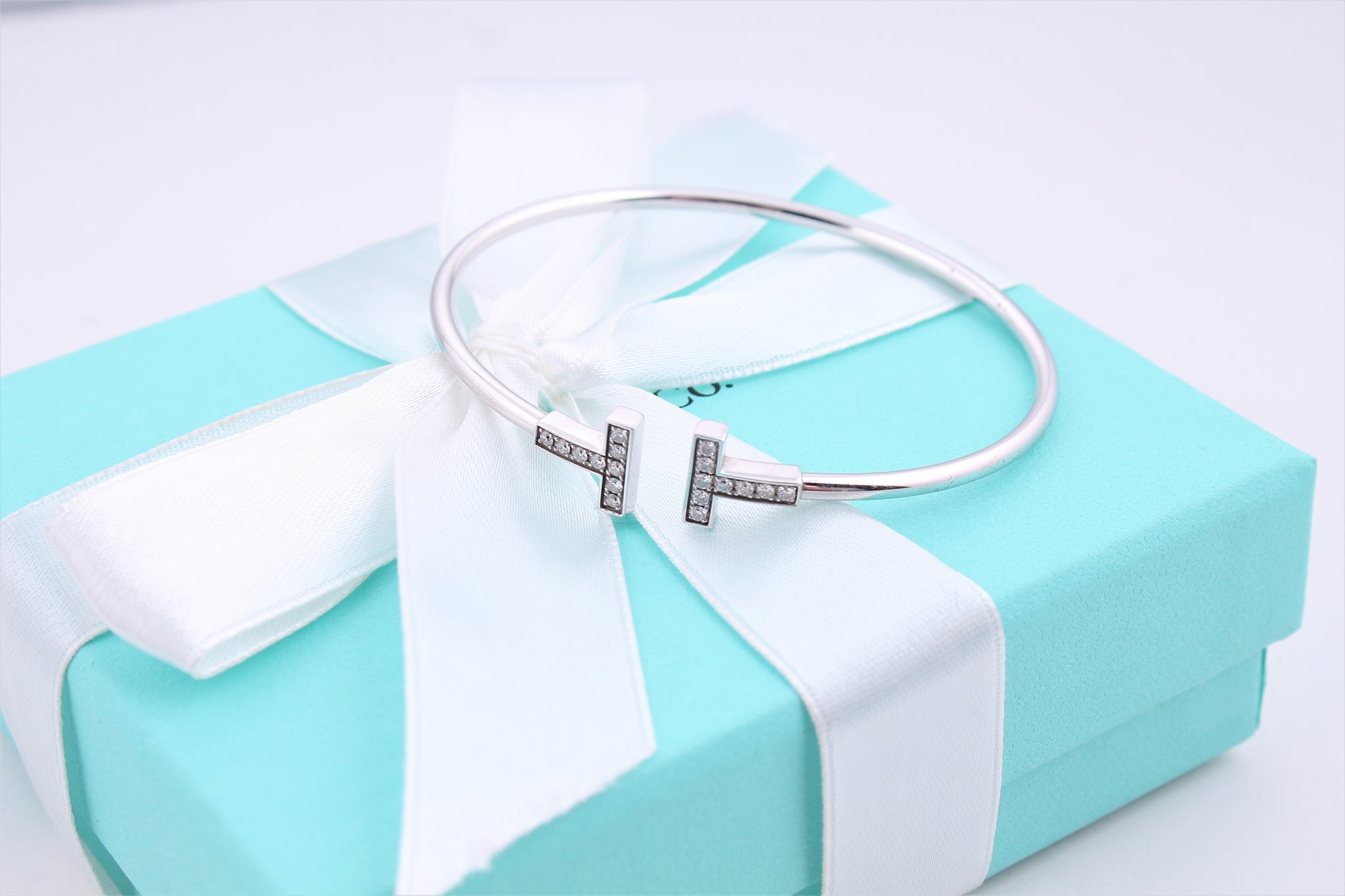 Tiffany & Co. 18K White Gold Diamond T Wire Bangle Bracelet