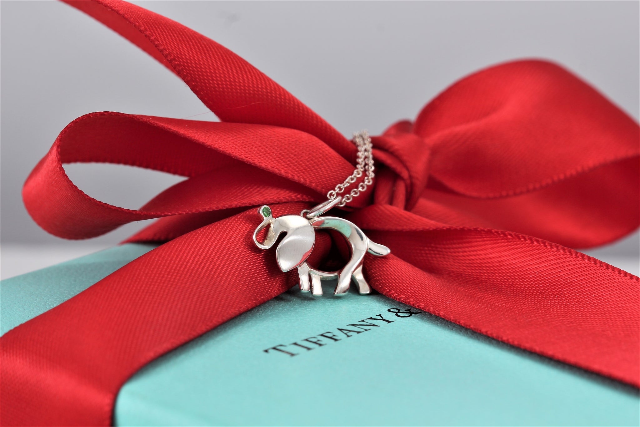 Tiffany & Co. Silver "Save The Wildlife" Tsvorite Stone Elephant Charm Necklace