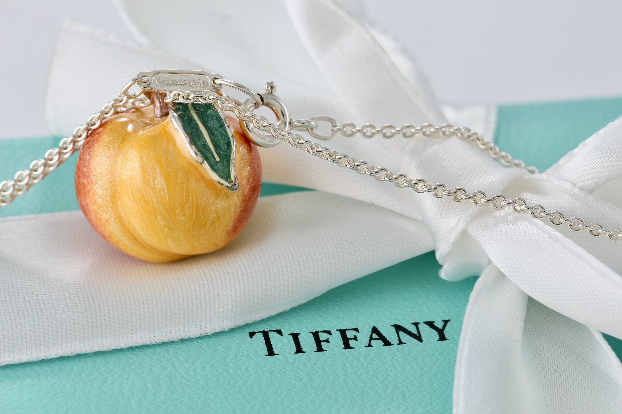 Tiffany & Co. Silver Enamel Peach Fruit Pendant Necklace RARE