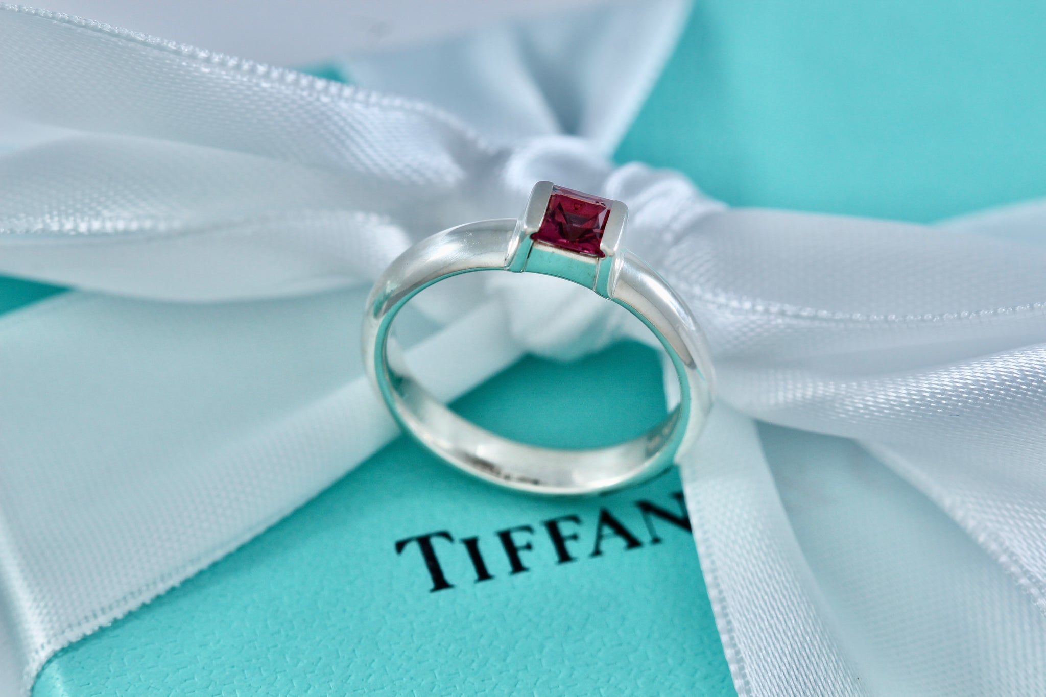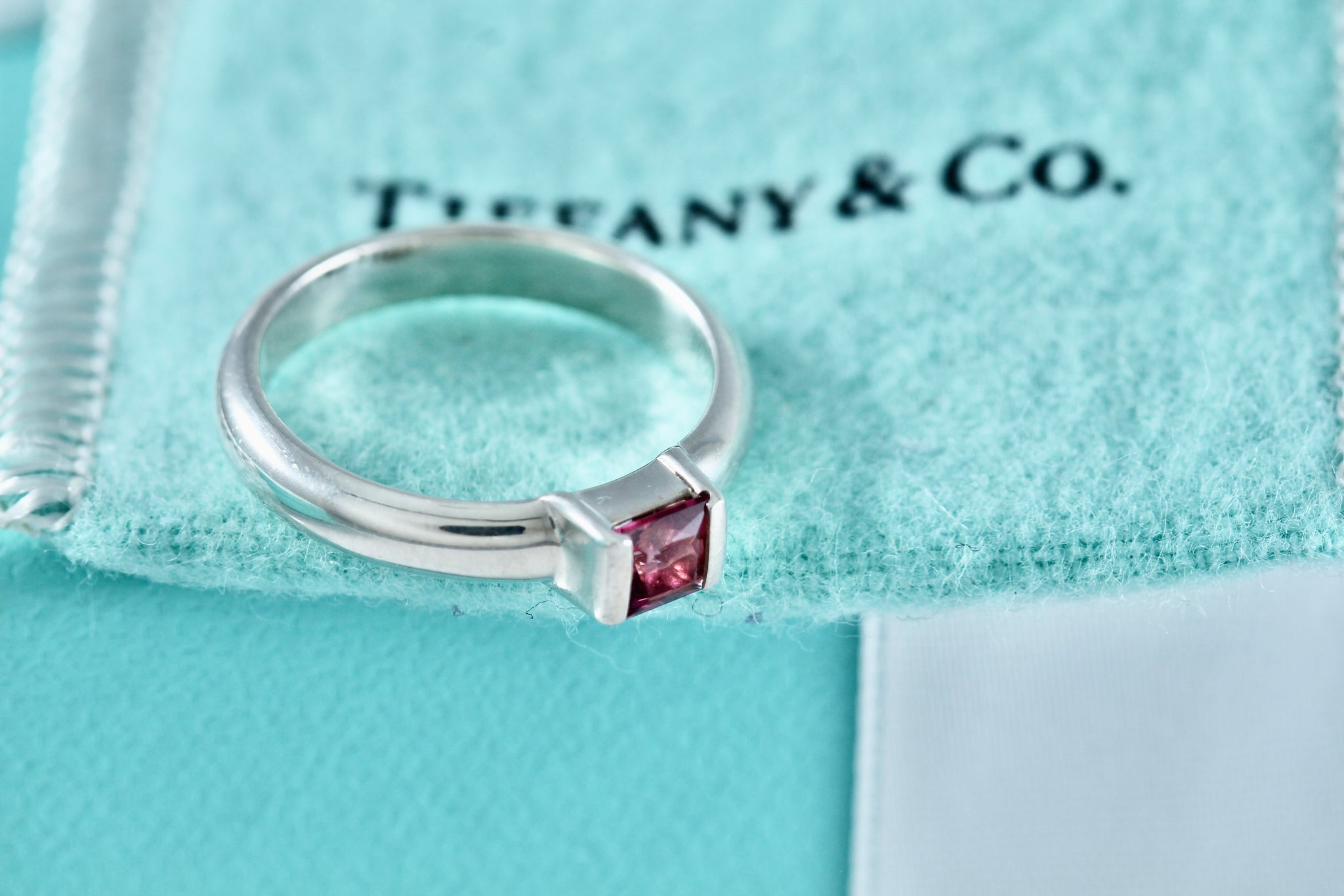 Tiffany & Co. Silver Pink Square Tourmaline Stacking Ring