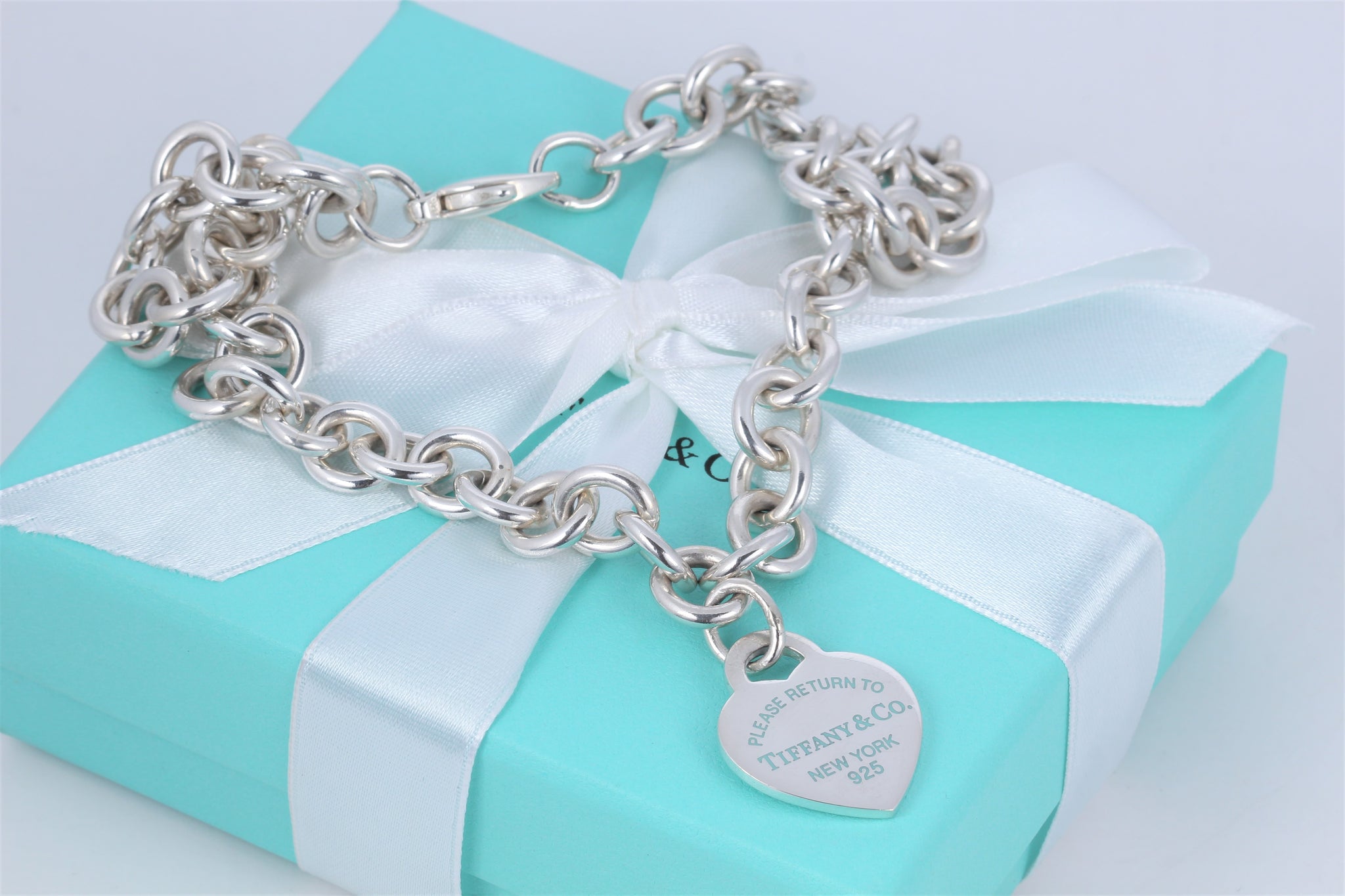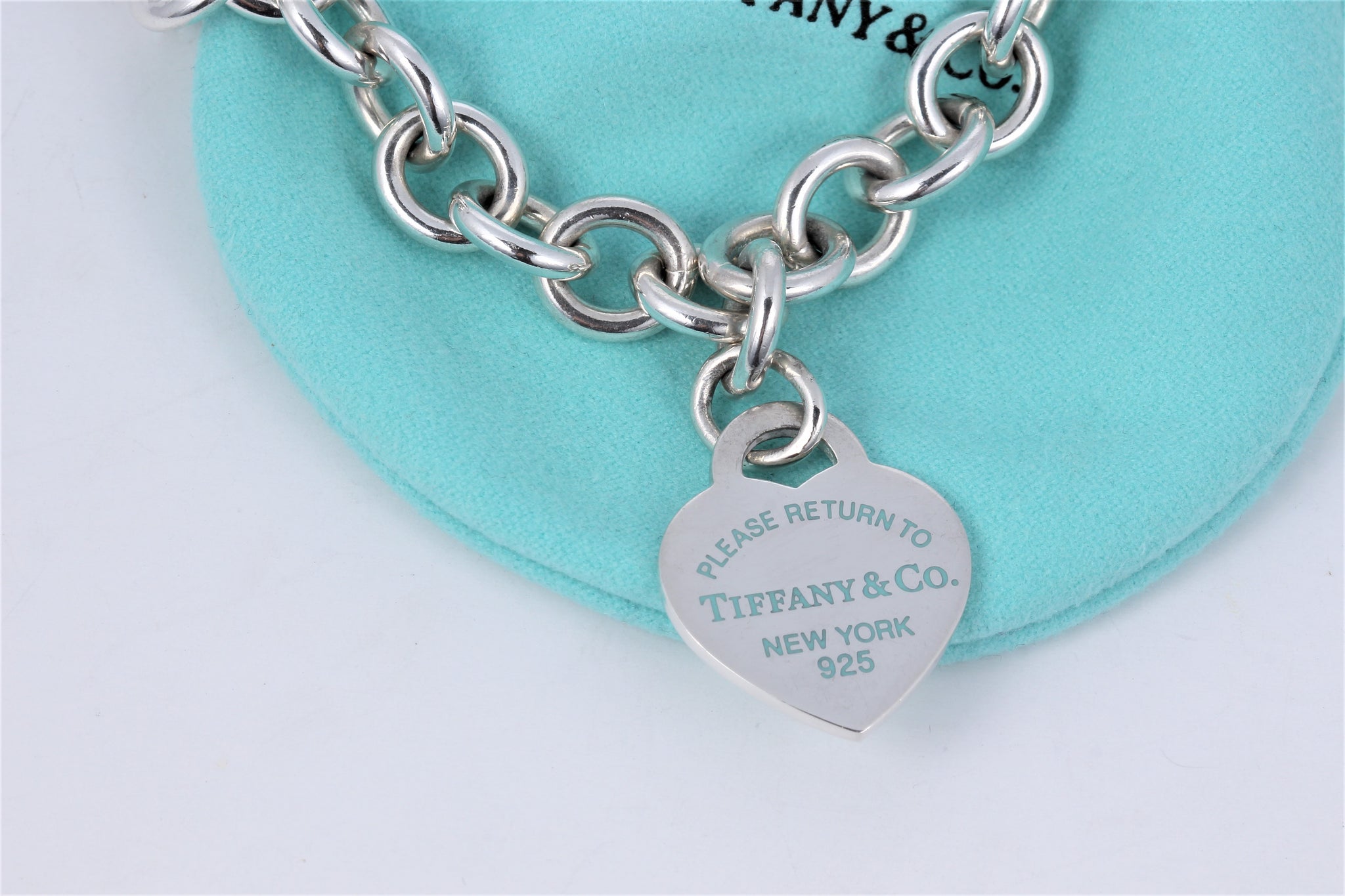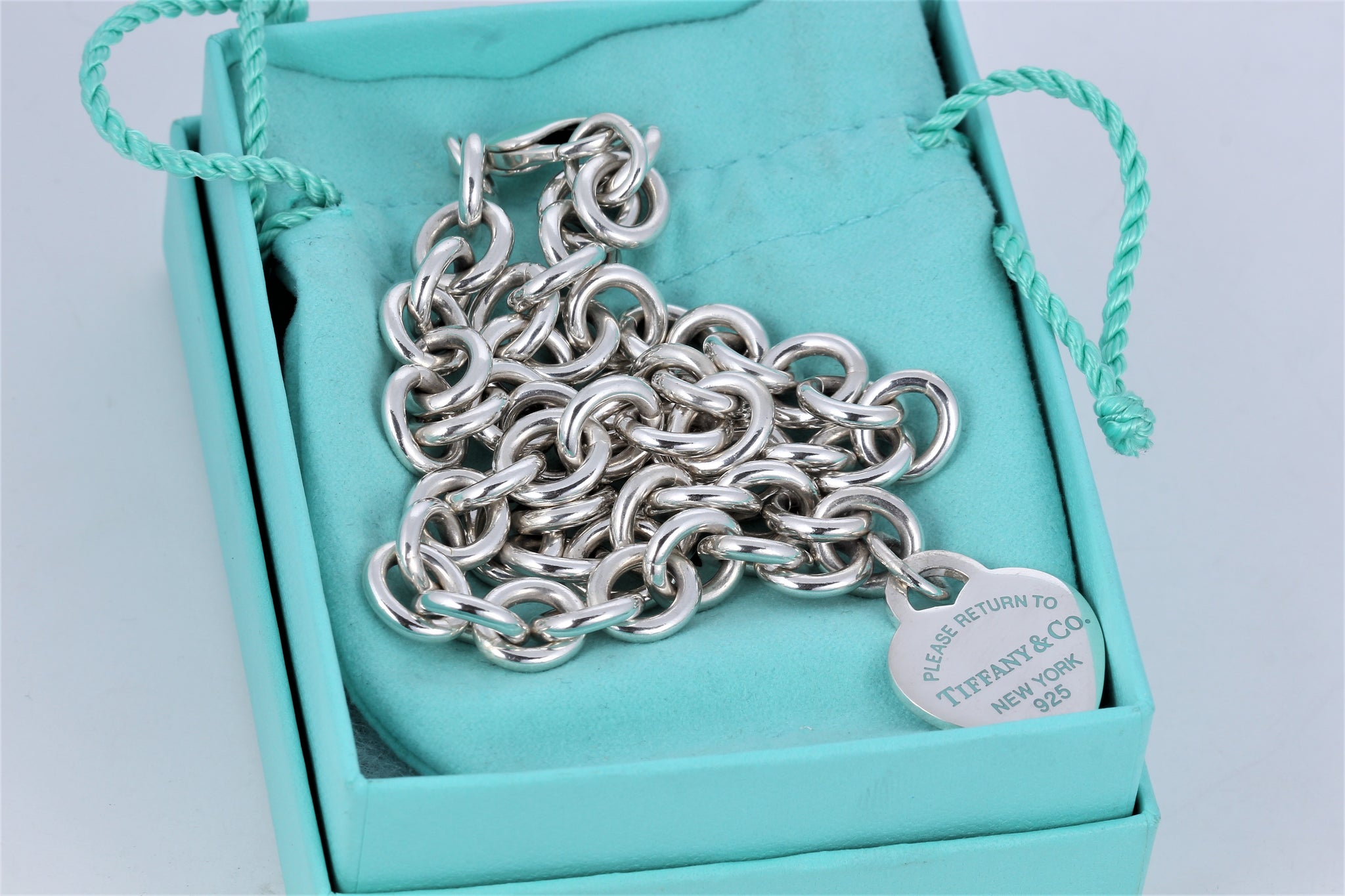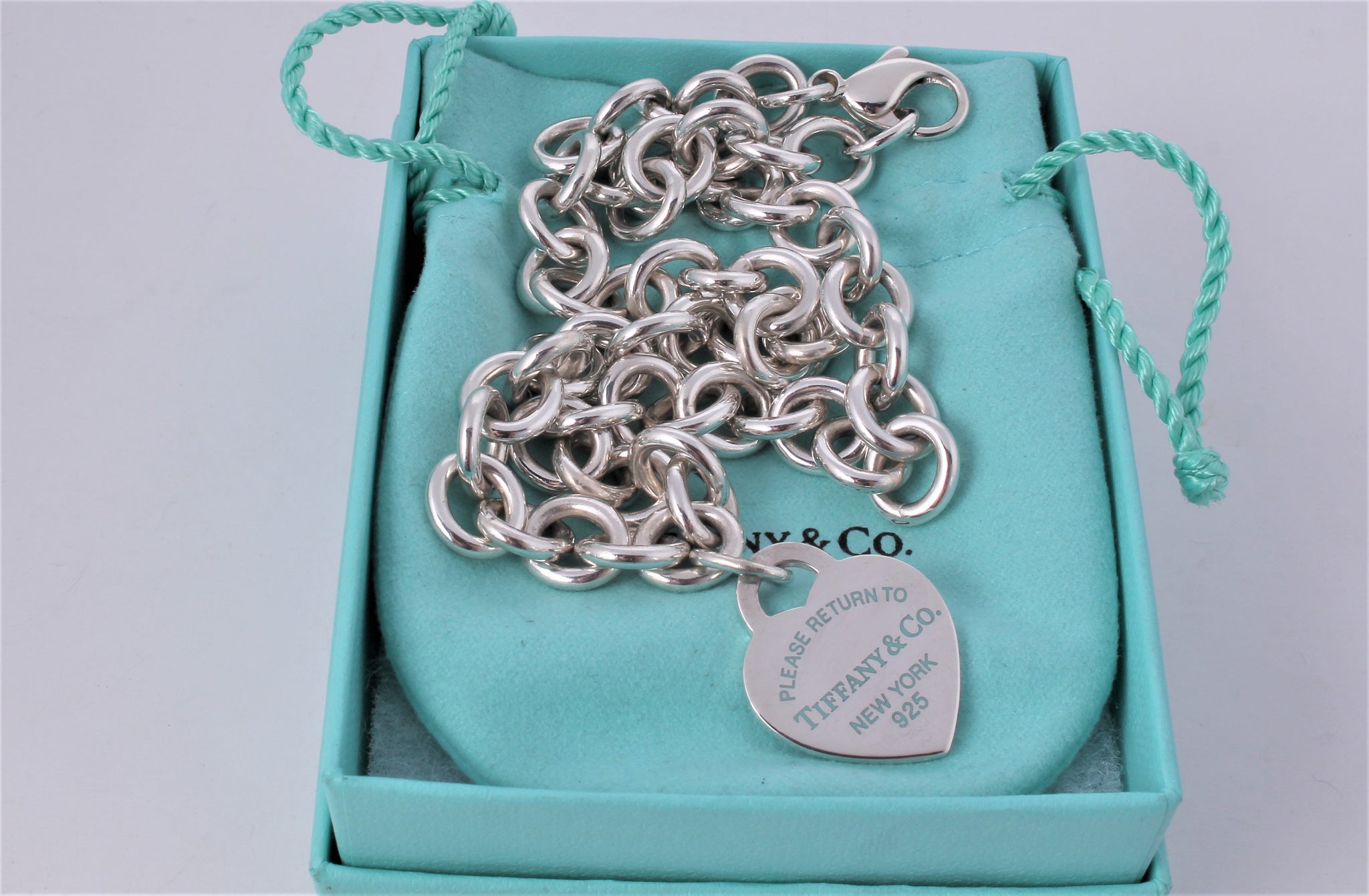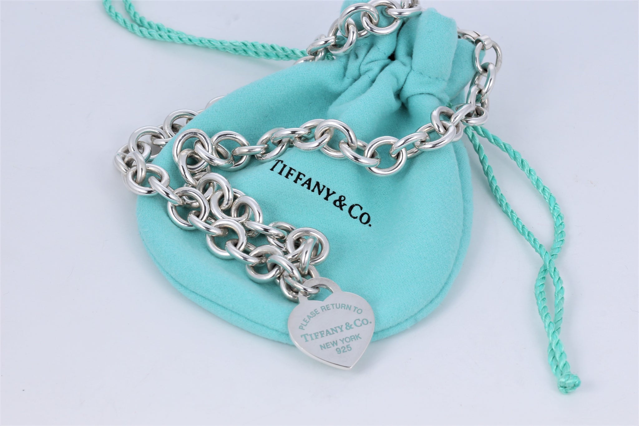 Return to Tiffany & Co. Silver Blue Enamel Lettering Heart Charm 16" Necklace