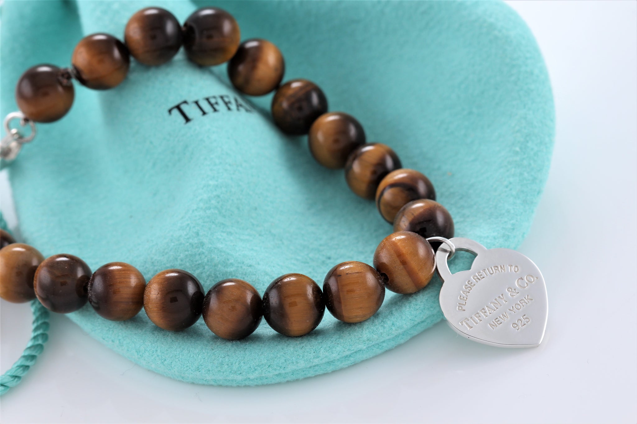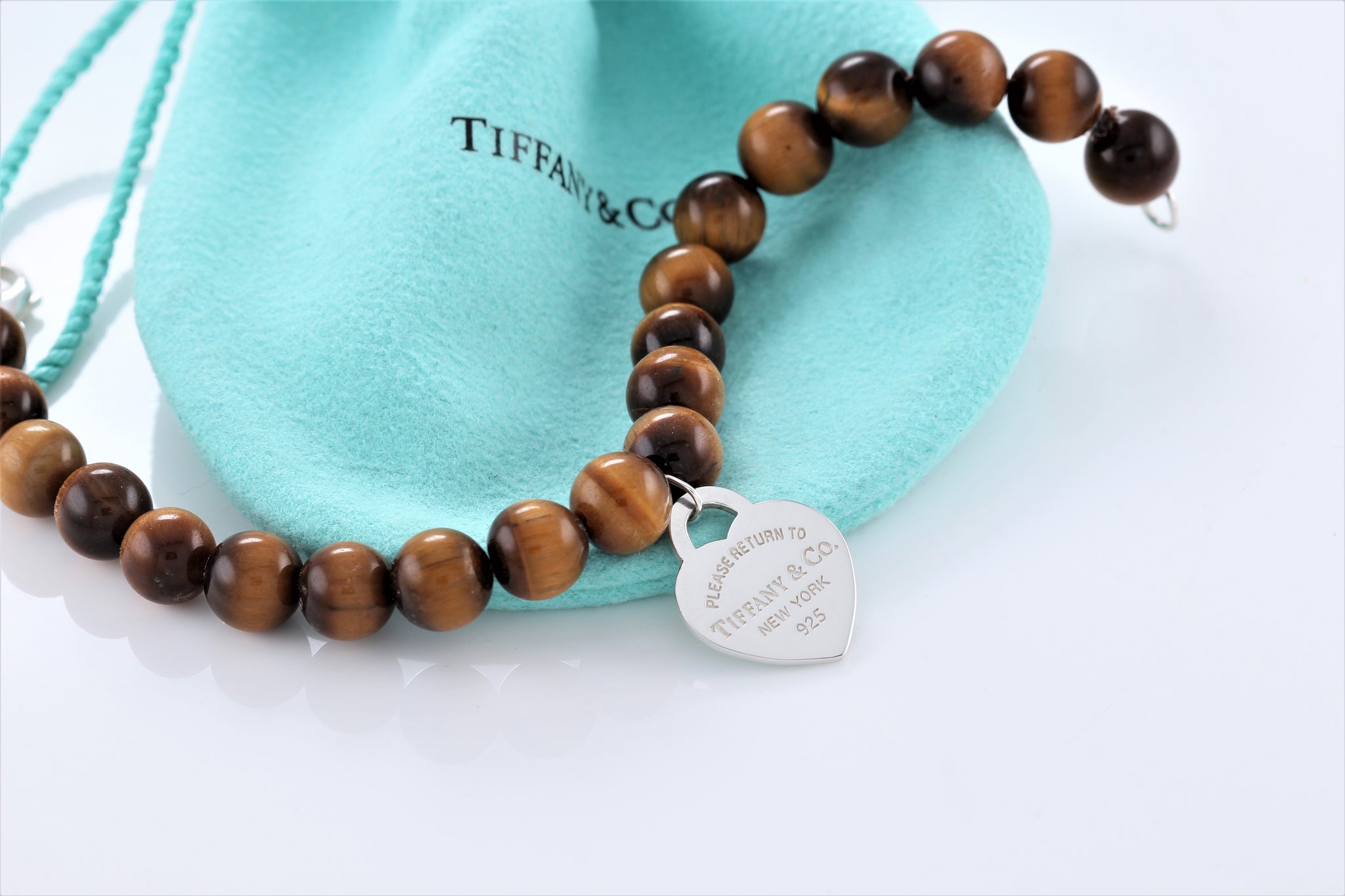 Return To Tiffany & Co. Silver Tiger Eye Heart Charm 8mm Beaded Bracelet