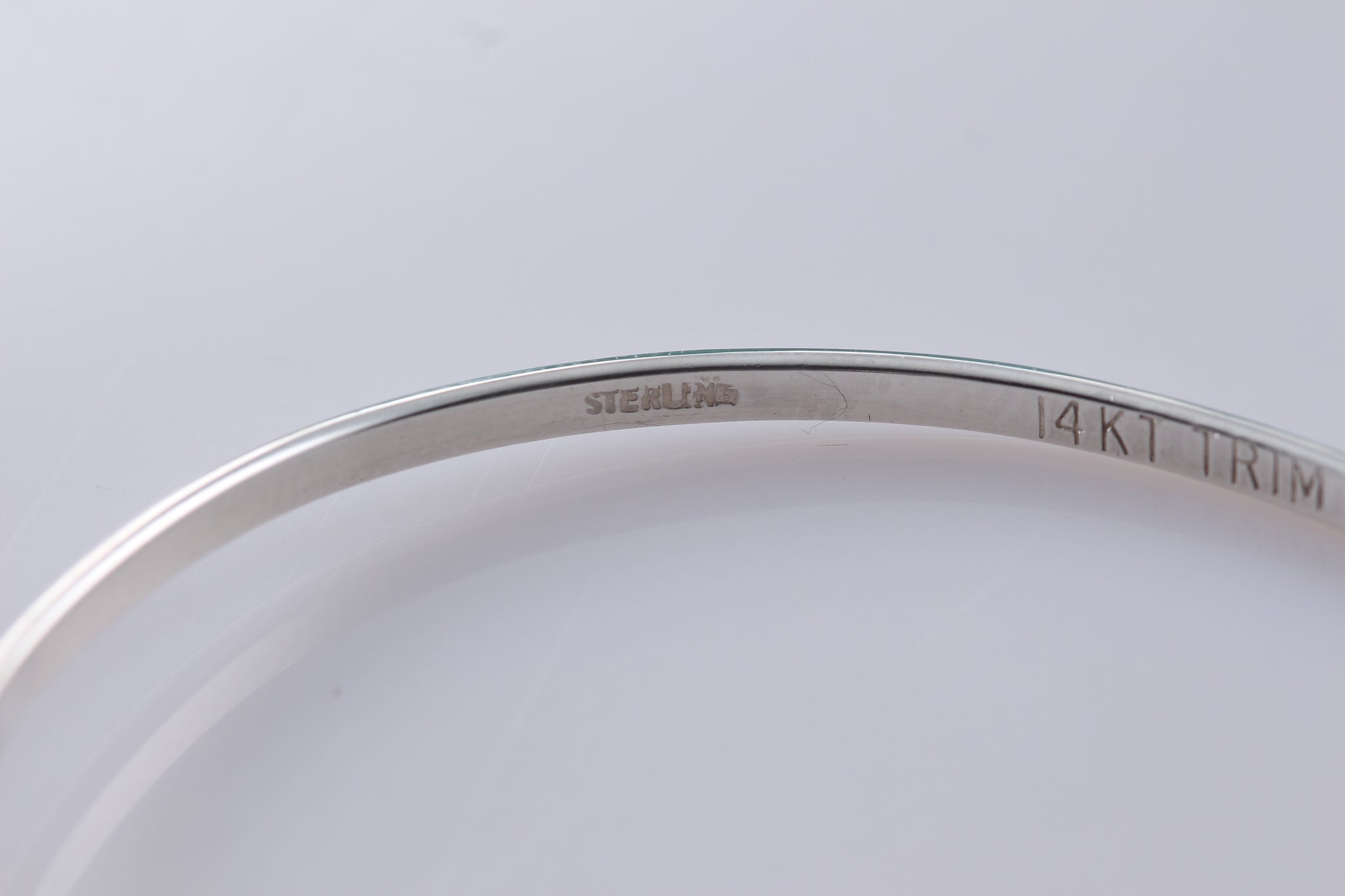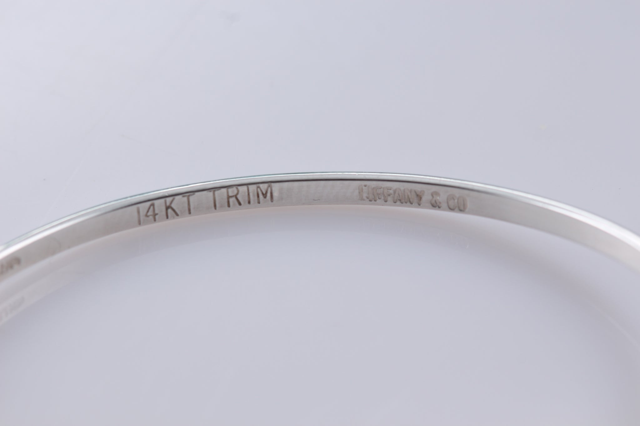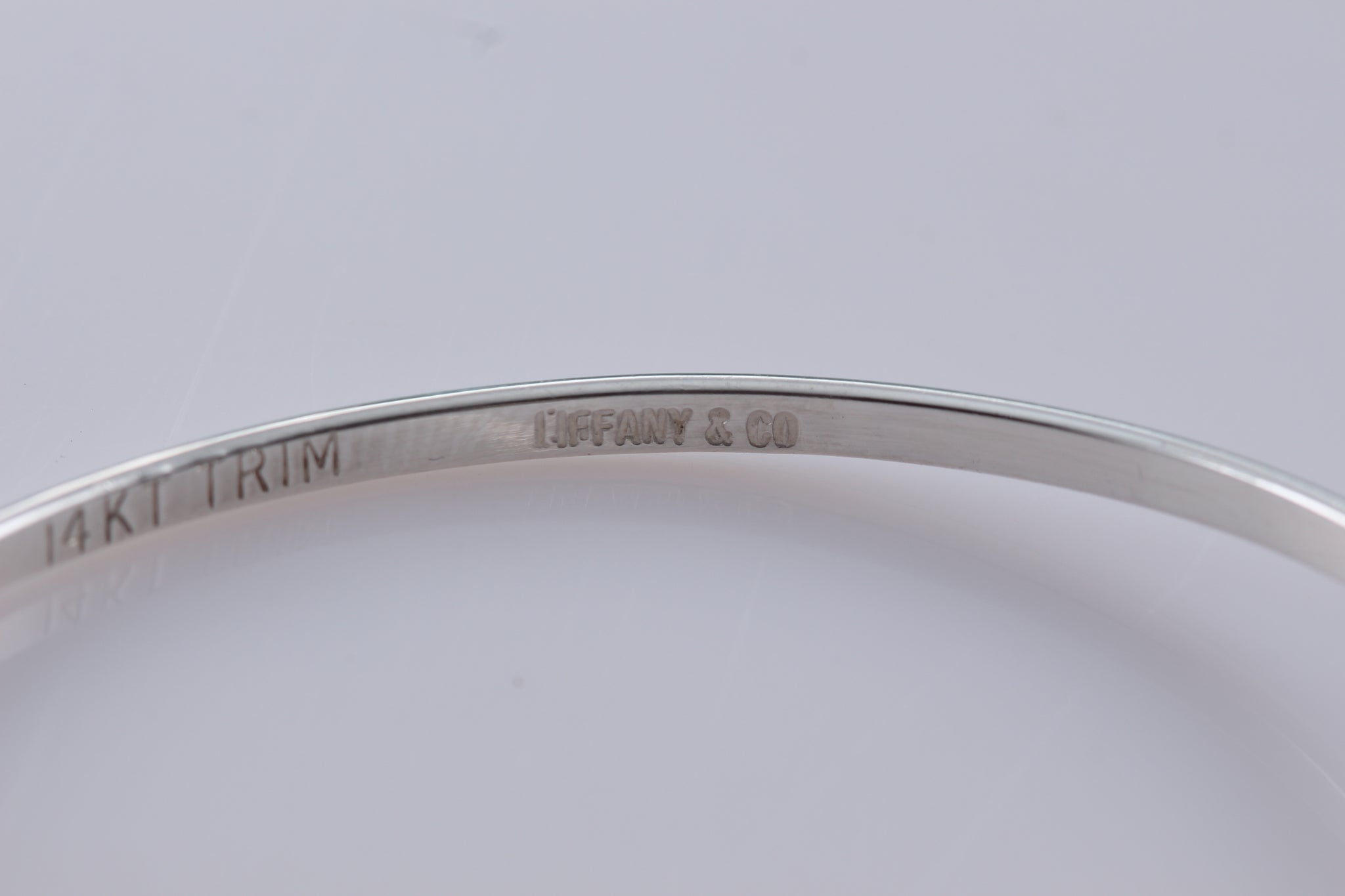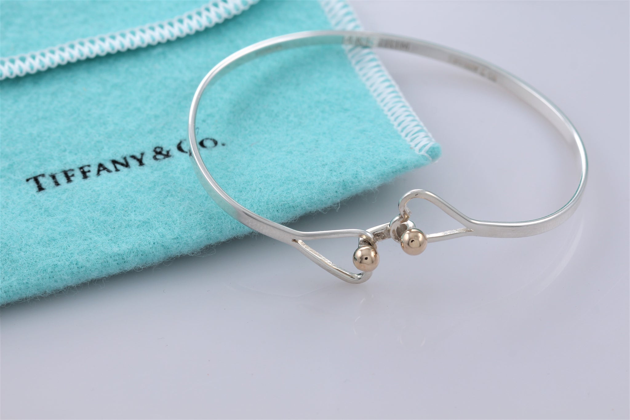 Tiffany & Co. 14K Gold Trim & Silver Double Heart Hook Bangle Bracelet