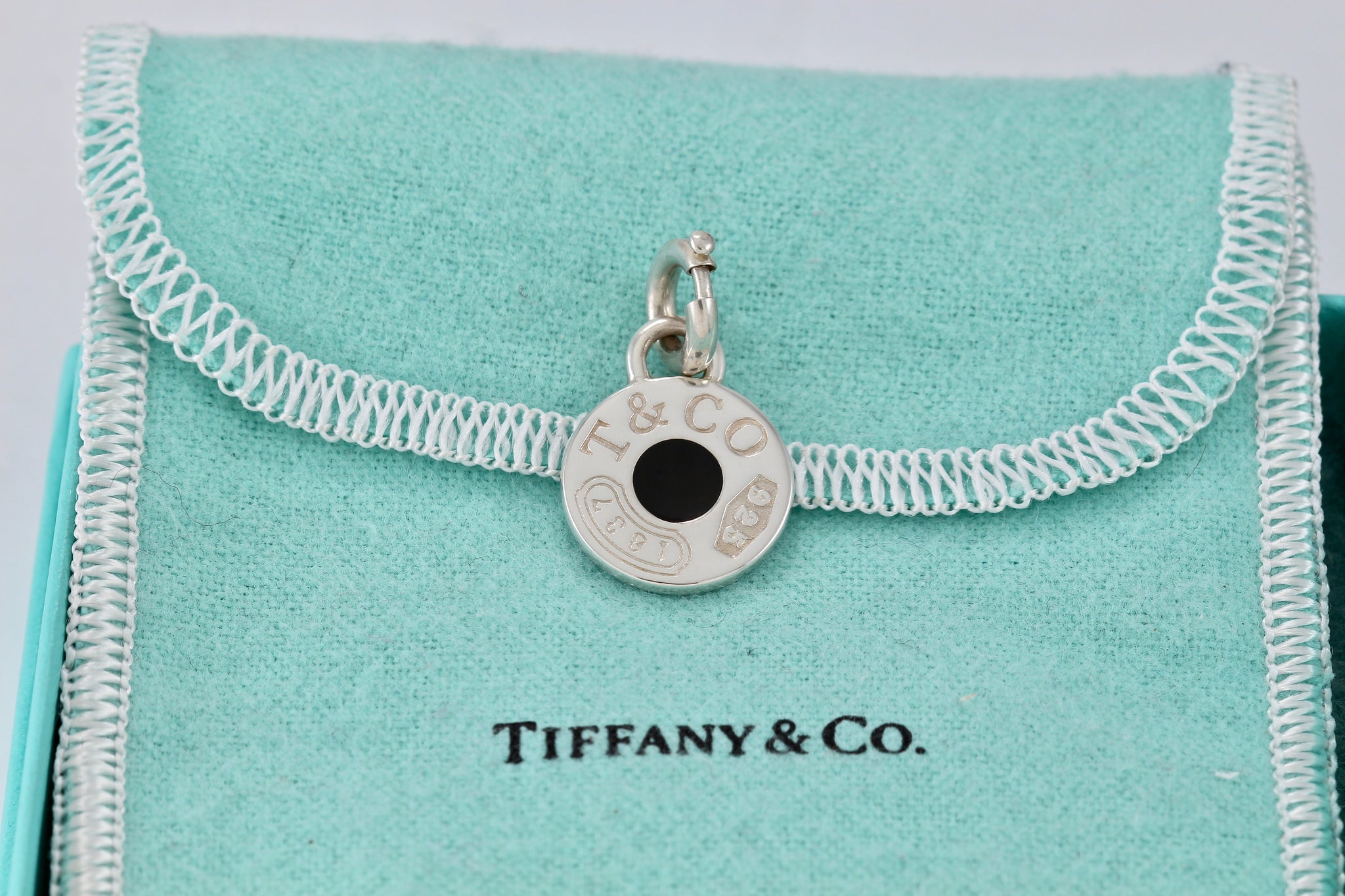 Tiffany & Co. 1837 Silver Black enamel Round Charm w/ Clasp
