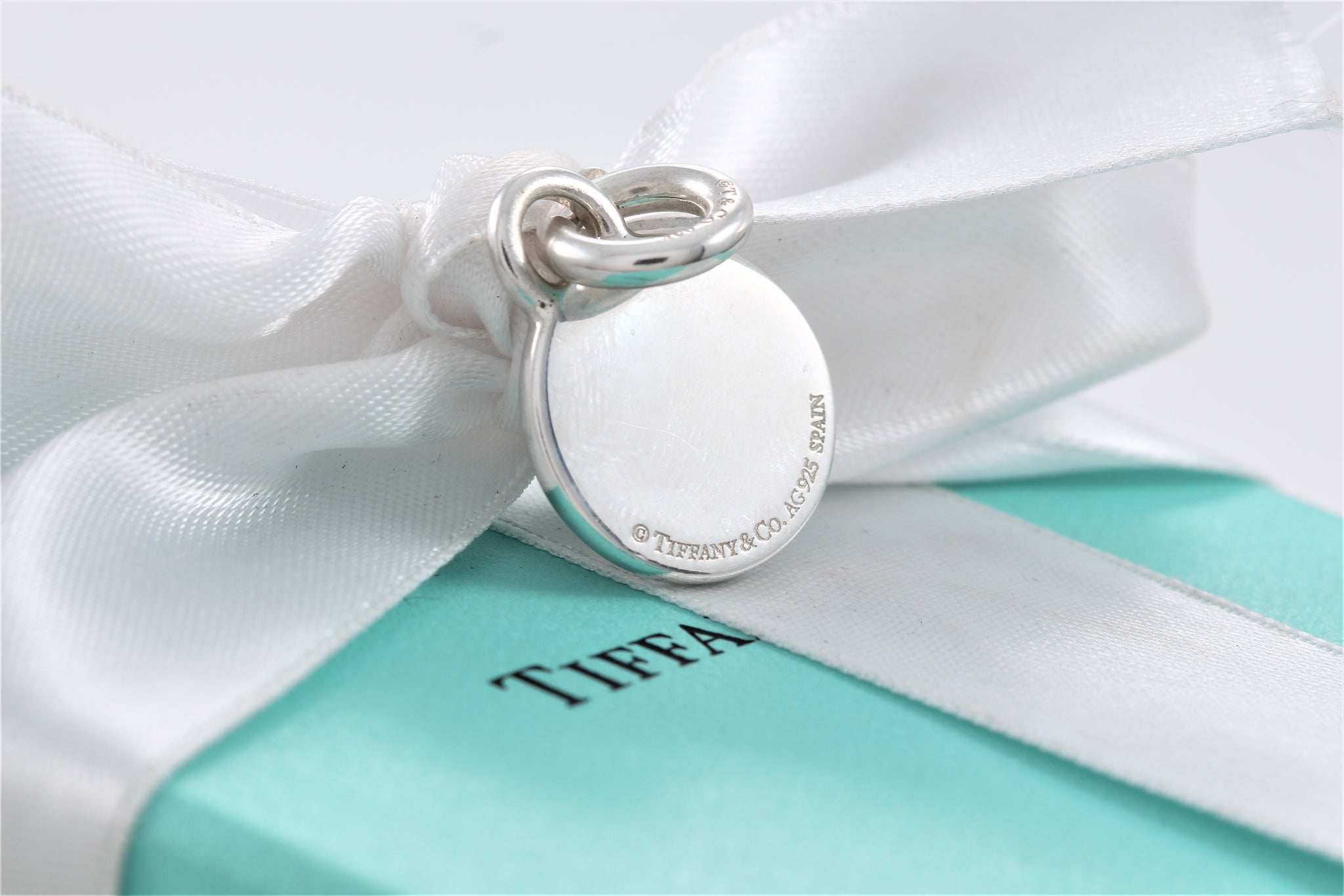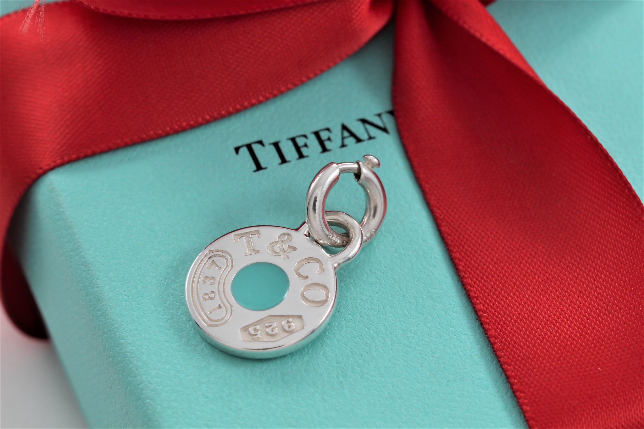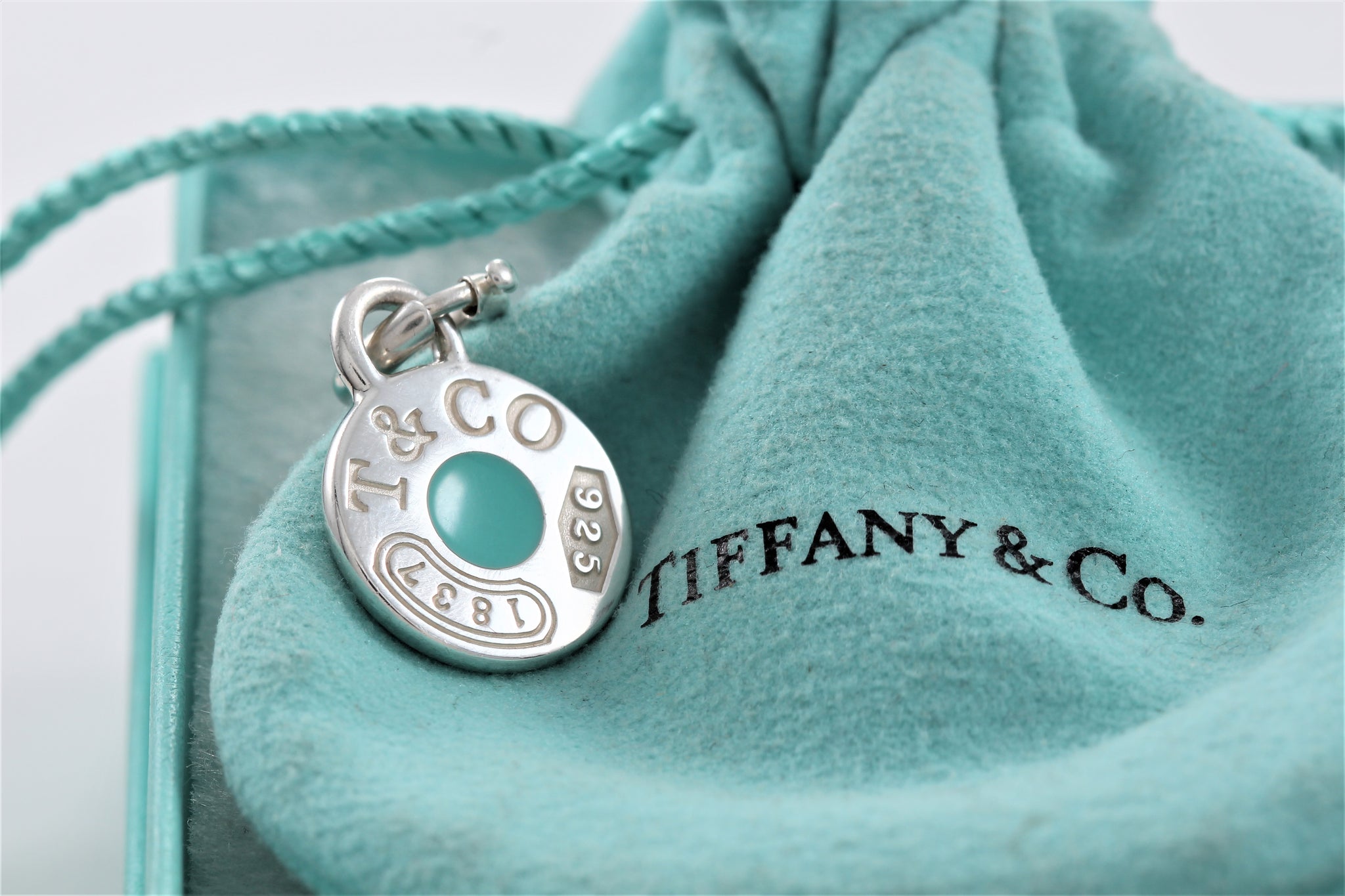 Tiffany & Co. 1837 Silver Blue Enamel Round Charm Pendant w/Clasp