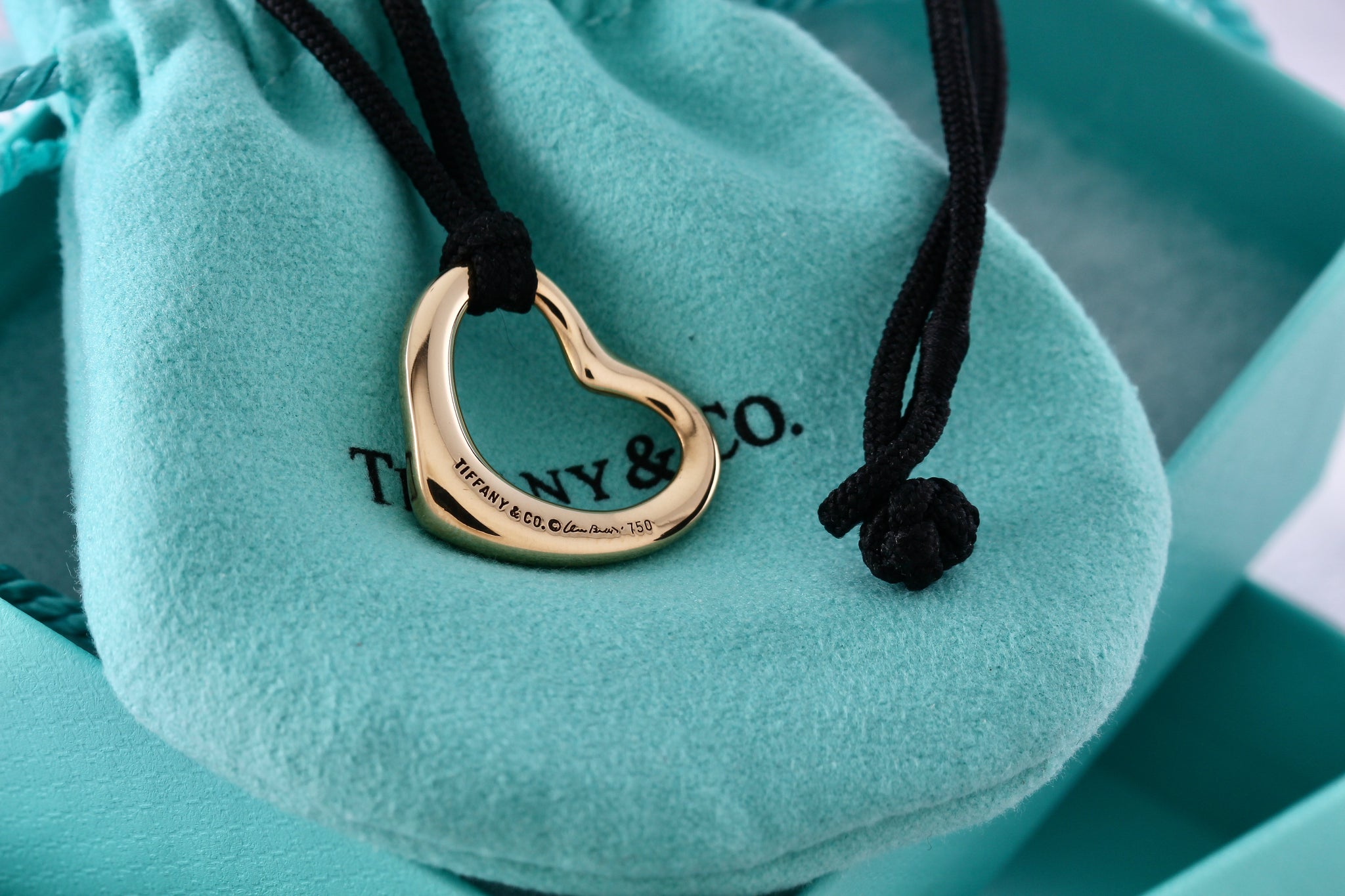 Tiffany & Co. Elsa Peretti 18K Gold Medium 22mm Open Heart Pendant Necklace on 16" Back Silk Cord