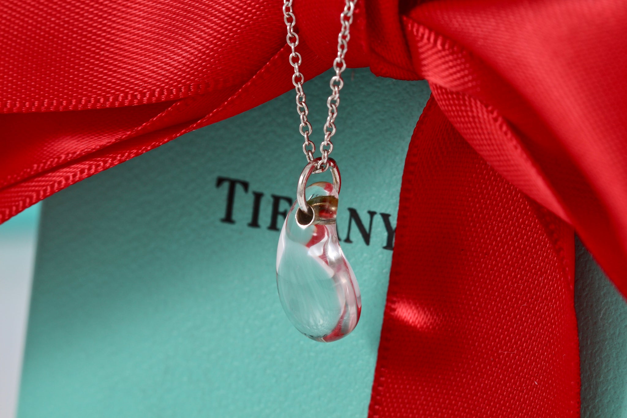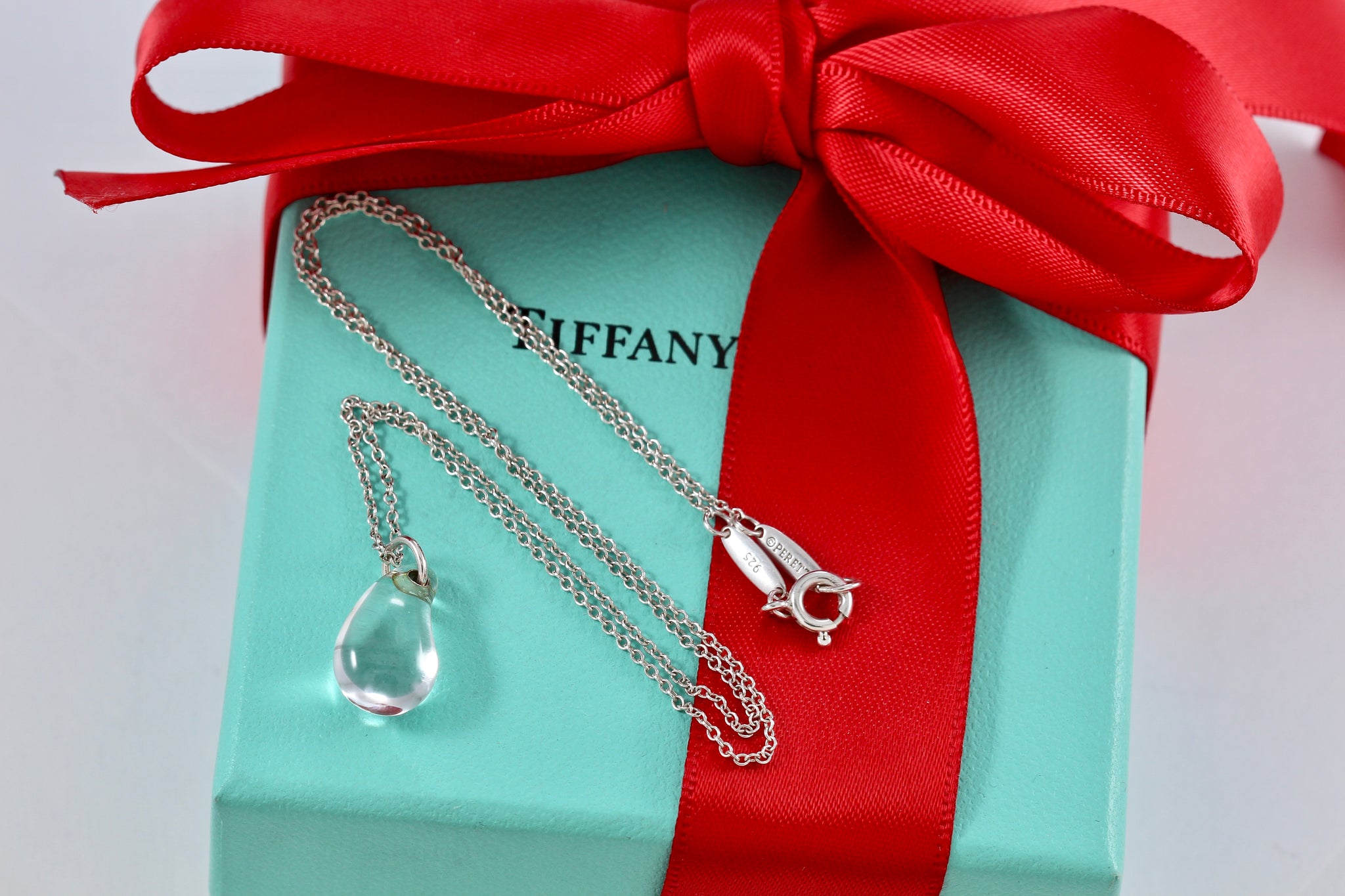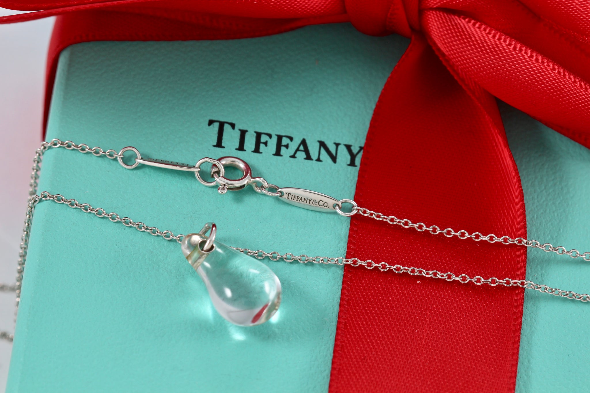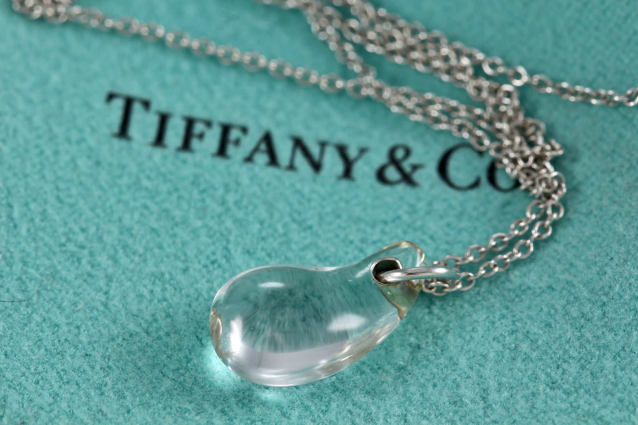 Tiffany & Co. Elsa Peretti Silver Crystal Teardrop Pendant Necklace