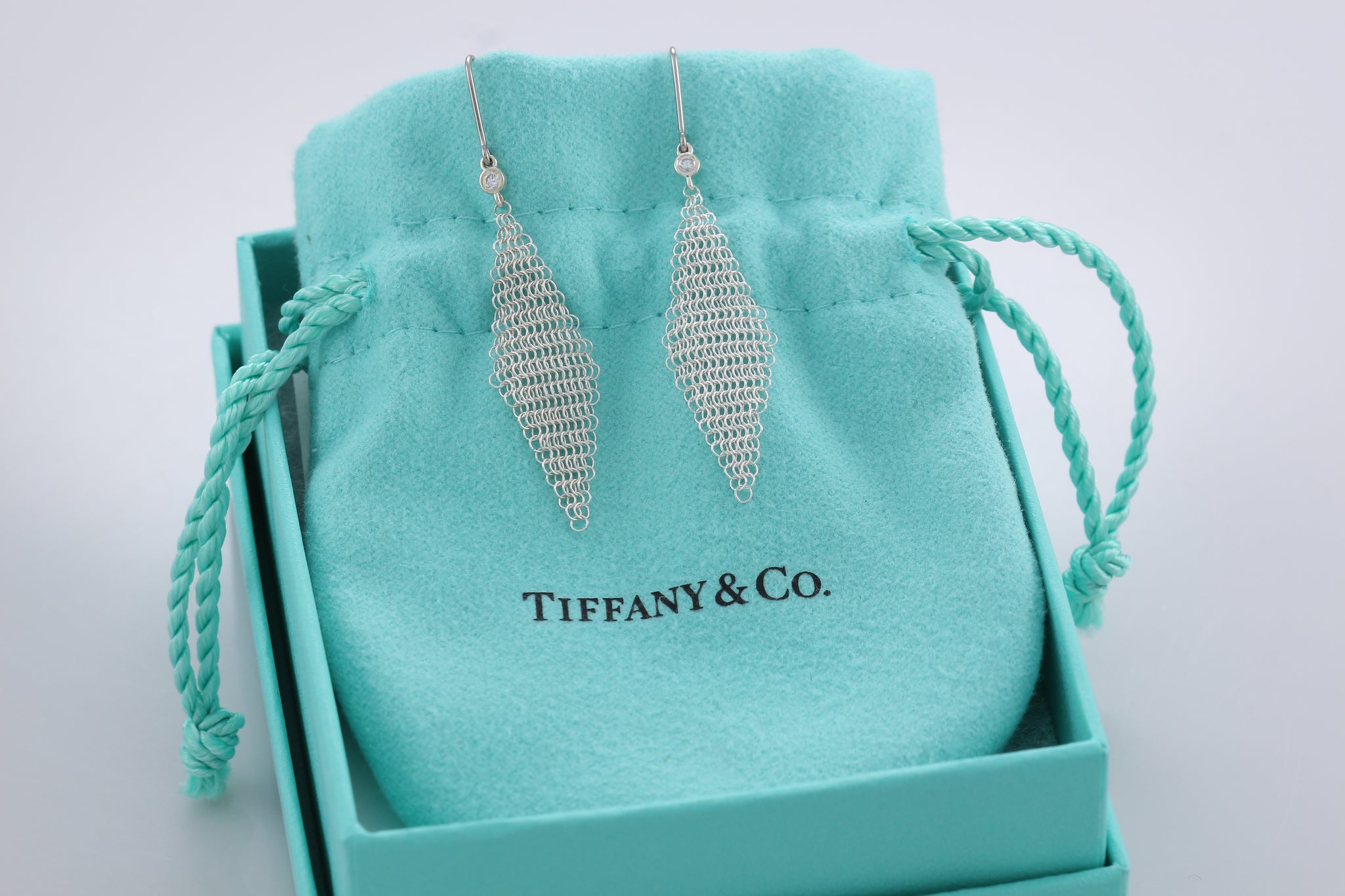Tiffany & Co. Elsa Peretti Silver Diamond Mesh Dangling Earrings
