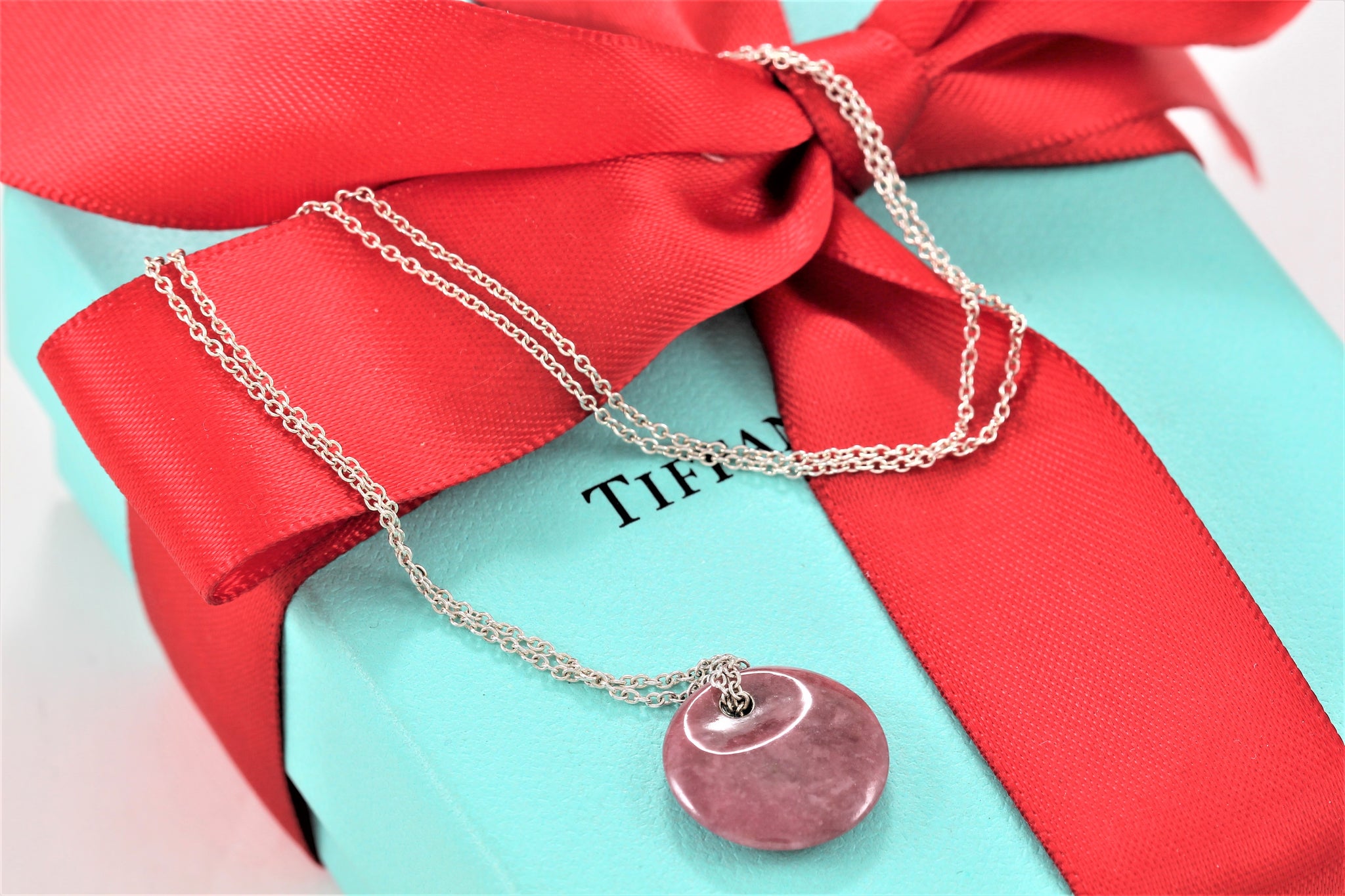 Tiffany & Co. Elsa Peretti Silver Pink Rhodonite Round Disc Pendant Necklace