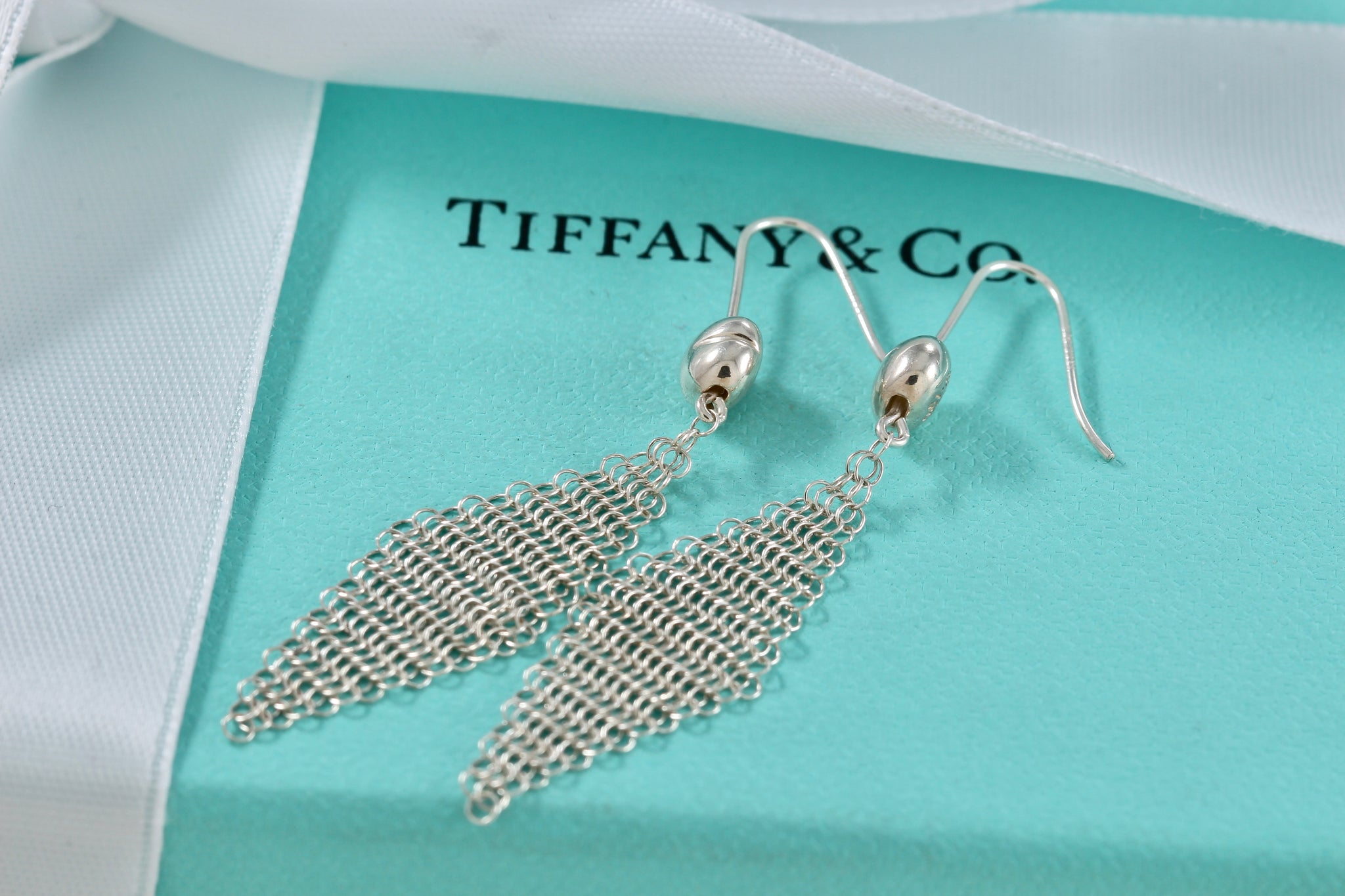 Tiffany & Co. Elsa Peretti Silver Small Mesh Dangle Hook Earrings