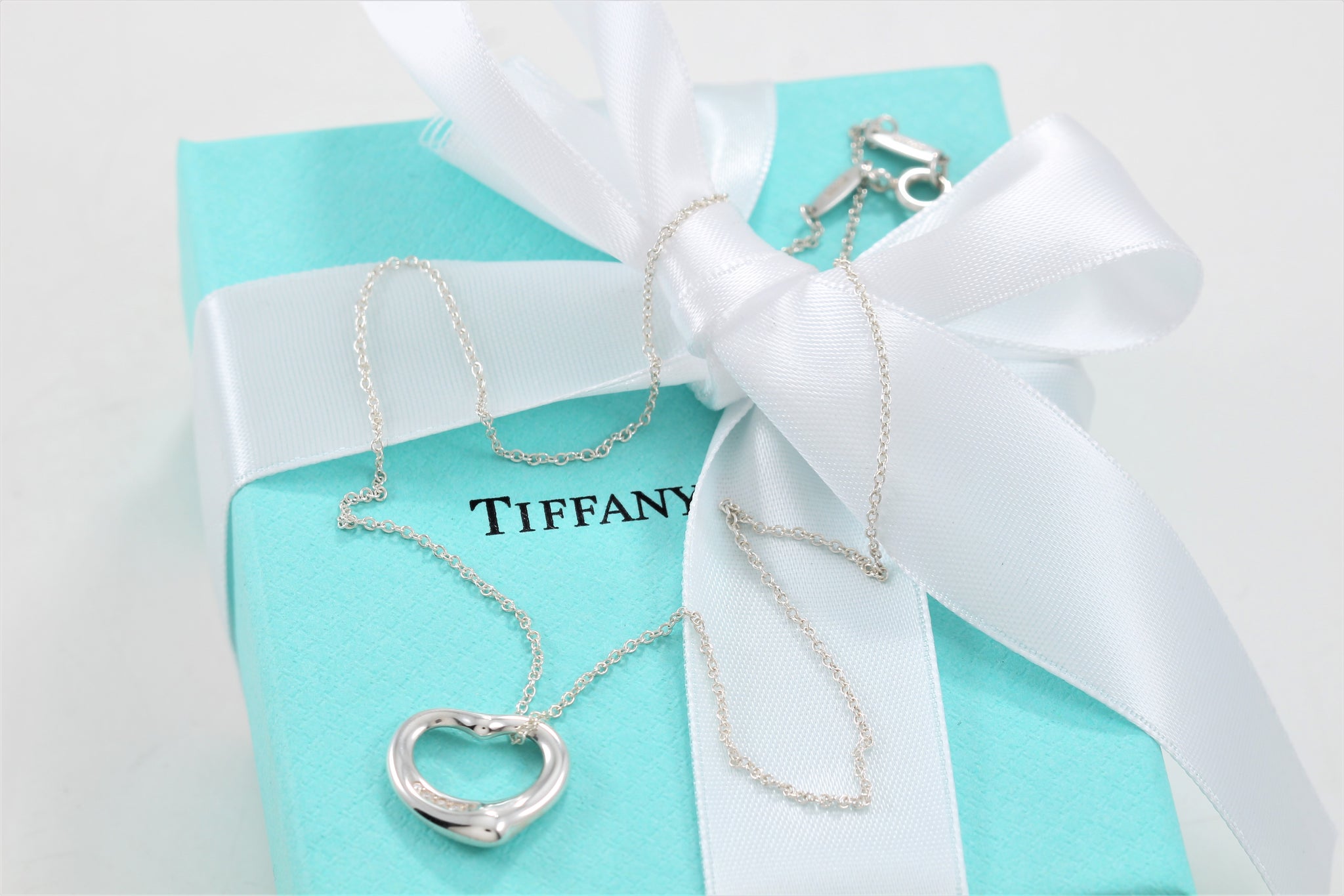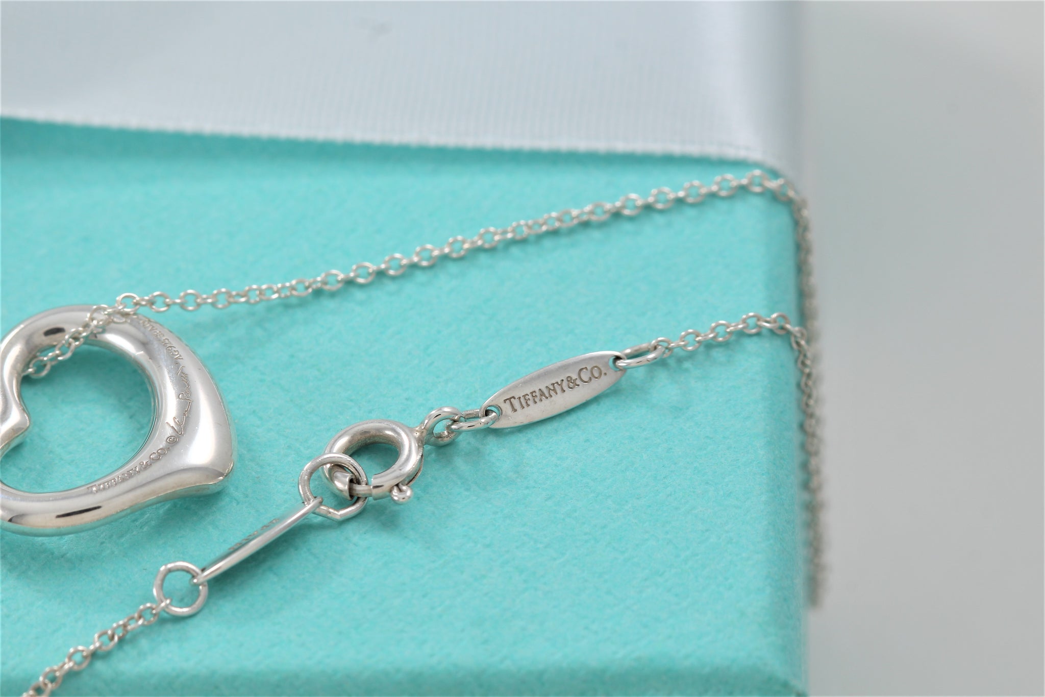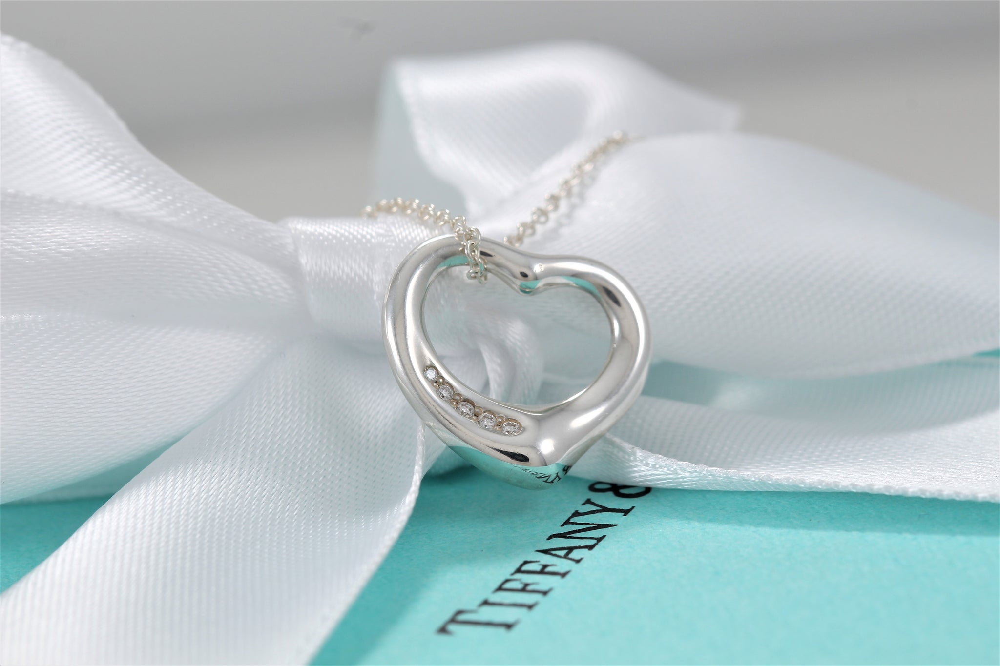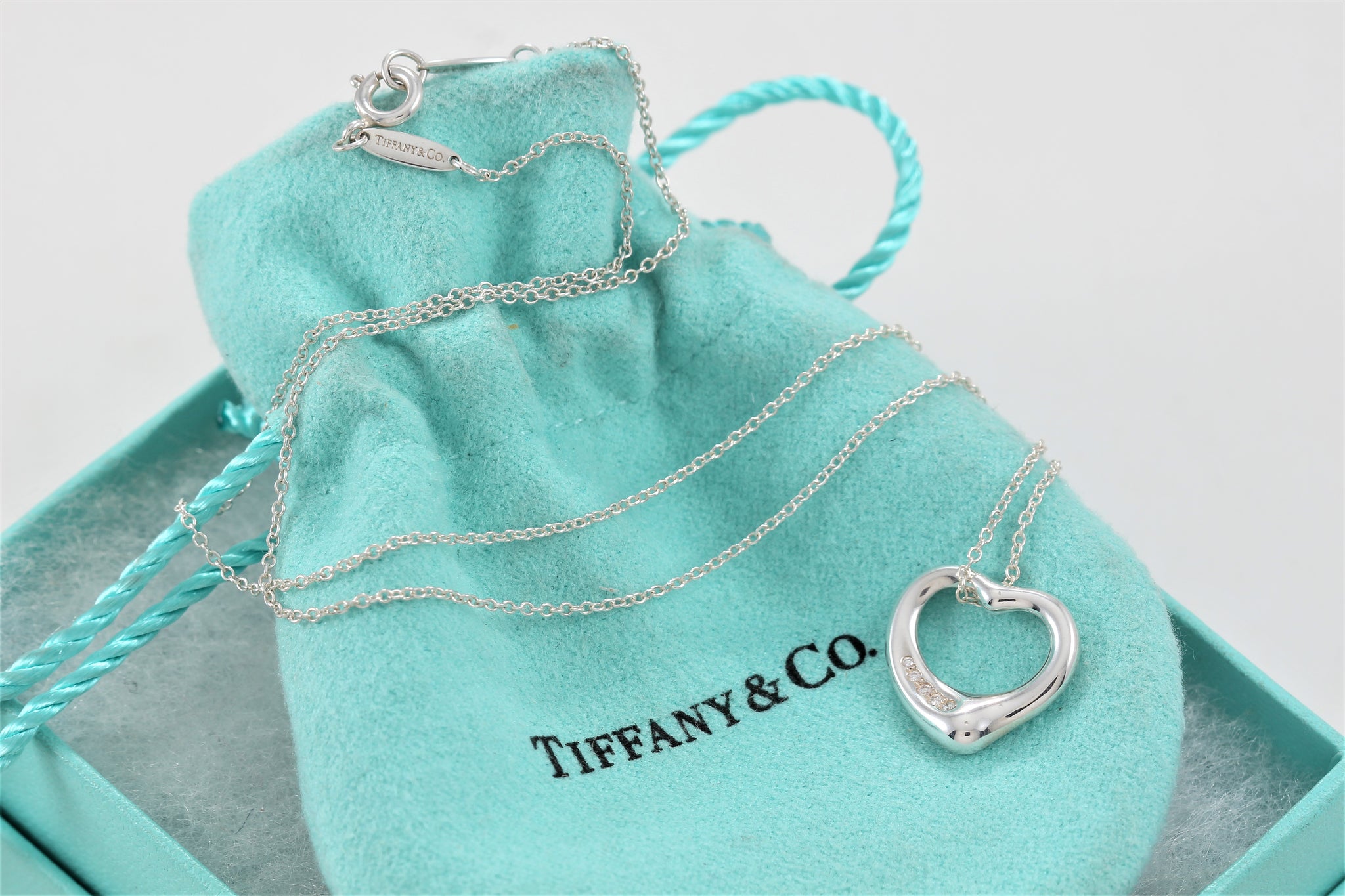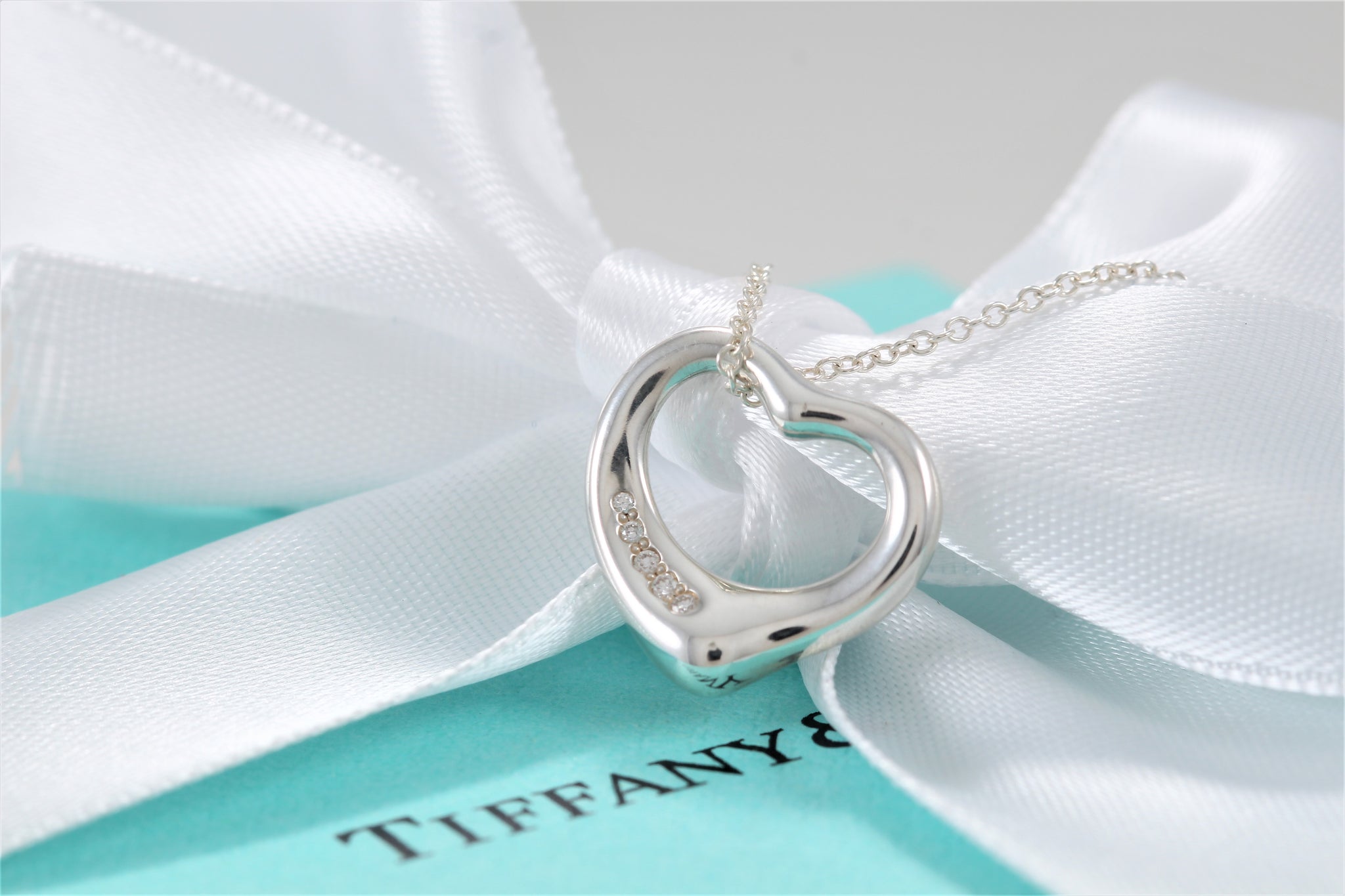 Tiffany & Co. Elsa Peretti Silver Small Open Heart 5 Diamond Necklace