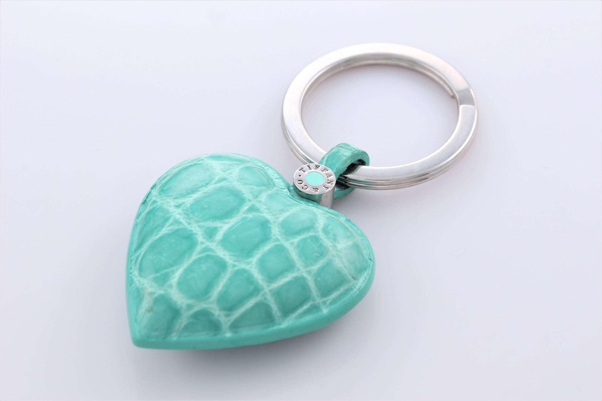 Tiffany & Co. Leather Crocodile Texture Puffy Heart Keychain