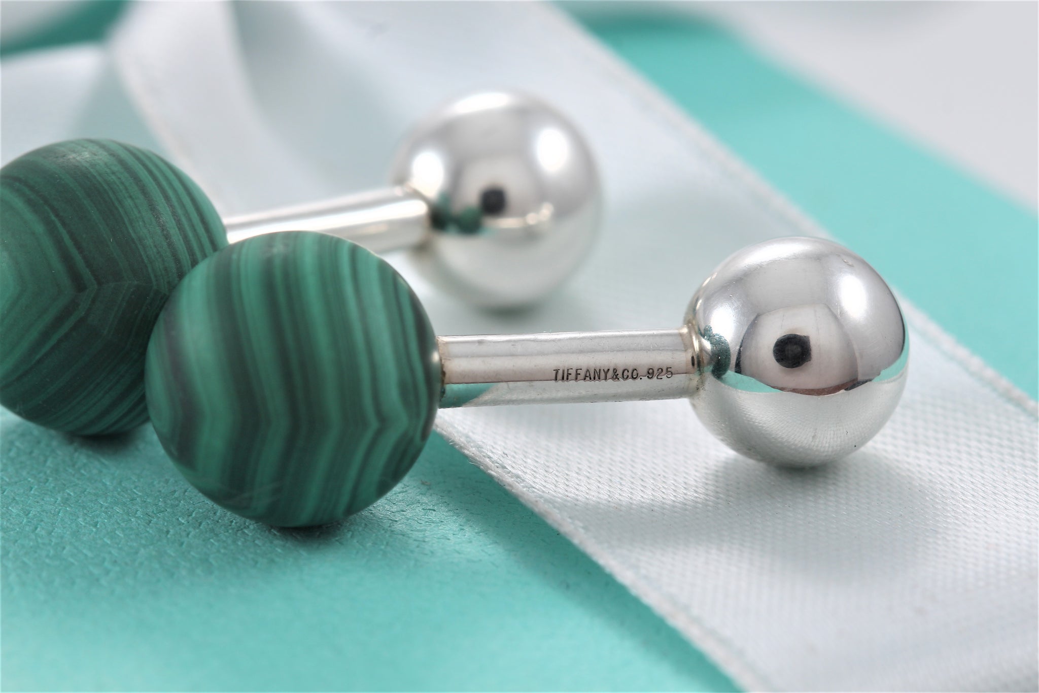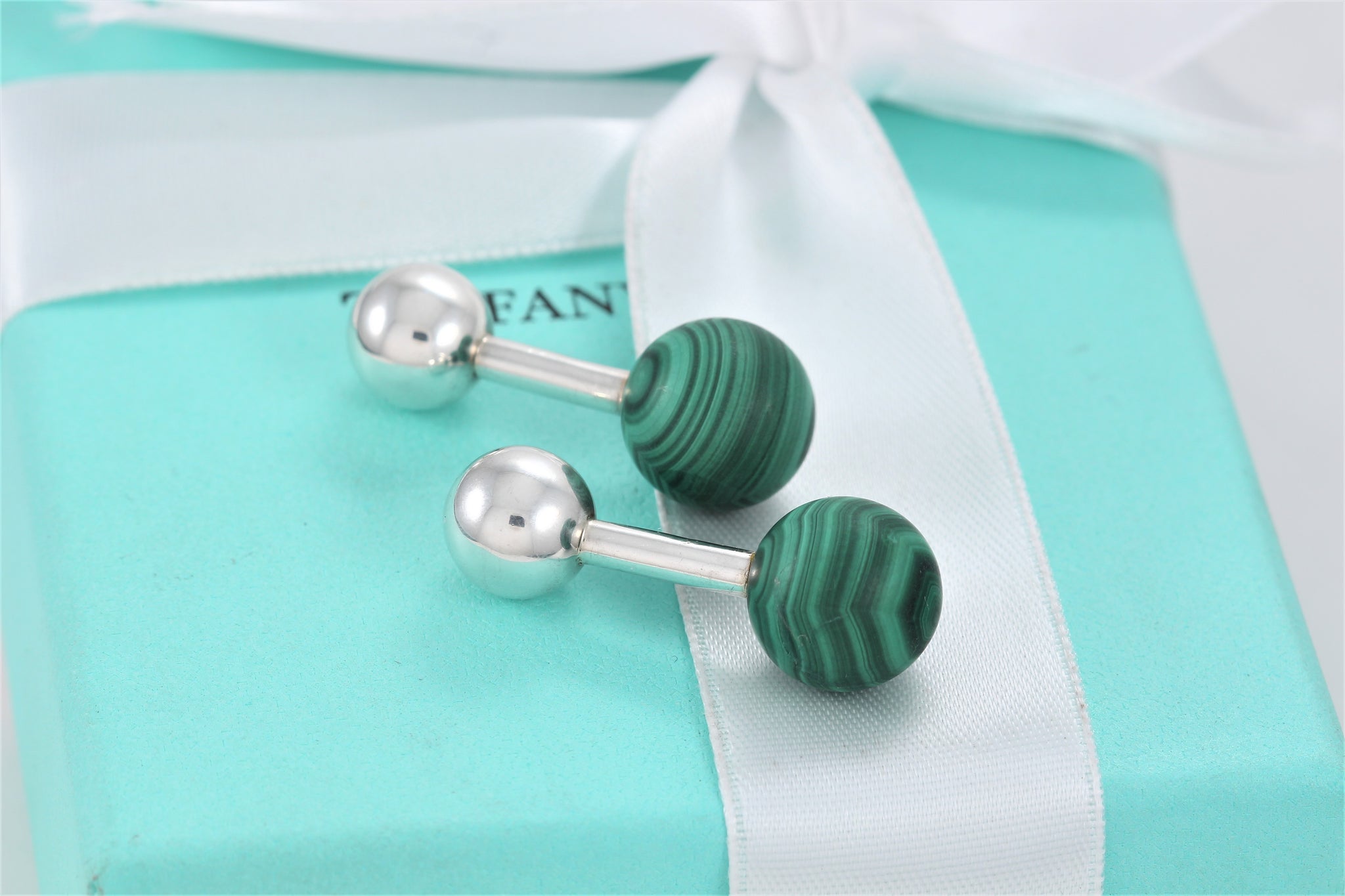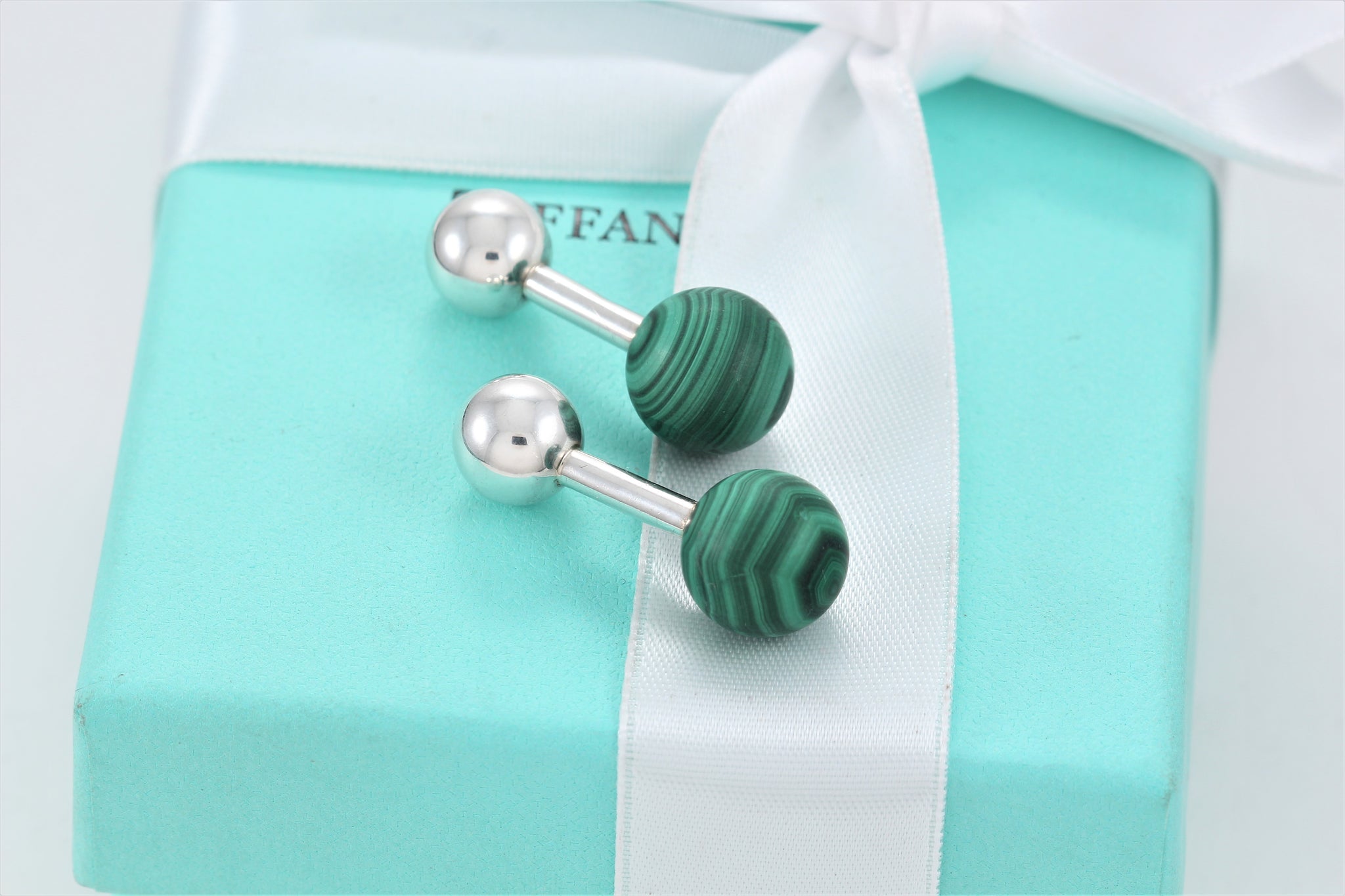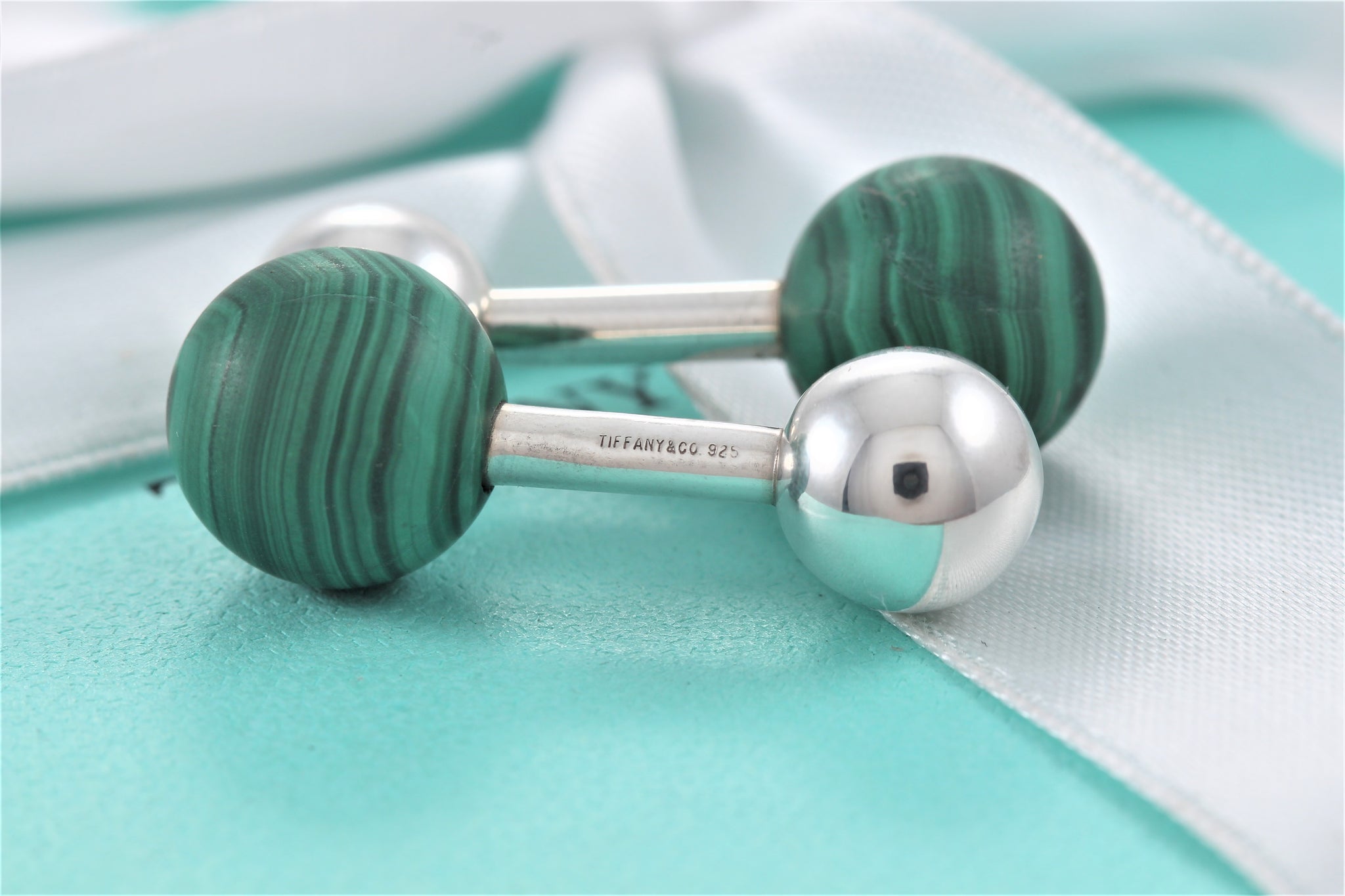 Tiffany & Co. Mens Silver Malachite Barbell Cufflinks