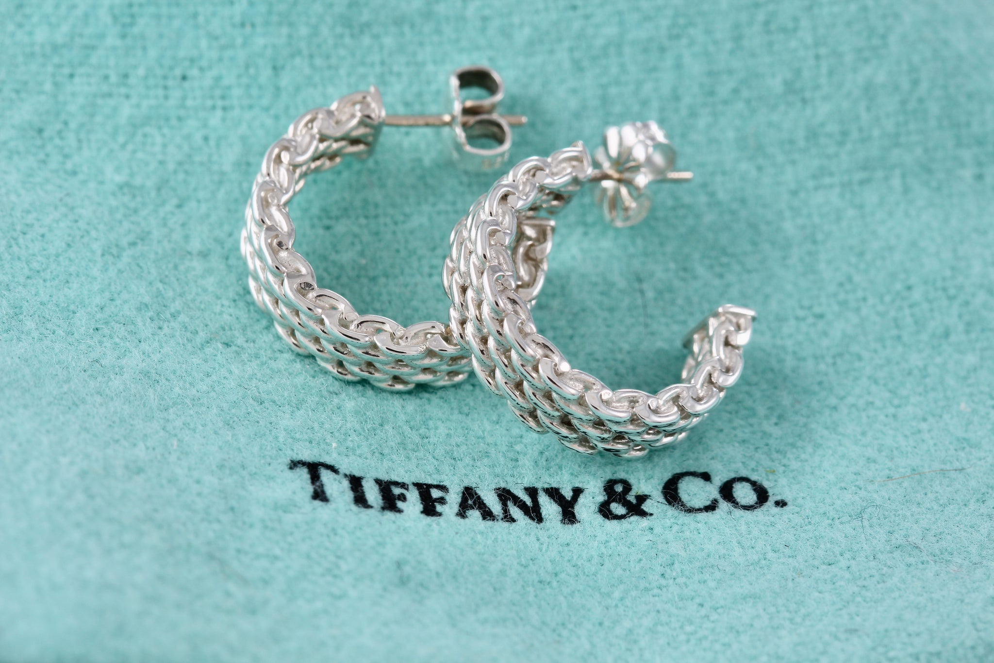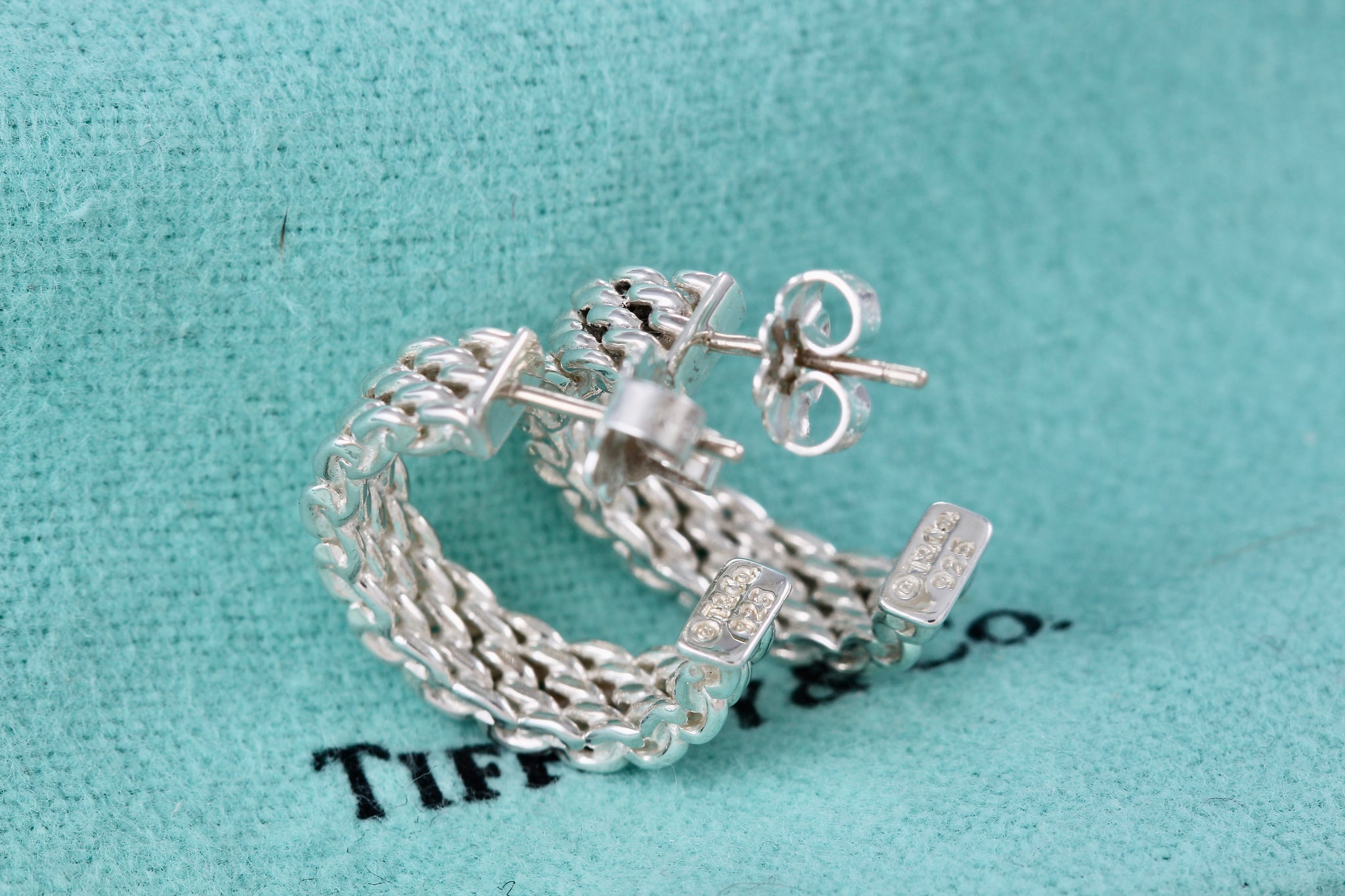 Tiffany & Co. Mesh Silver Mini Hoop Earrings 1/2"