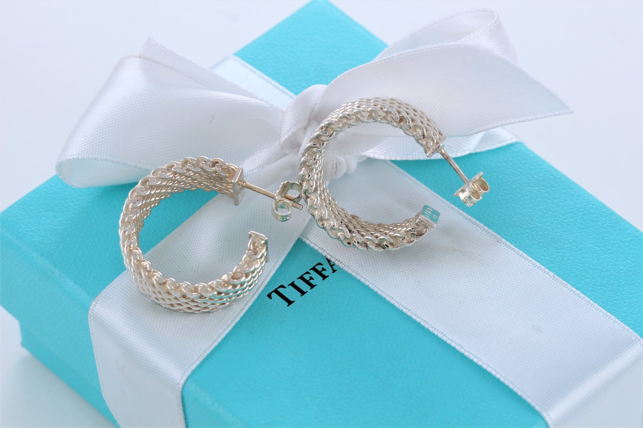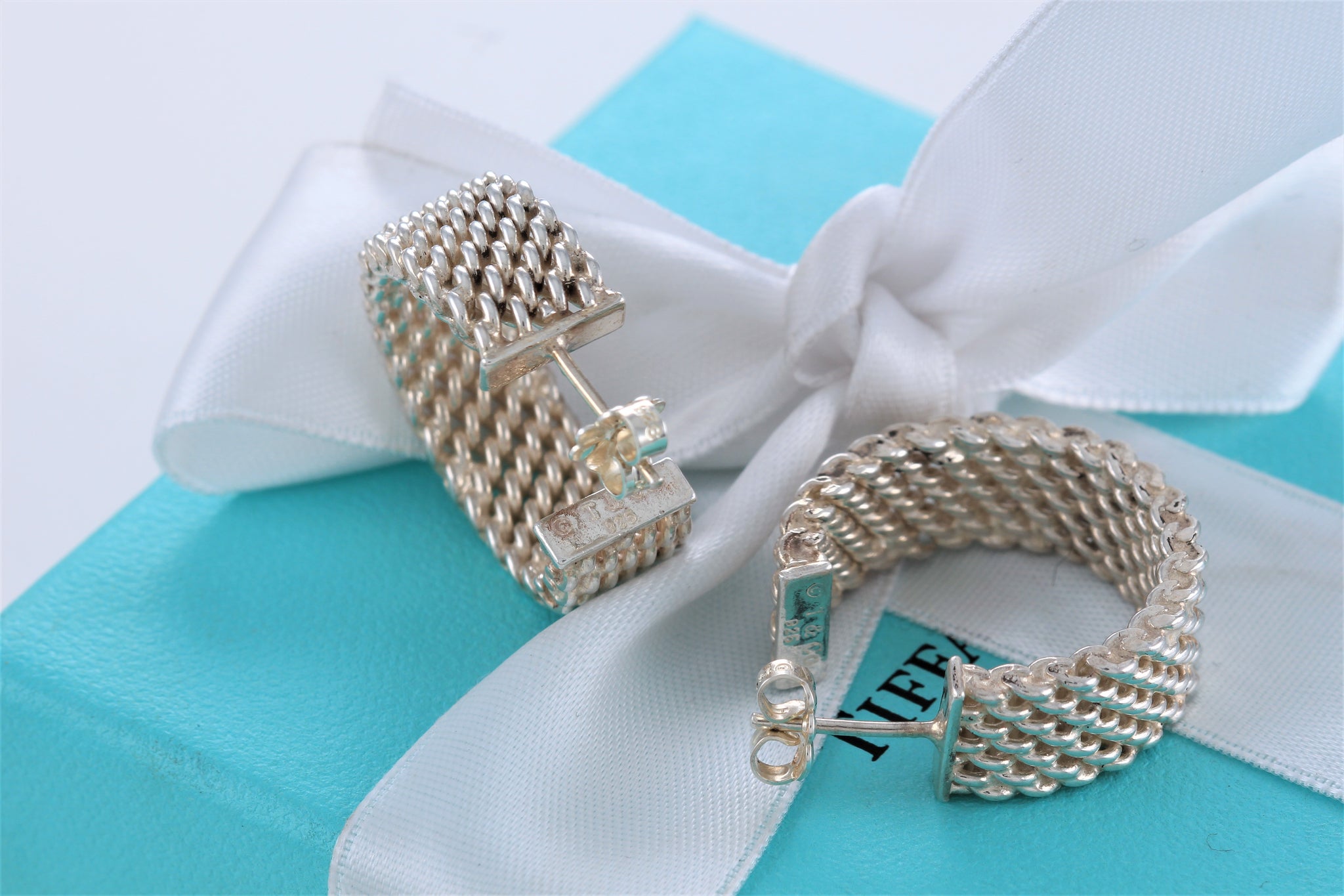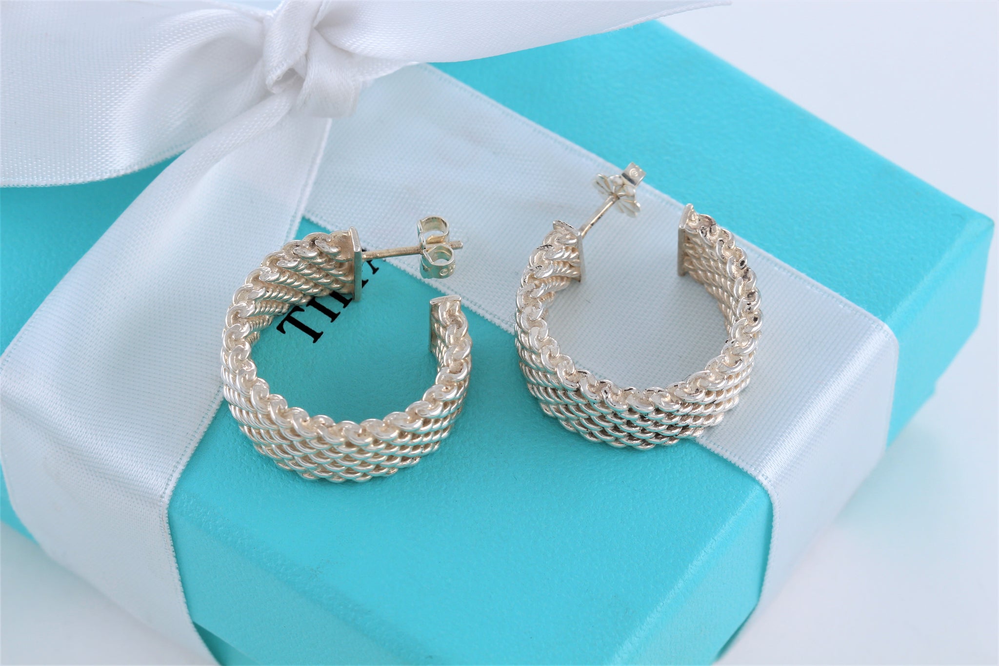 Tiffany & Co. Mesh Silver Wide Hoop Earrings