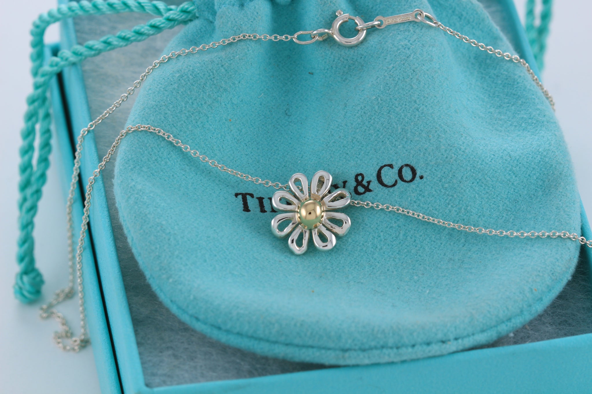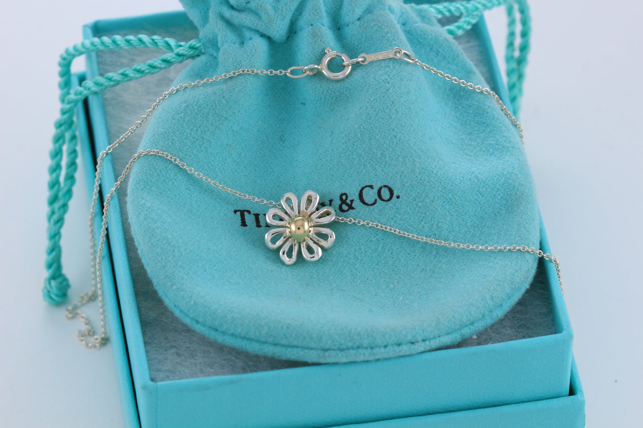 Tiffany & Co. Paloma Picasso 18K Gold & Silver Daisy Flower Pendant 16" Necklace
