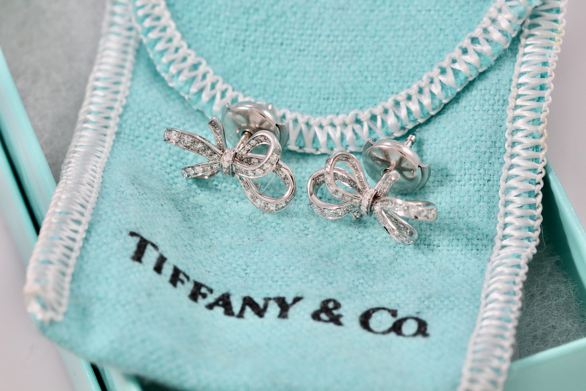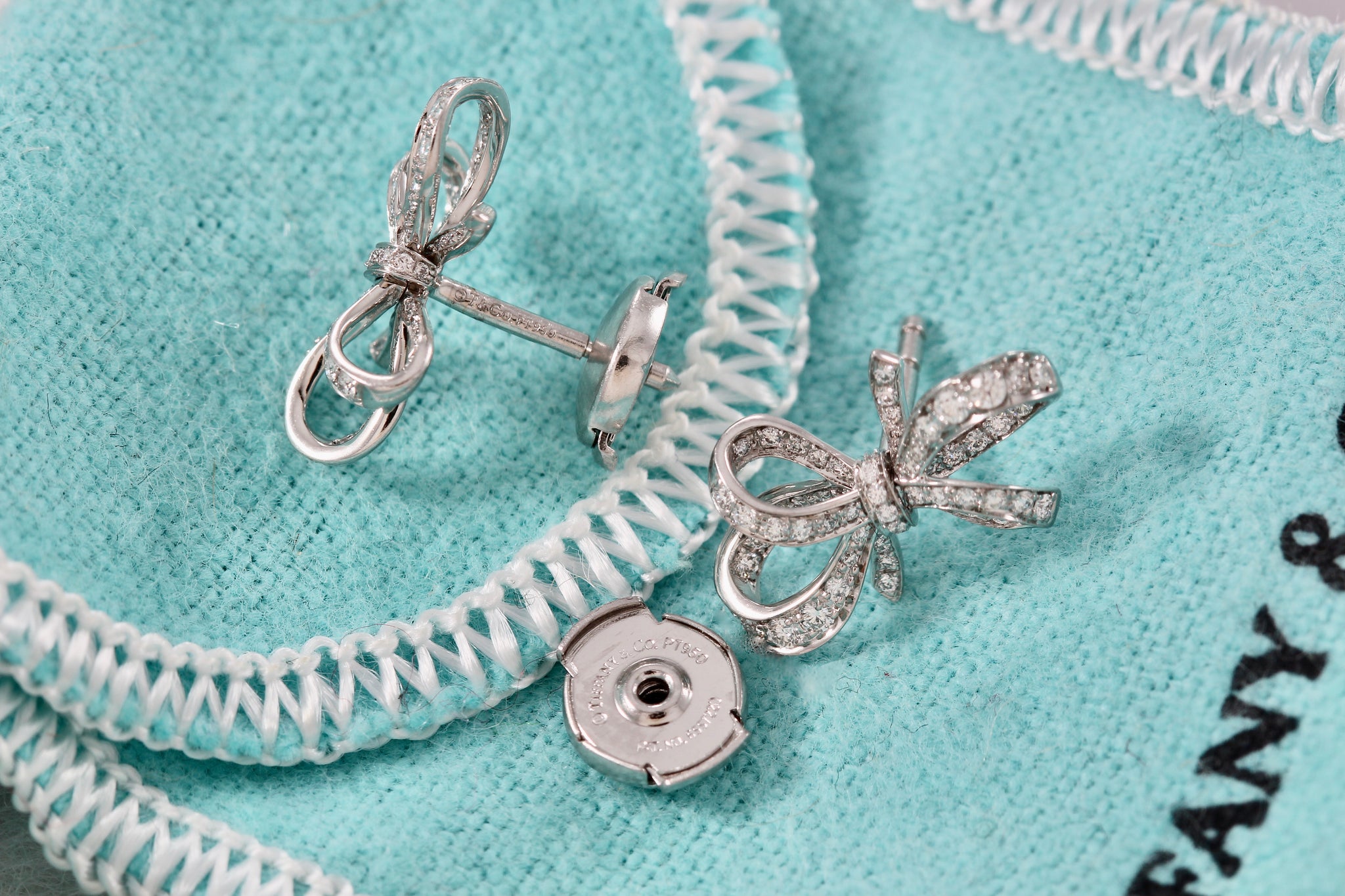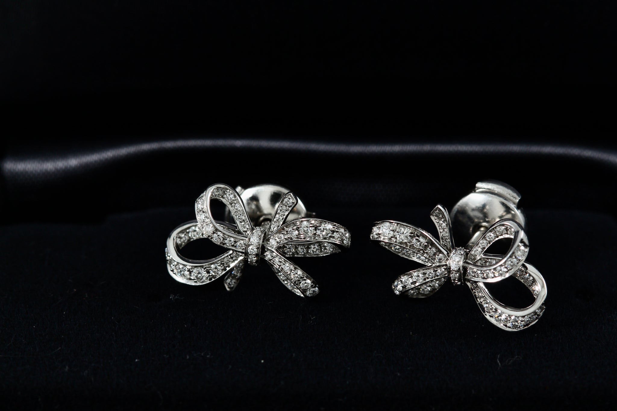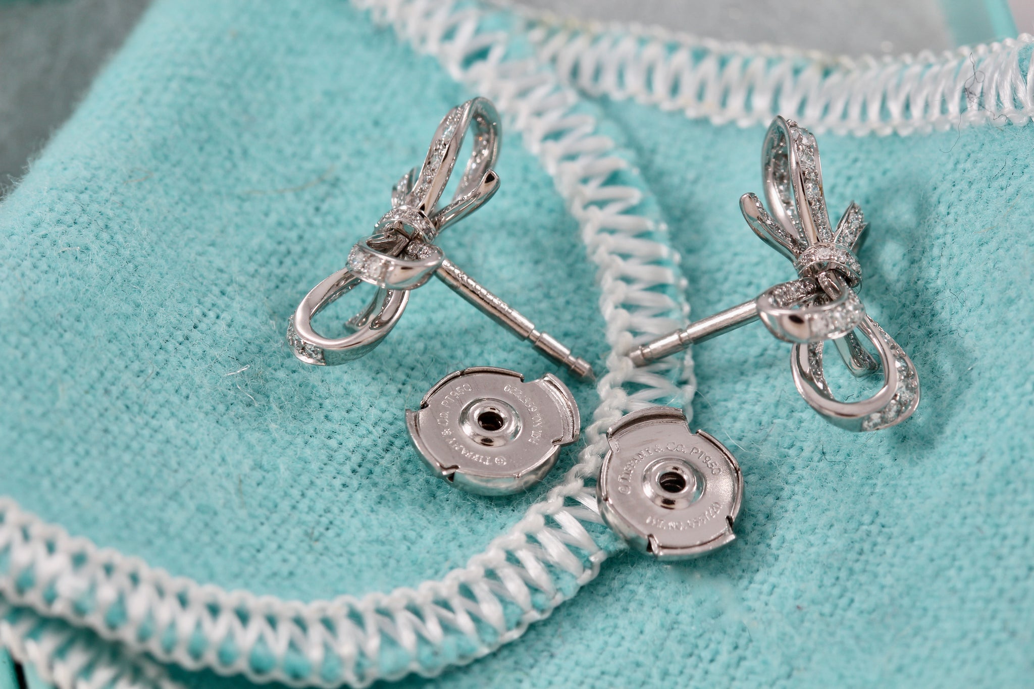 Tiffany & Co. Platinum Diamond Ribbon Stud Earrings