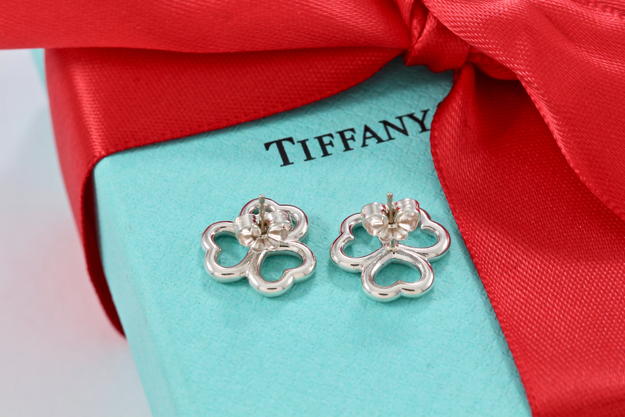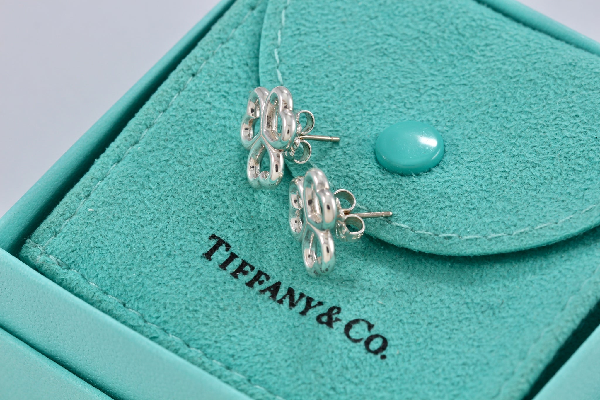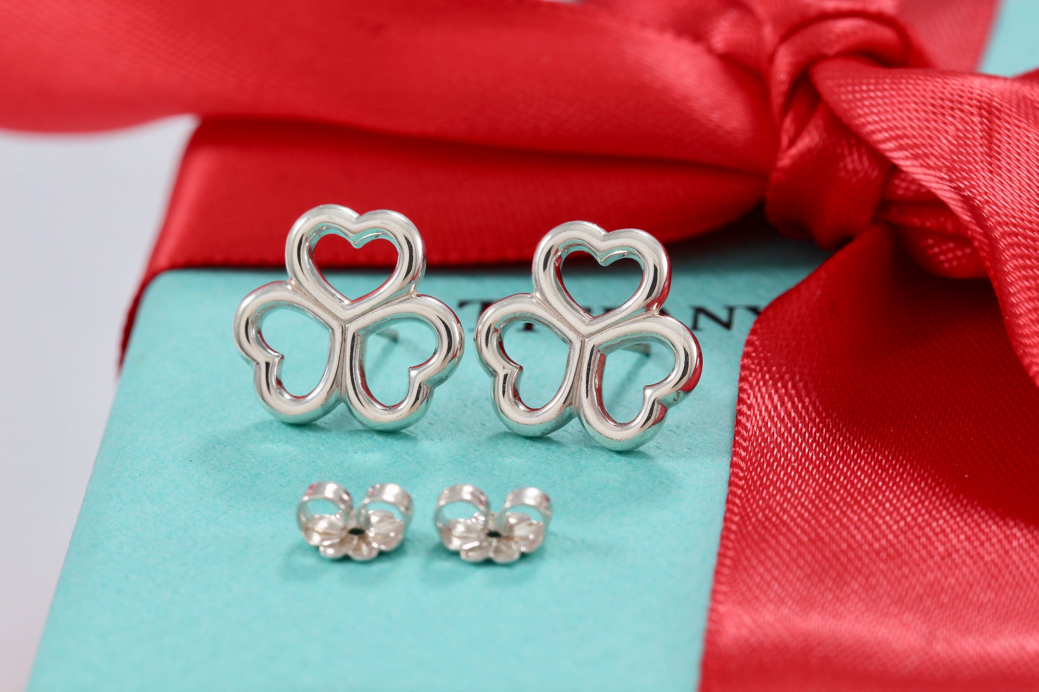 Tiffany & Co. Silver 3 Heart Clover Stud Earrings
