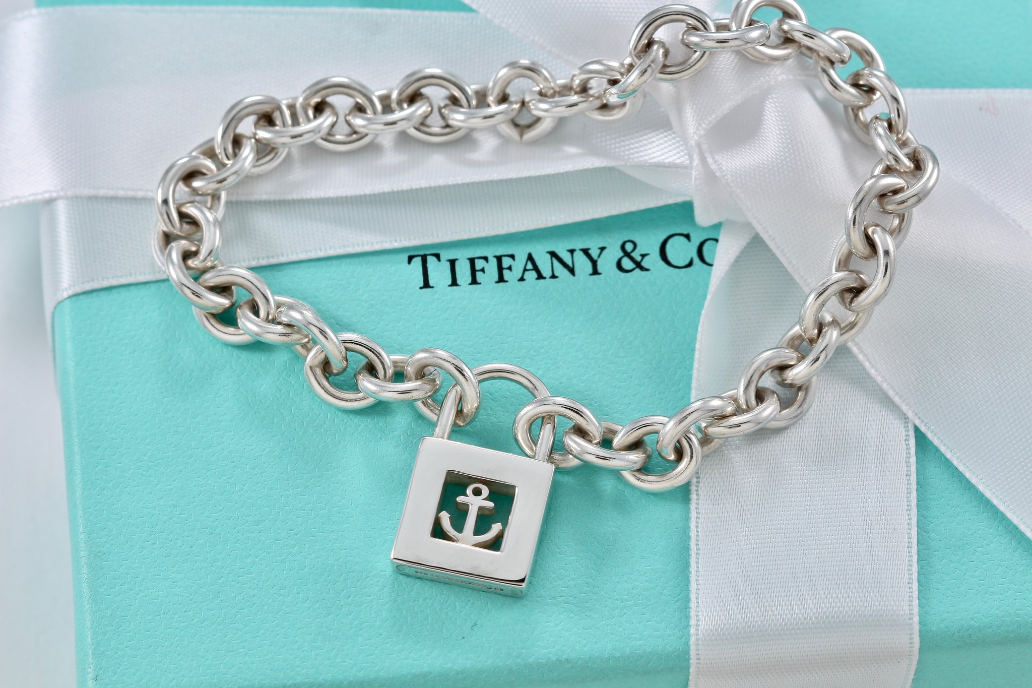 Tiffany & Co. Silver Anchor Pendant Padlock 7.5" Bracelet