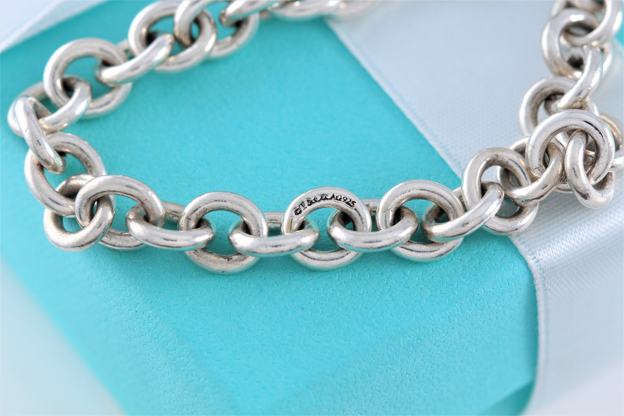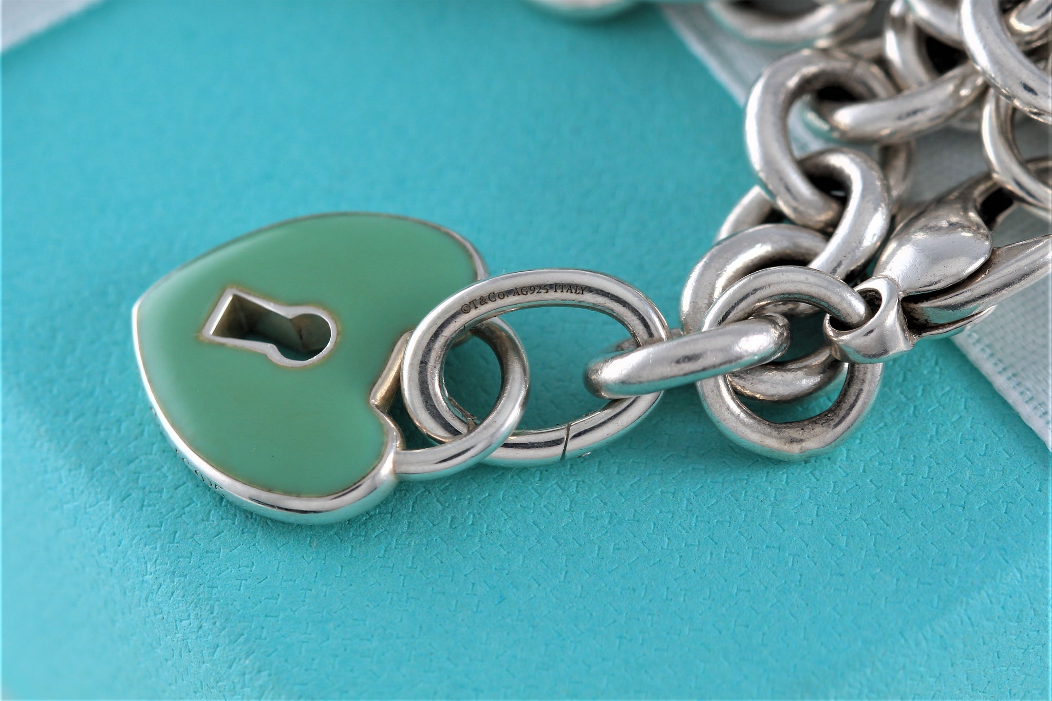 Tiffany & Co. Silver Blue Enamel Large Keyhole Heart Charm 7.5" Bracelet