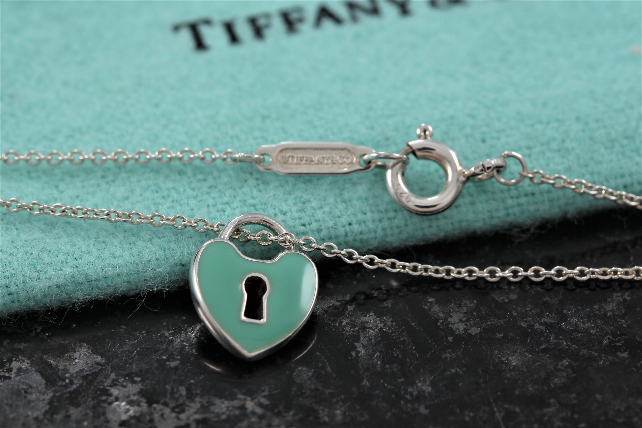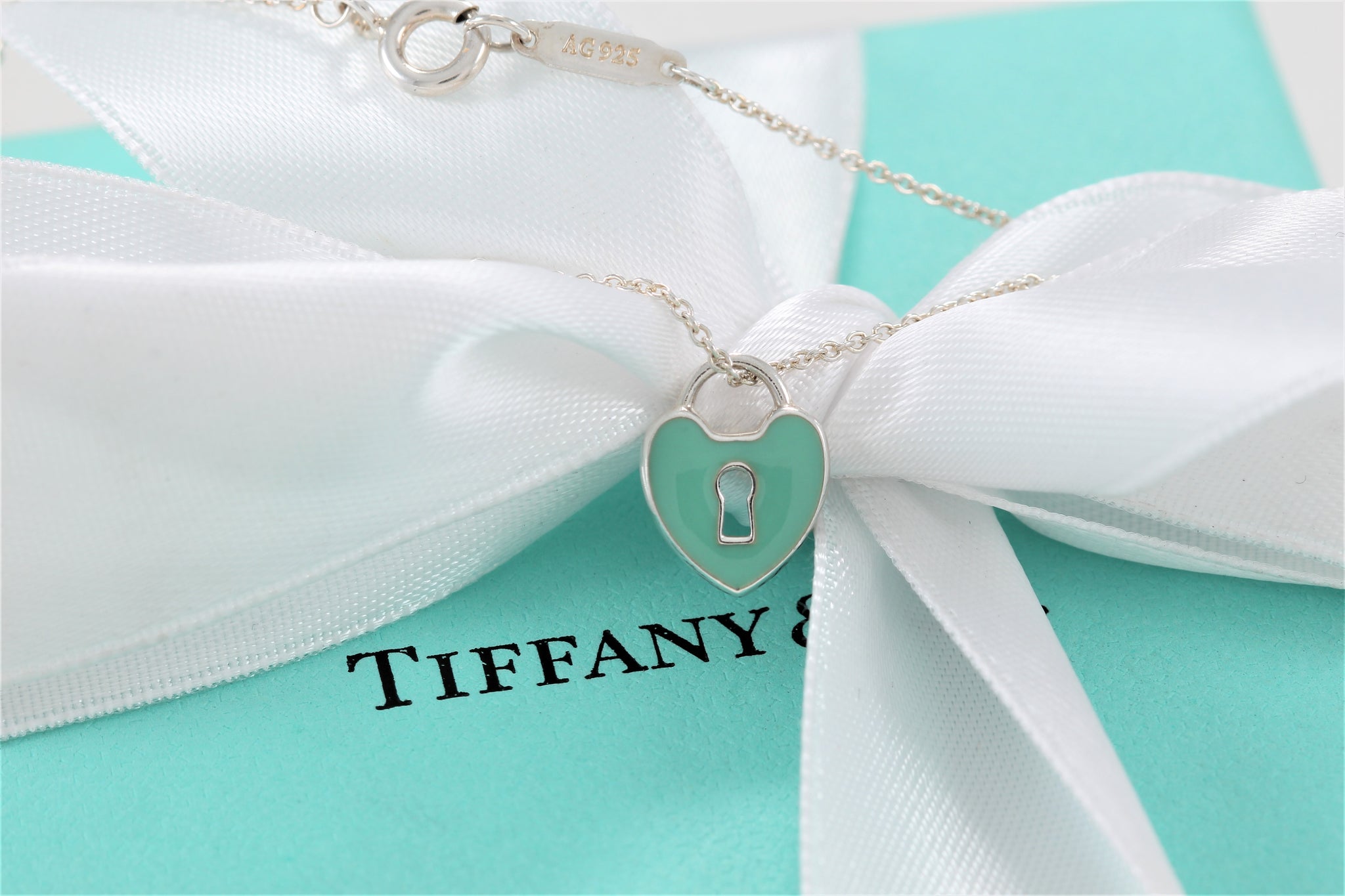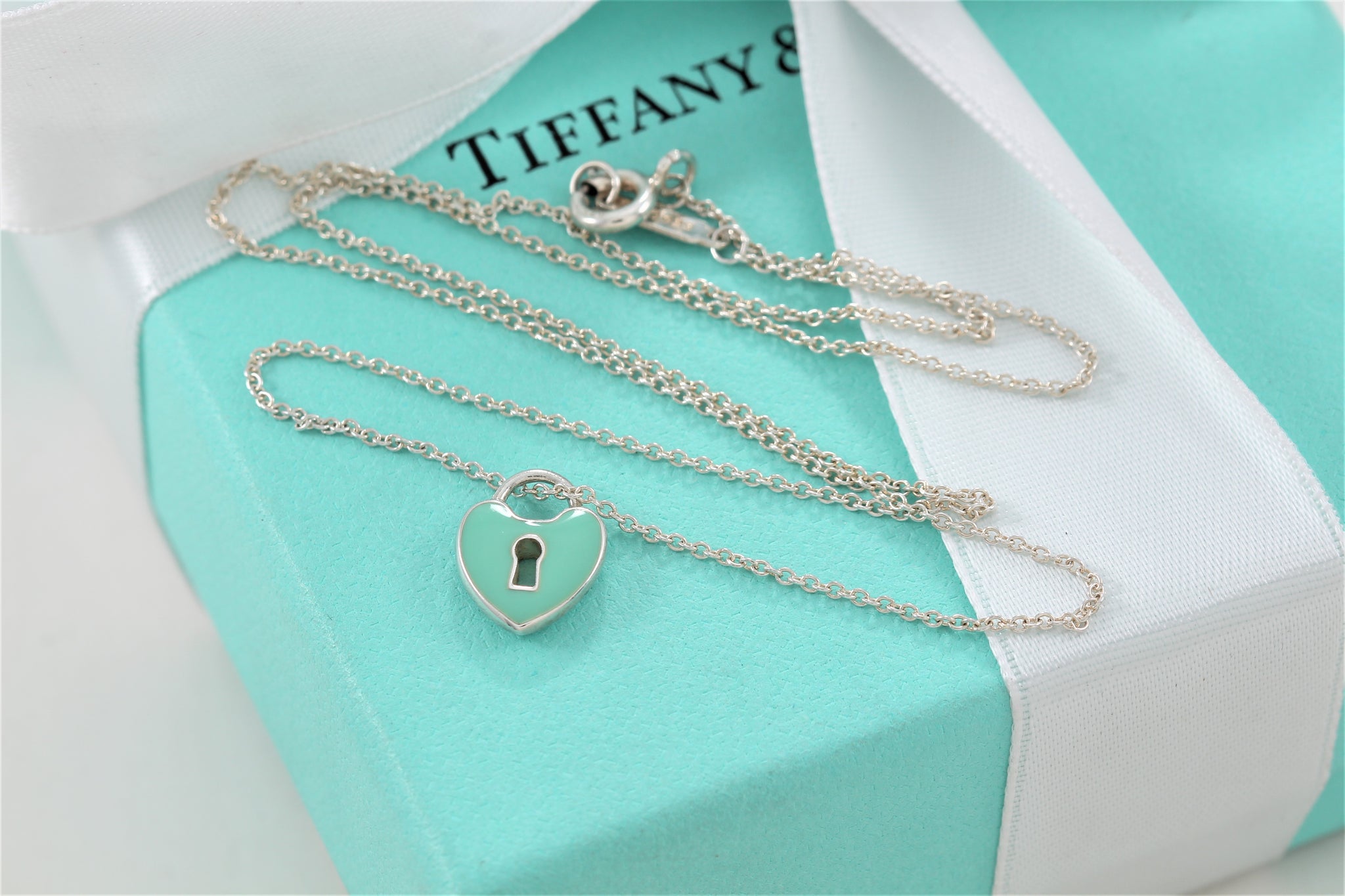Tiffany & Co. Silver Blue Enamel Mini Keyhole Heart Pendant Necklace