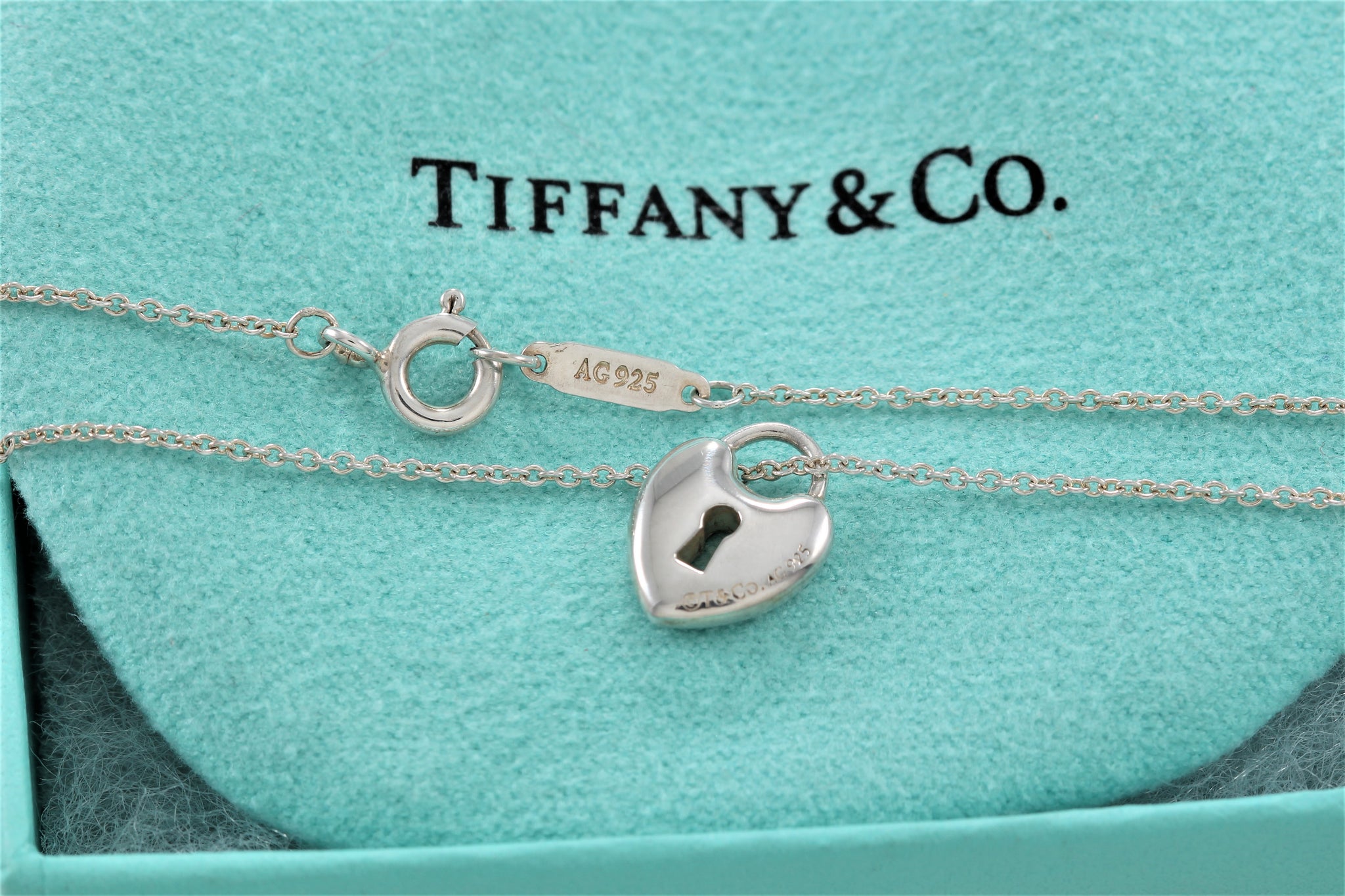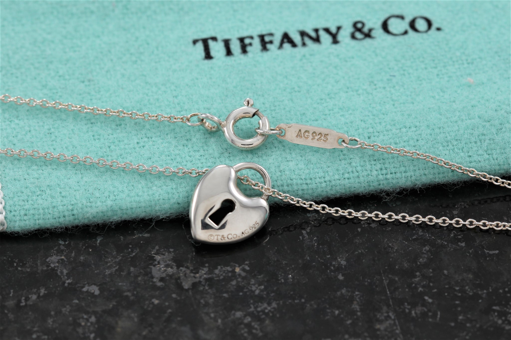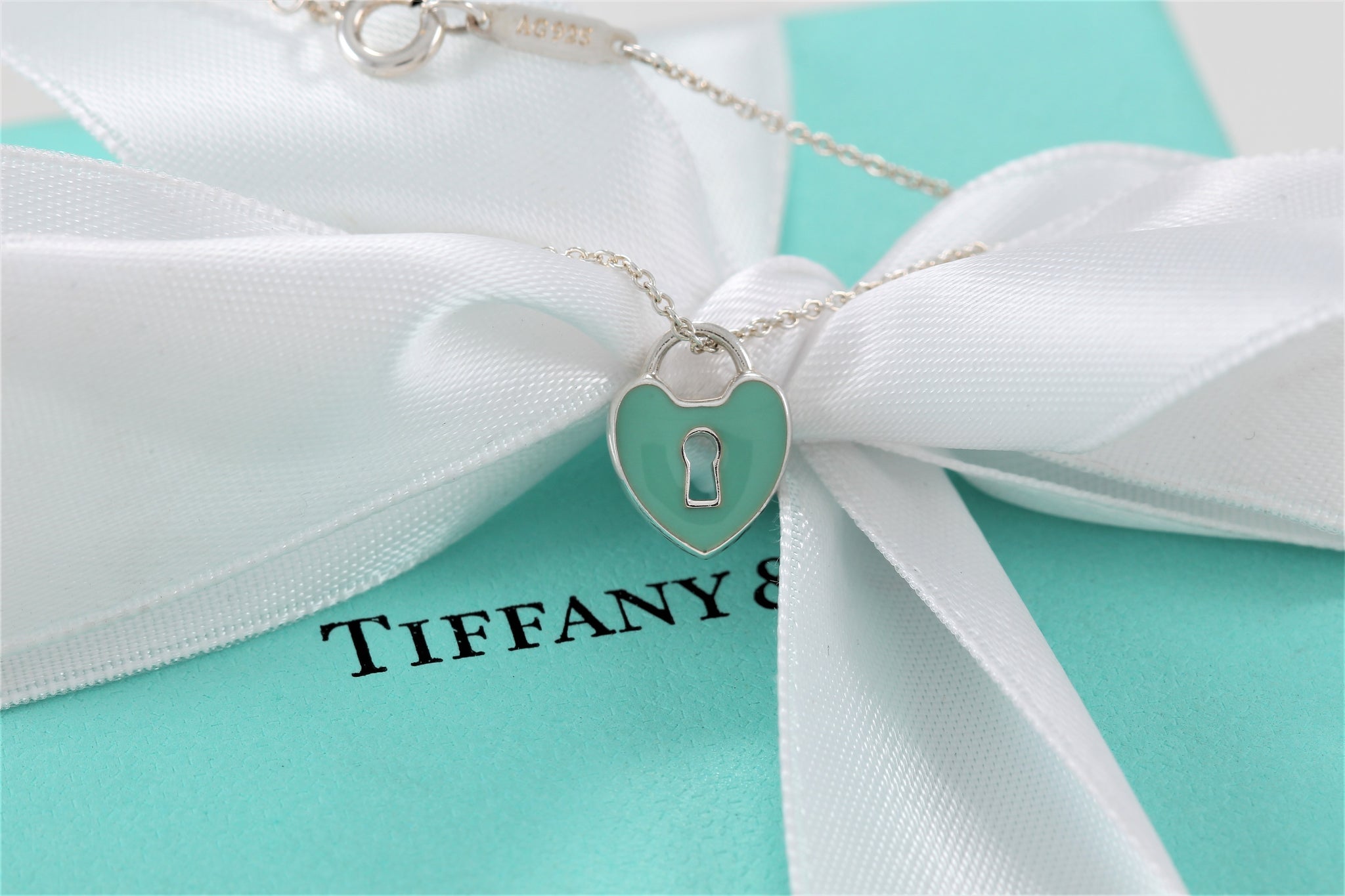 Tiffany & Co. Silver Blue Enamel Mini Keyhole Heart Pendant Necklace