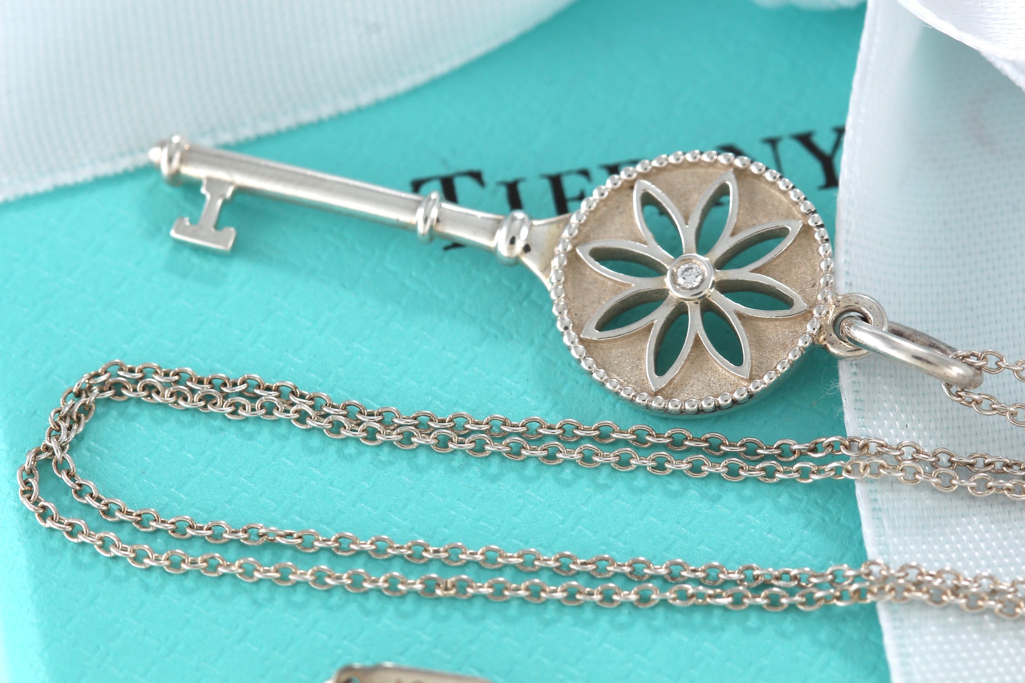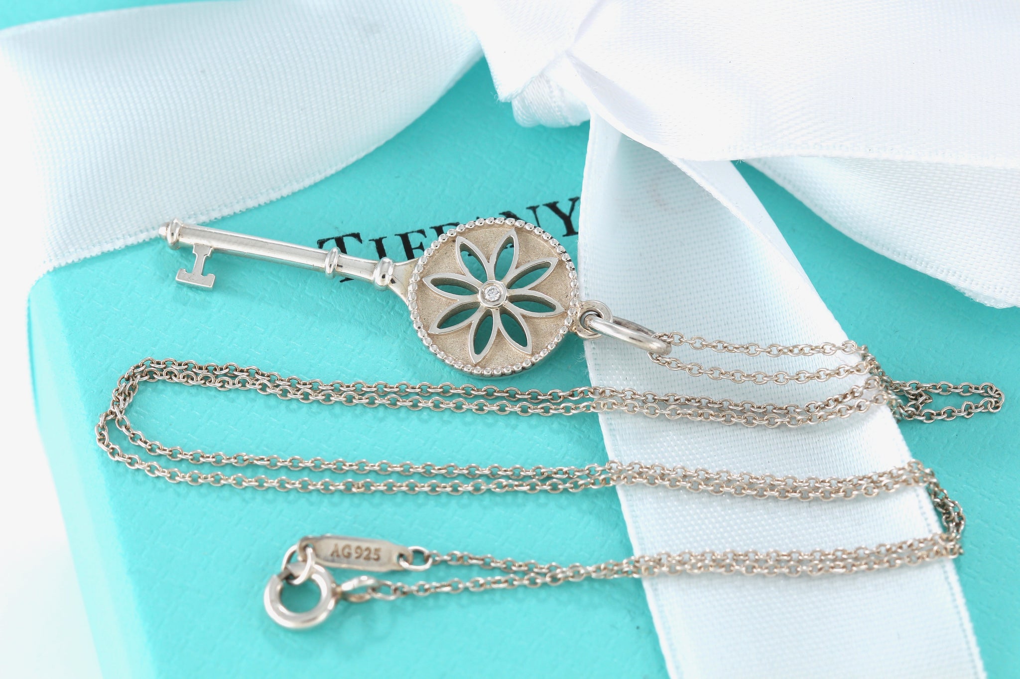 Tiffany & Co. Silver Daisy Flower Diamond Key 16" Necklace