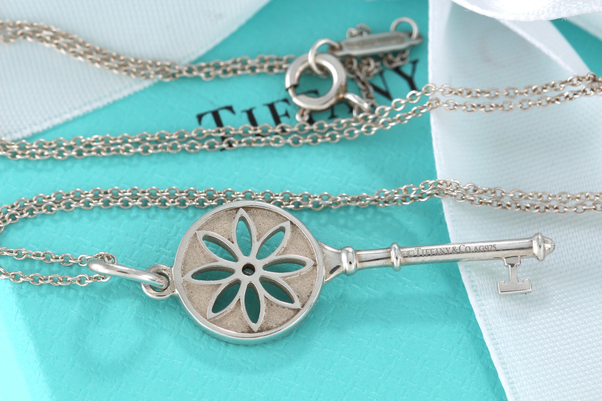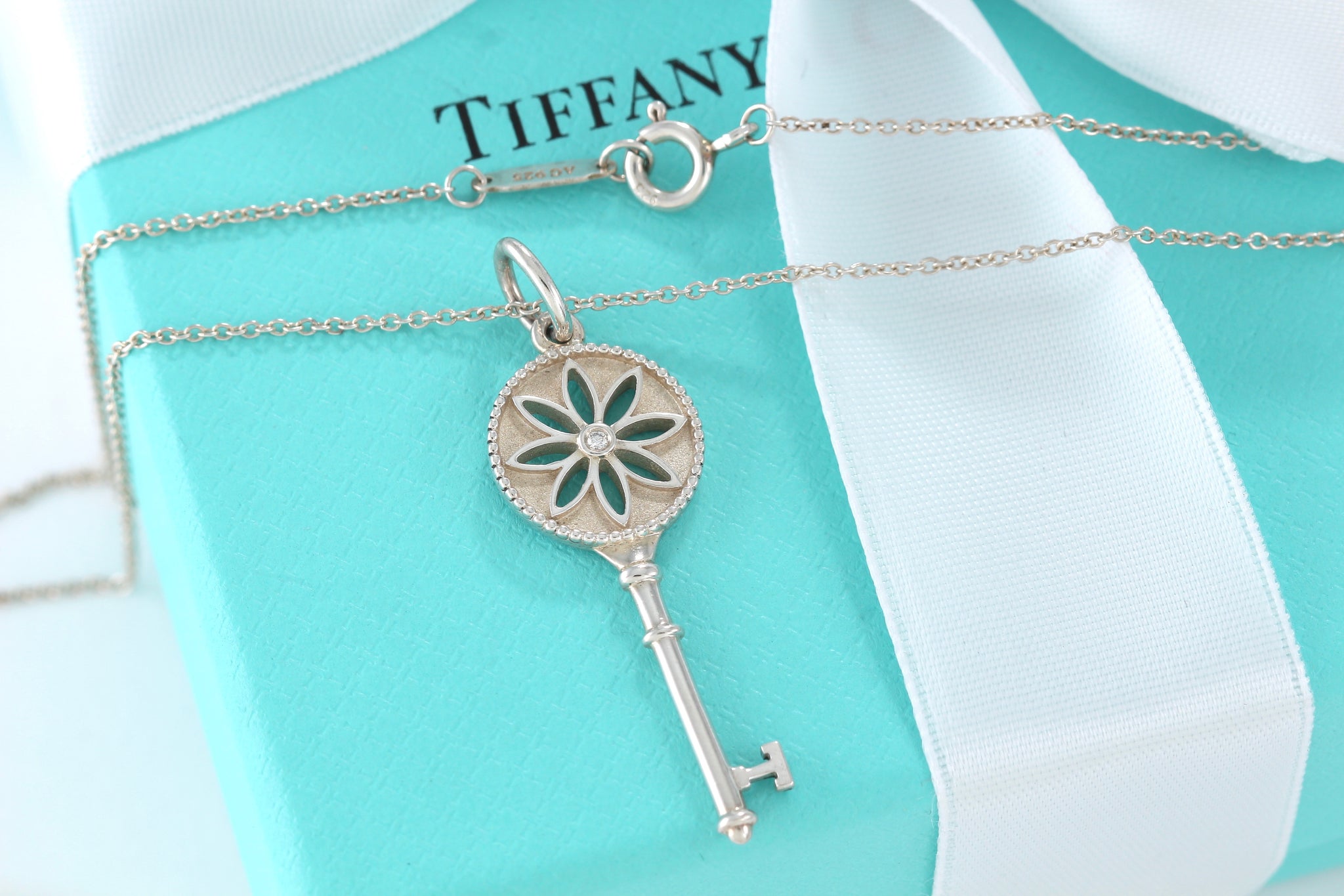 Tiffany & Co. Silver Daisy Flower Diamond Key Necklace