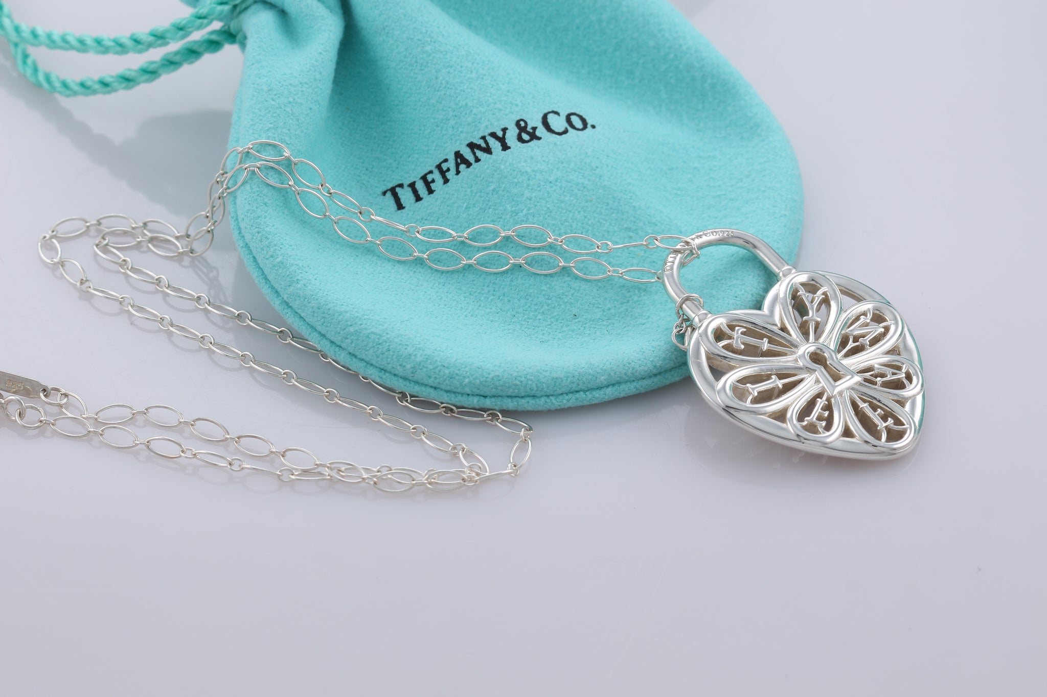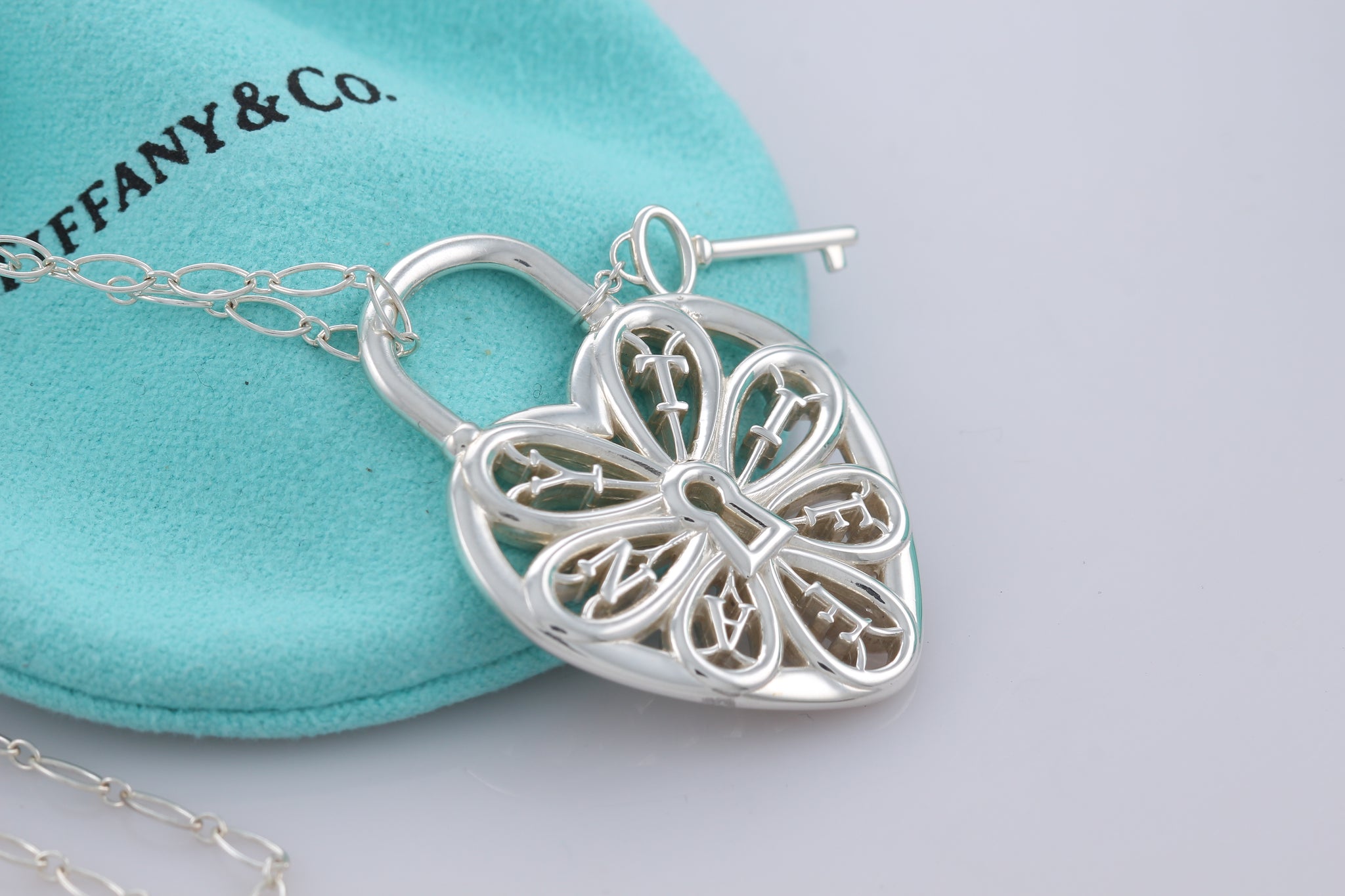 Tiffany & Co. Silver Extra Large Filigree Heart & Mini Key Pendant Necklace