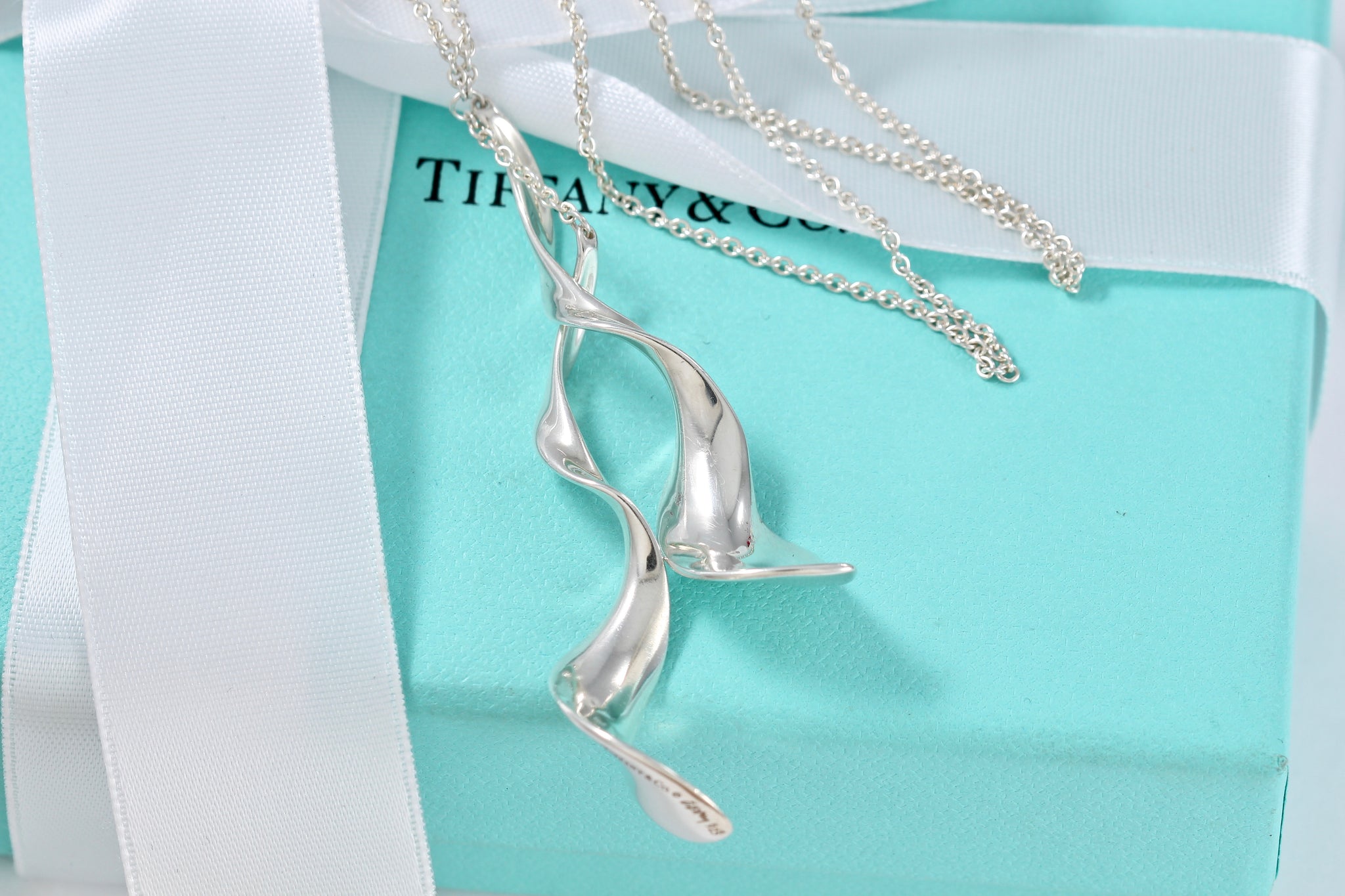 Tiffany & Co. Frank Gehry Silver Double Orchid Dangle Necklace