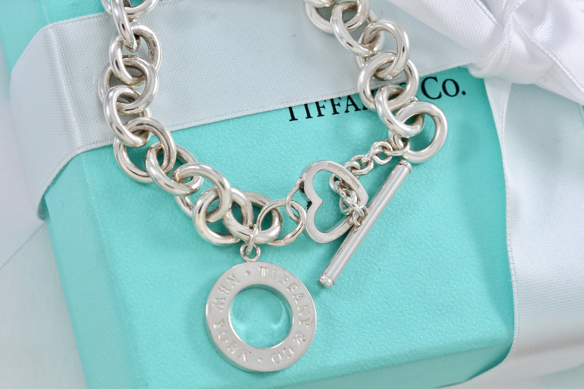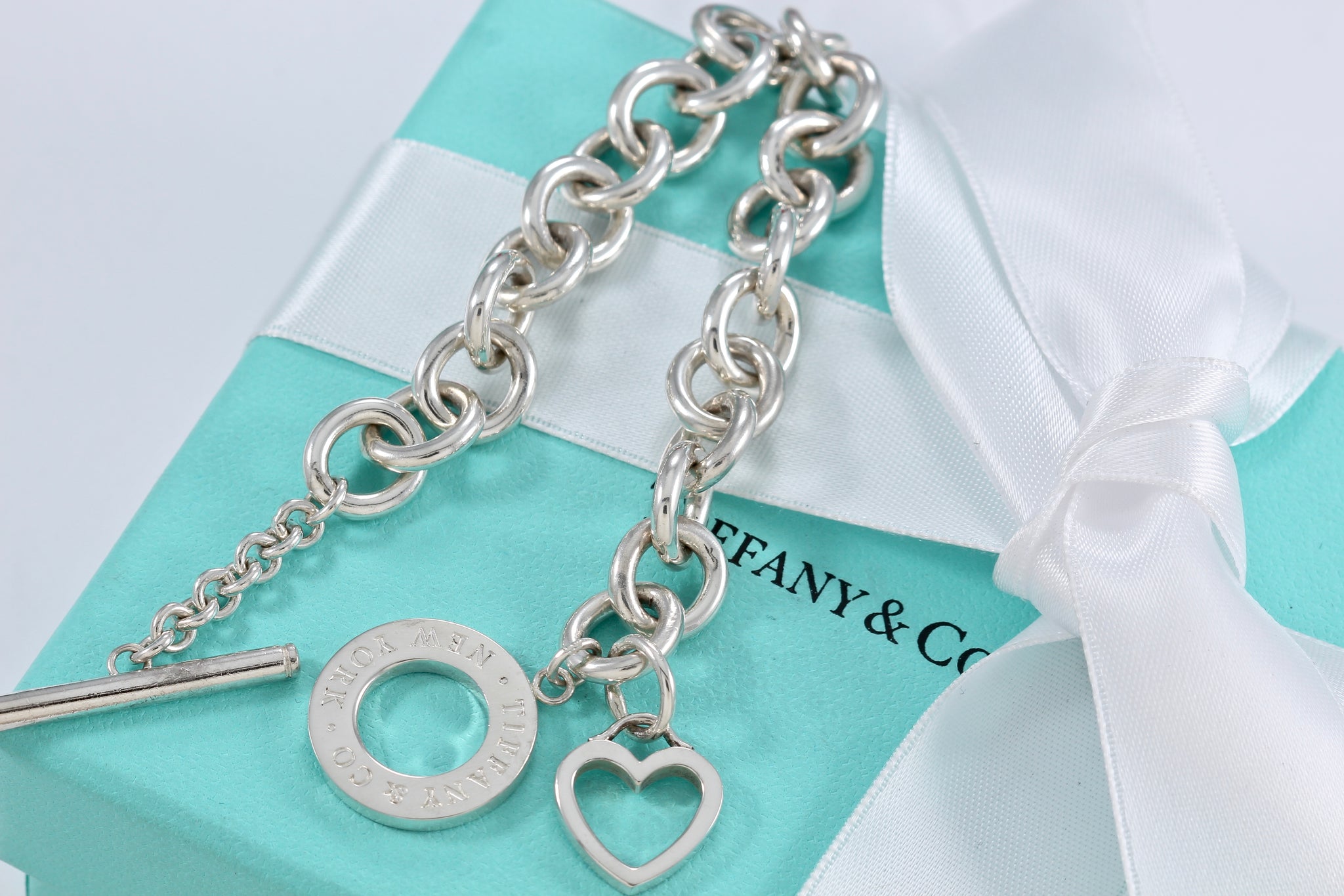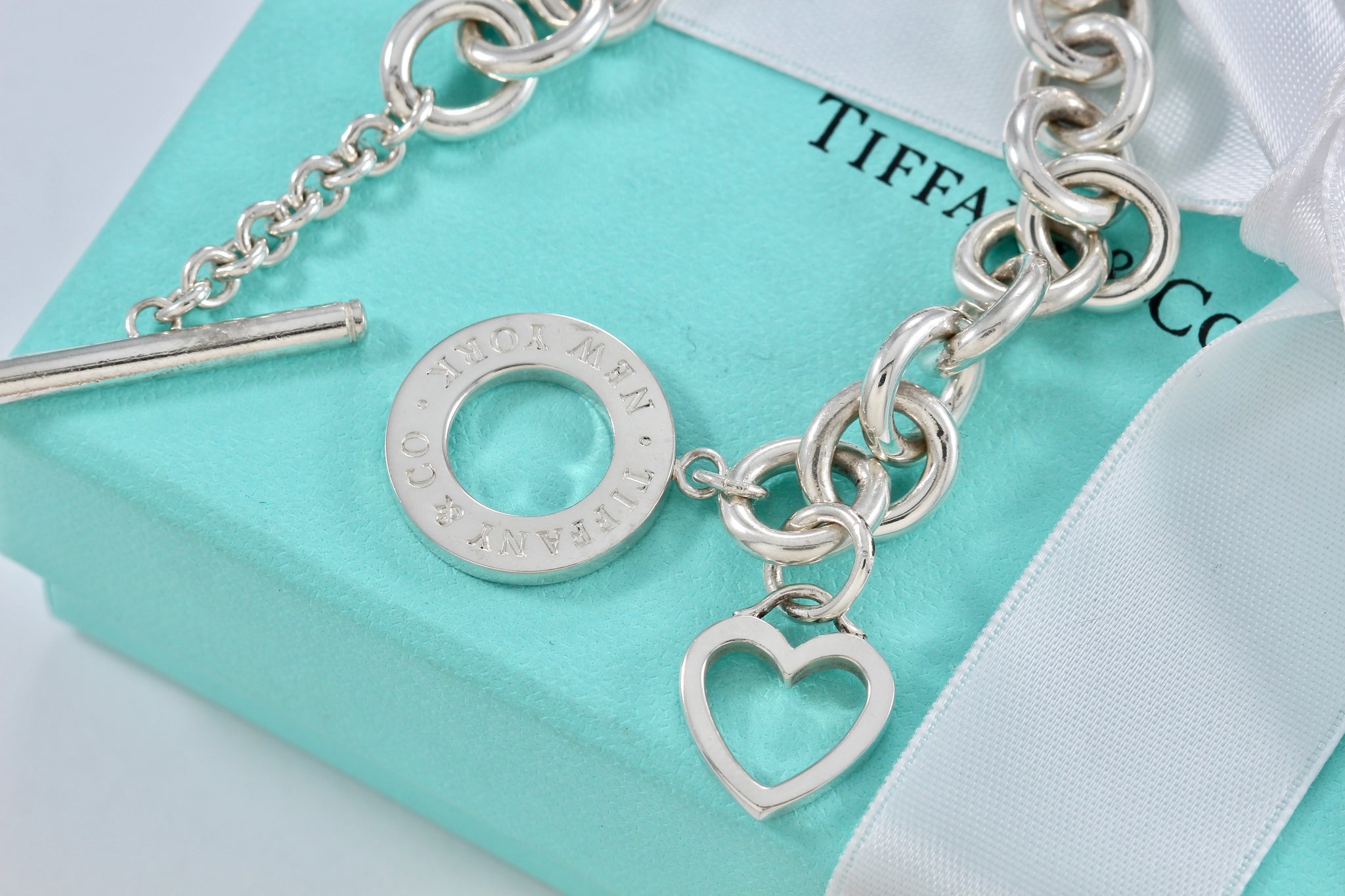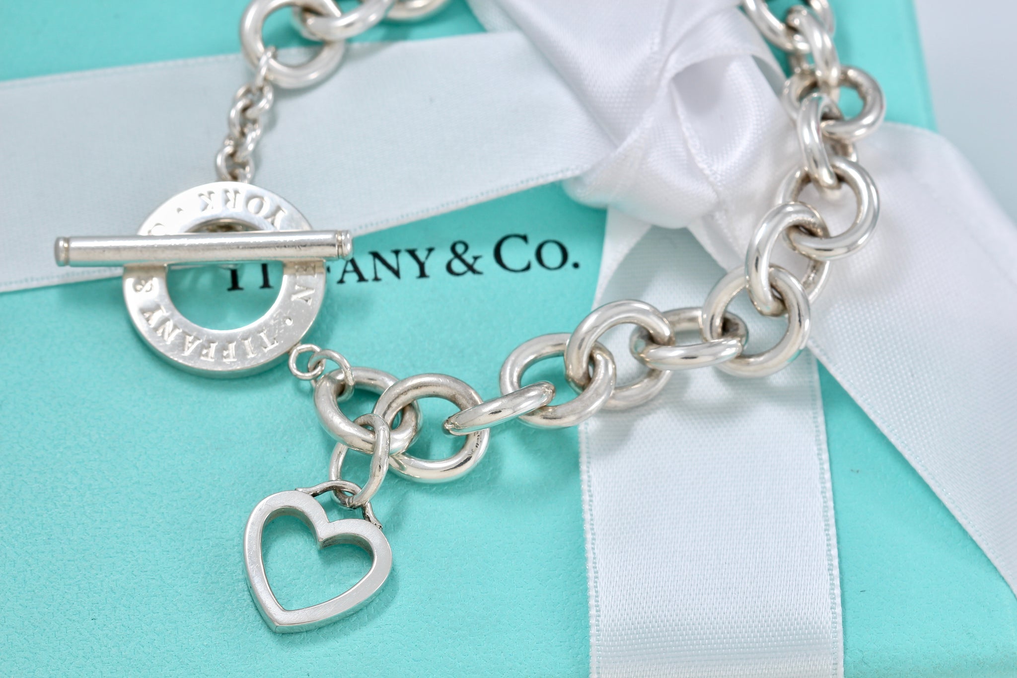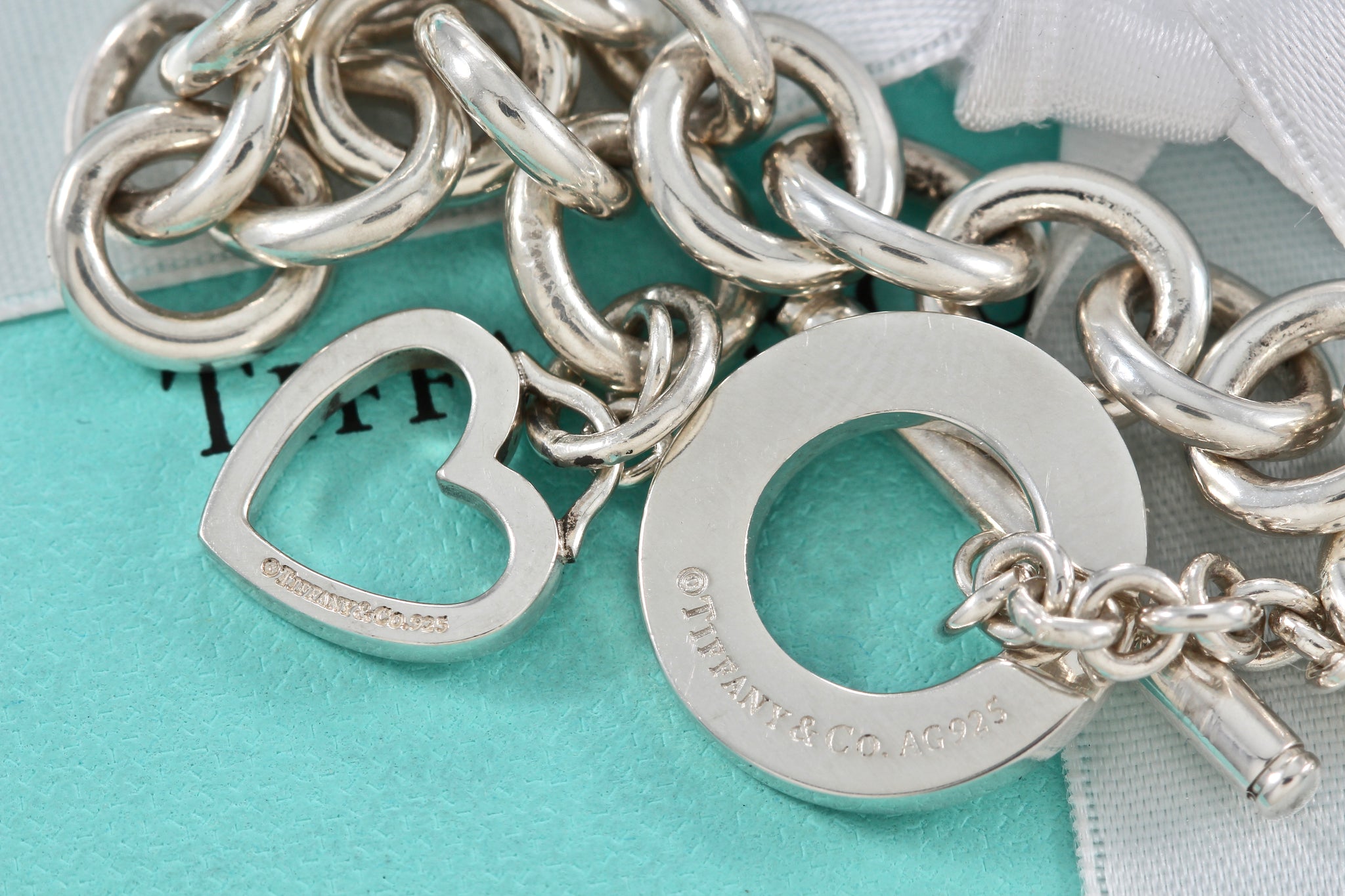 Tiffany & Co. Silver Heart Cutout Charm Dual Toggle Customized 7.5" Bracelet