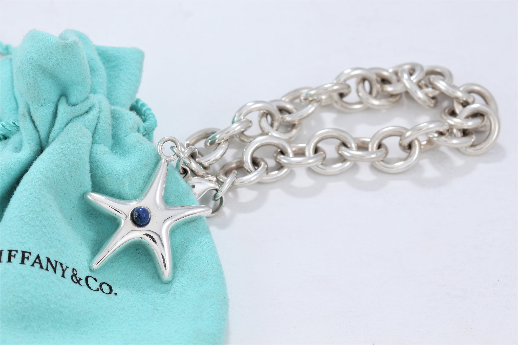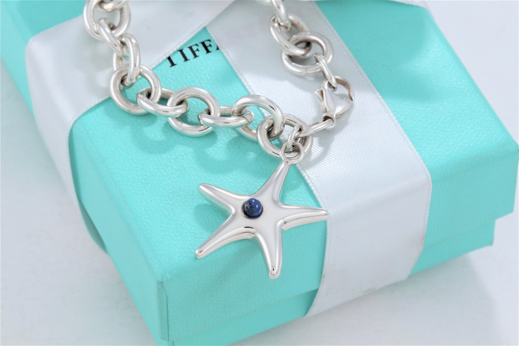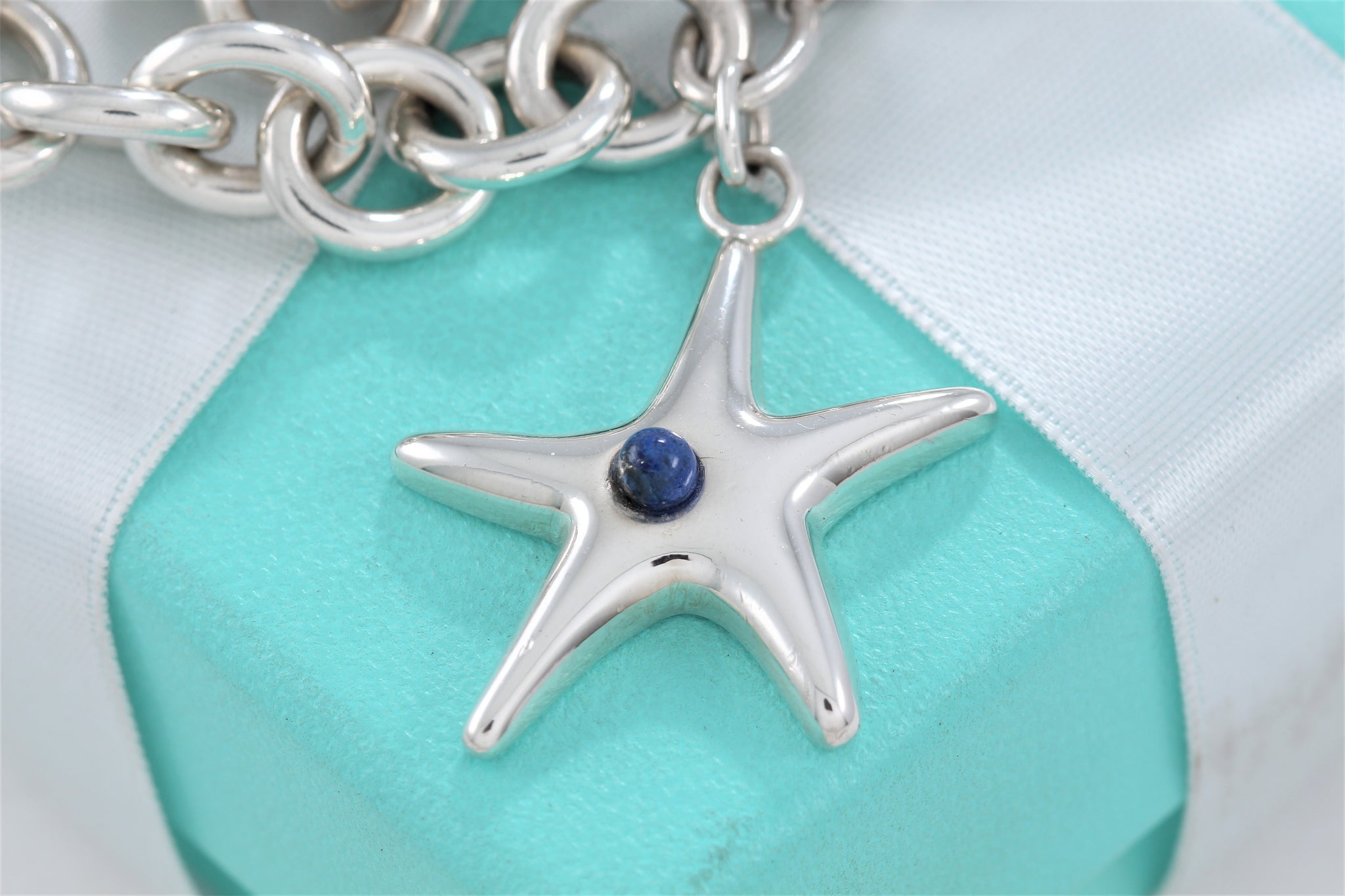 Tiffany & Co. Silver Lapis Bead Starfish Link 7" Bracelet