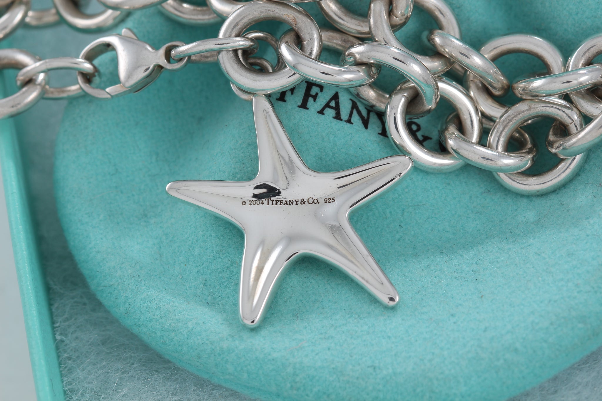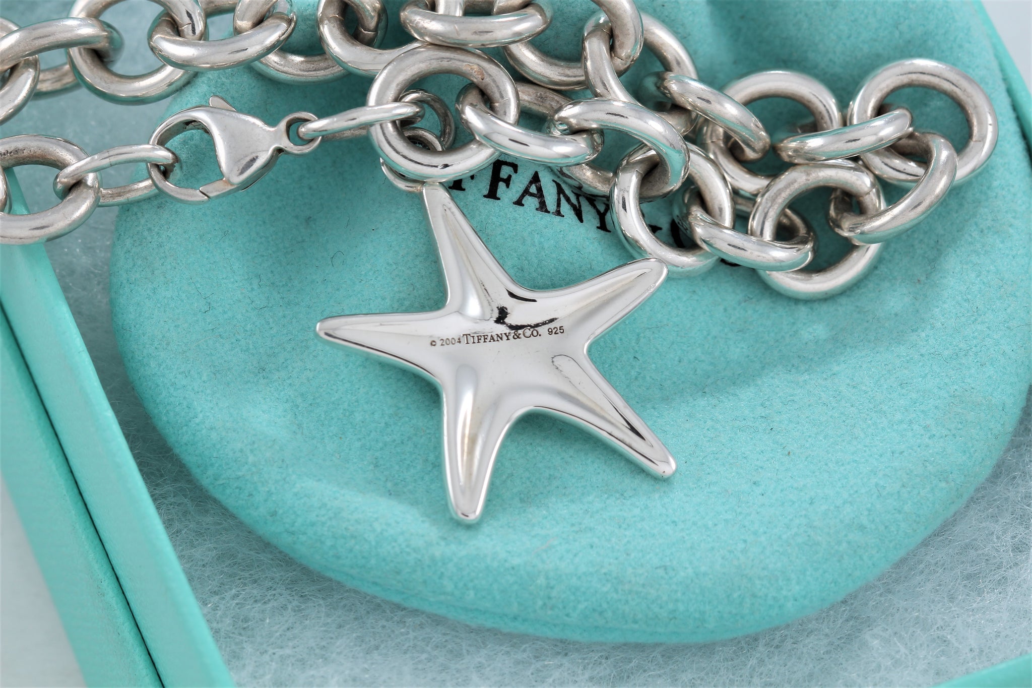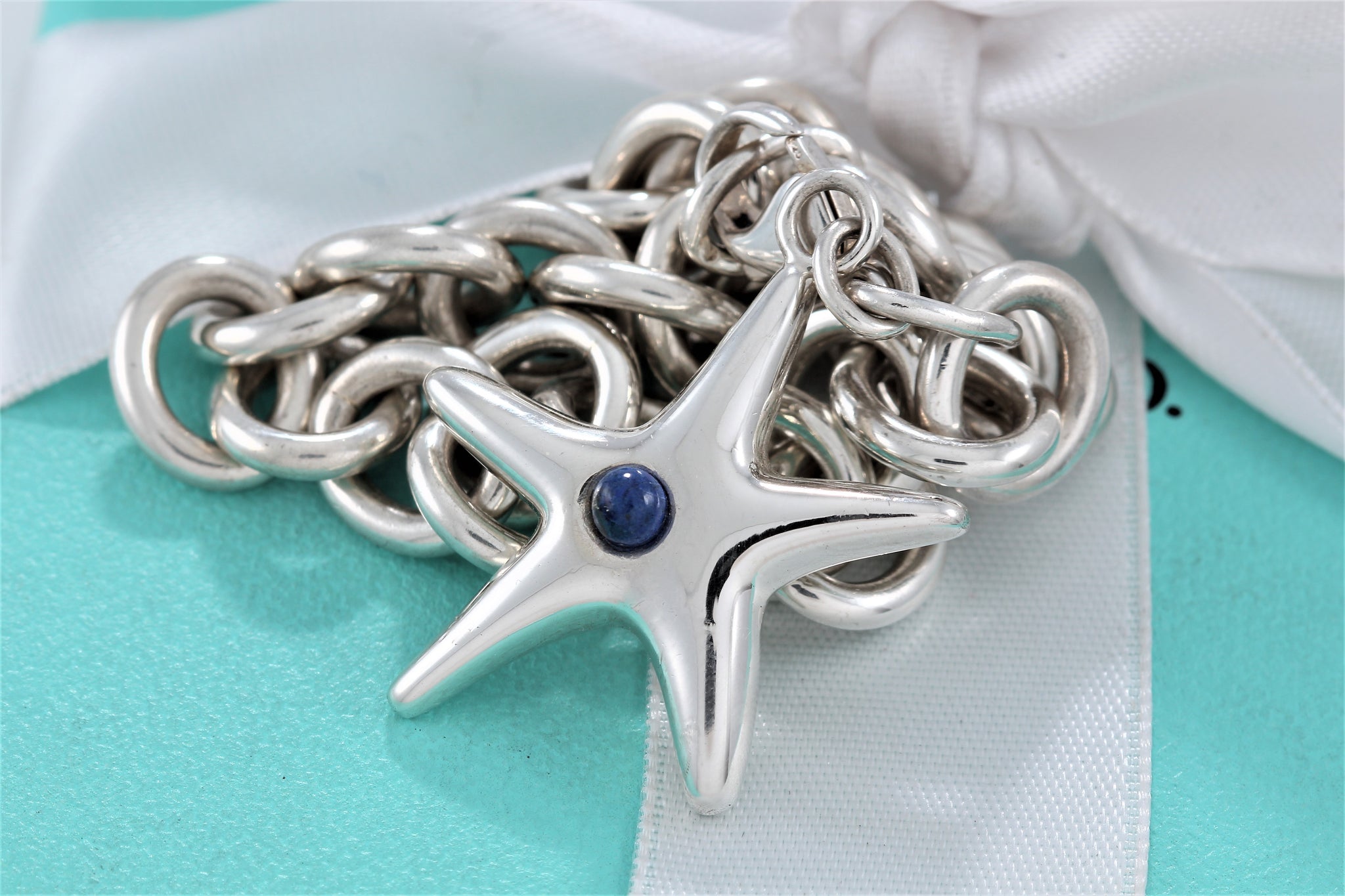 Tiffany & Co. Silver Lapis Bead Starfish Link 7" Bracelet