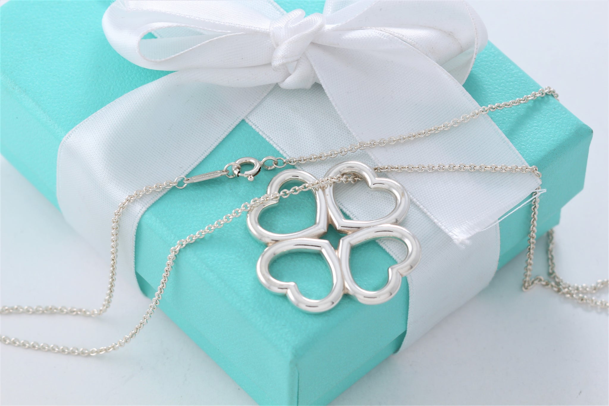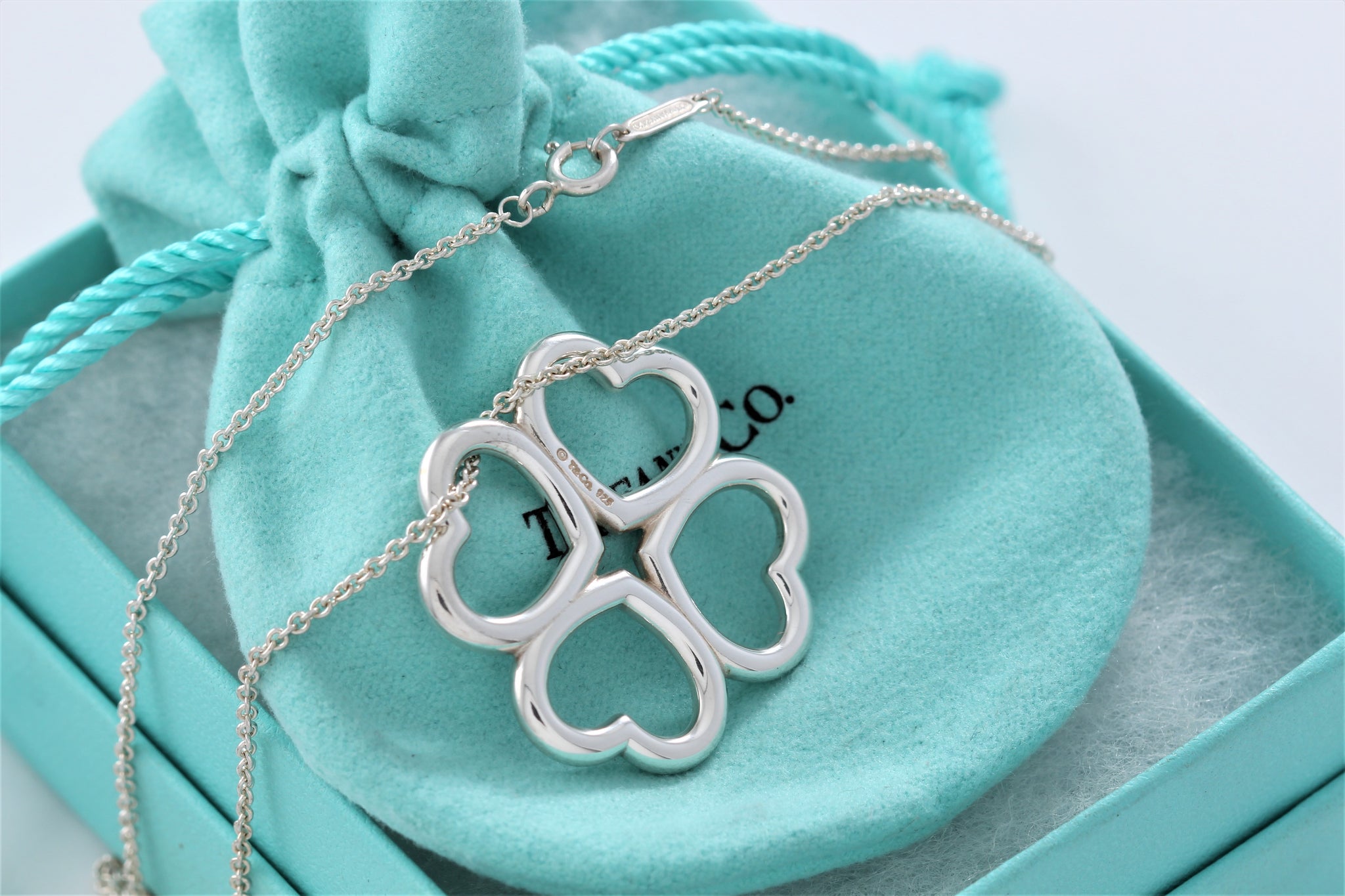 Tiffany & Co. Silver Large 4 Clover Heart Charm Necklace