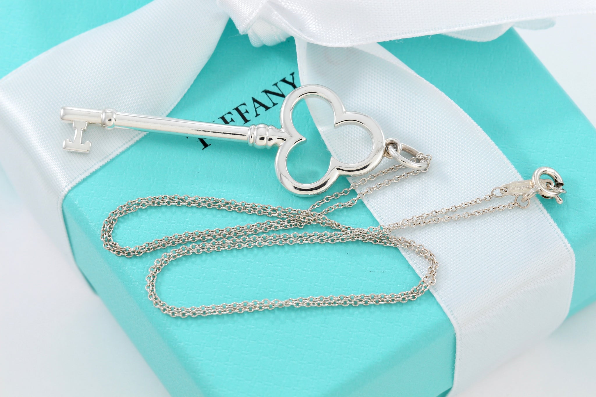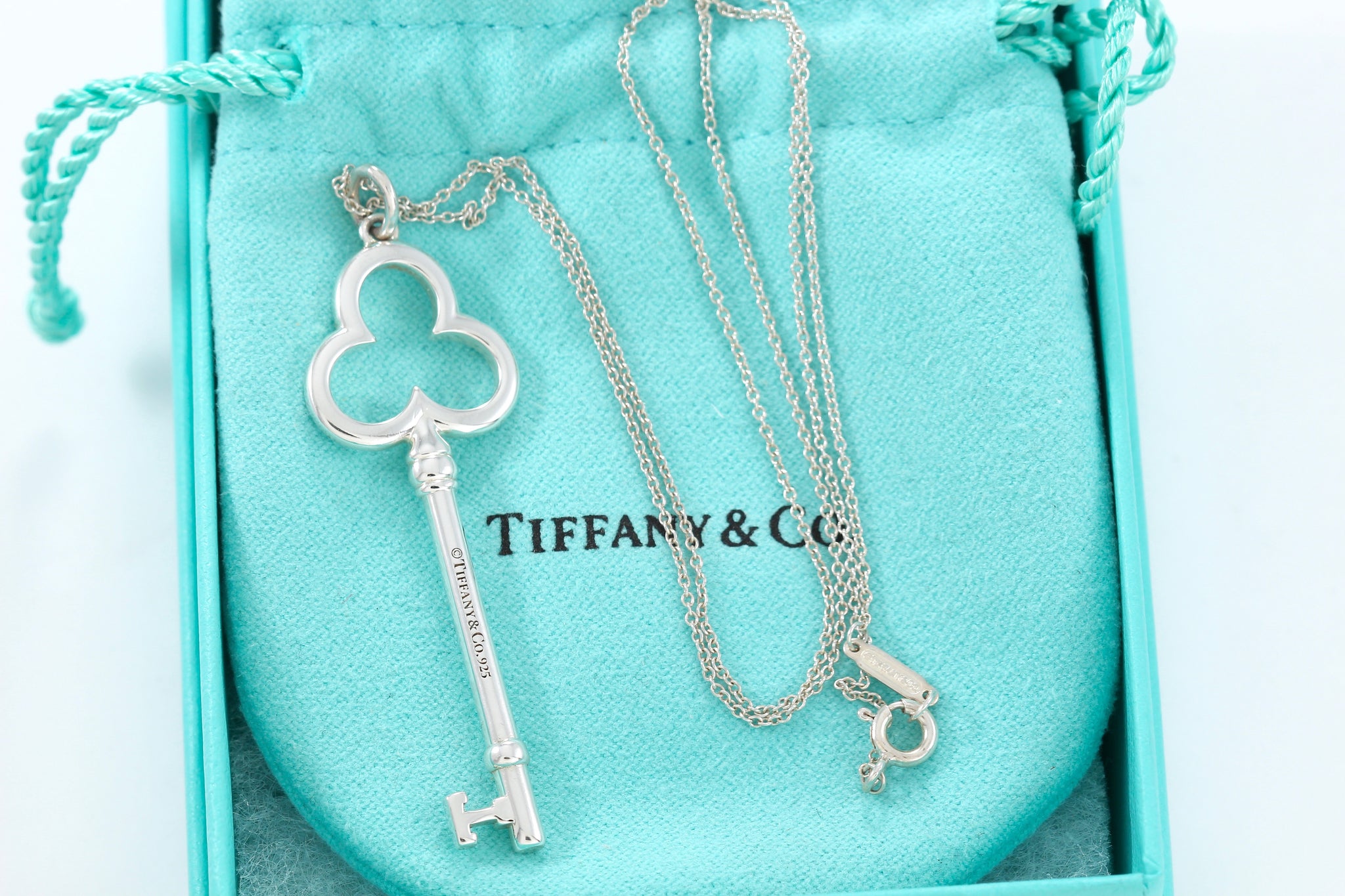Tiffany & Co. Silver Large Trefoil Key Pendant Link Chain 18" Necklace