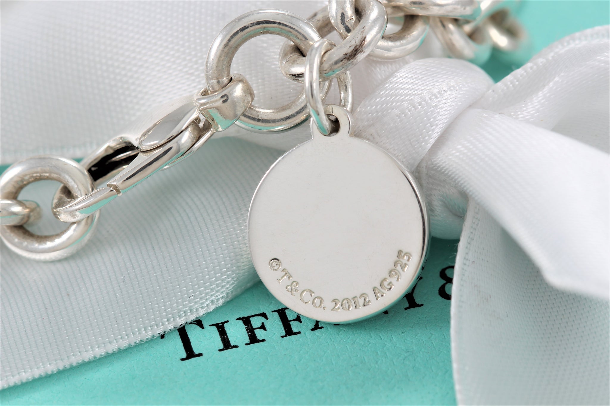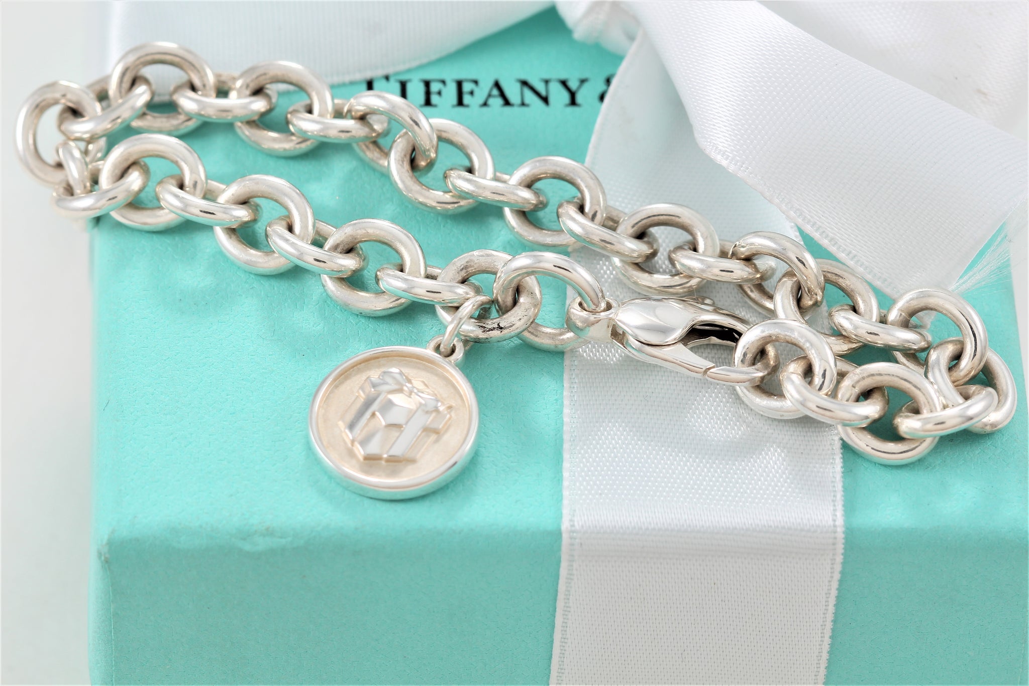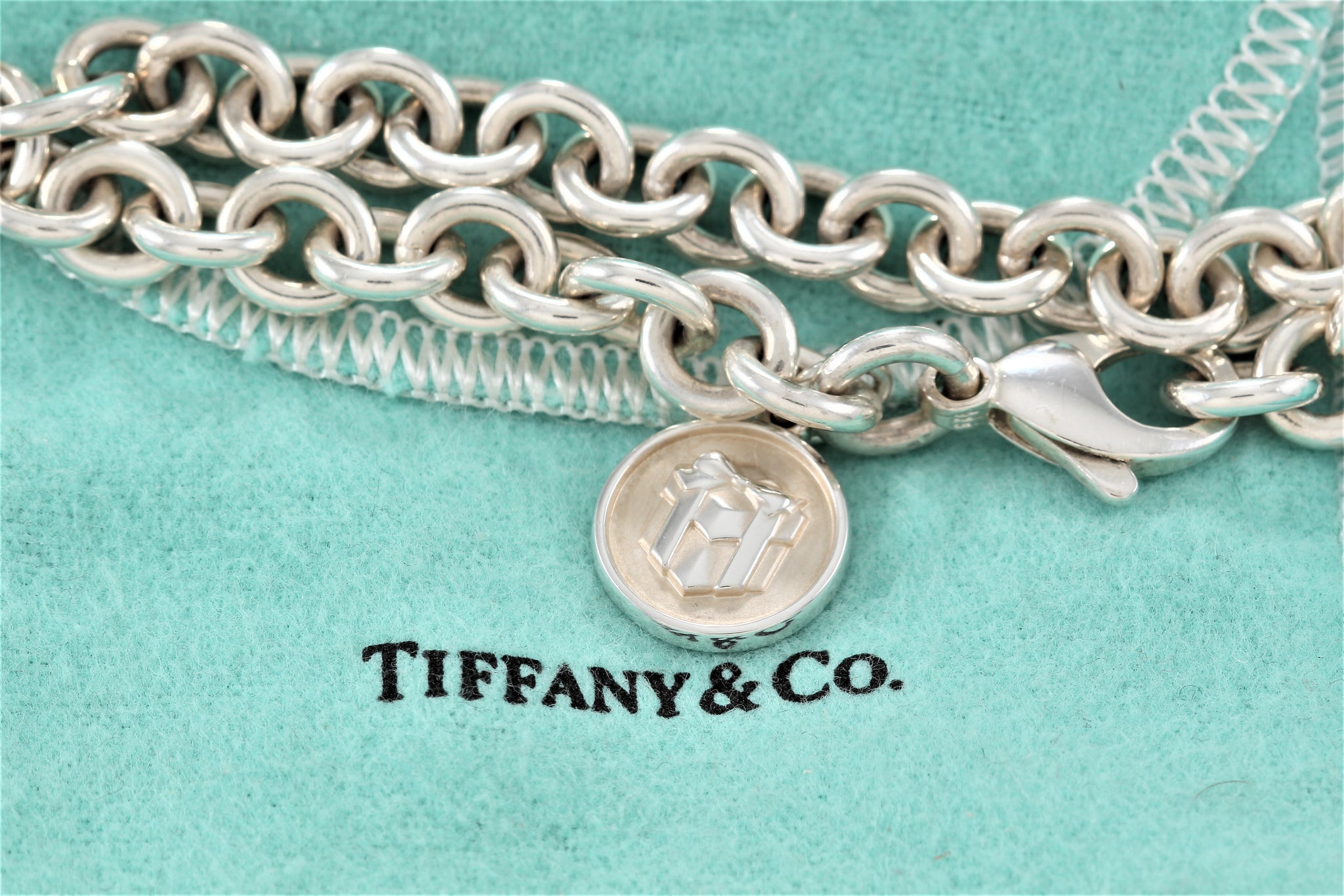 Tiffany & Co. Silver Lexicon Round Giftbox Charm 7.5" Bracelet