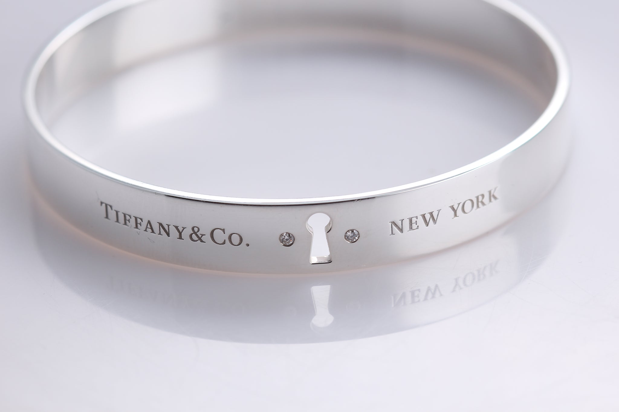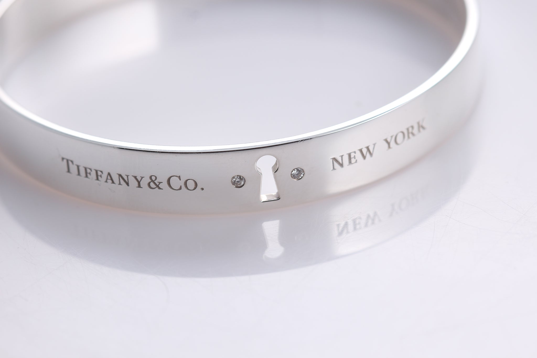 Tiffany & Co. Silver Locks 2 Diamond Keyhole Bangle Bracelet