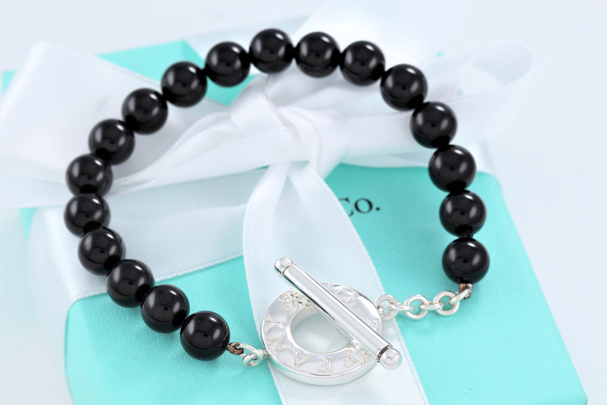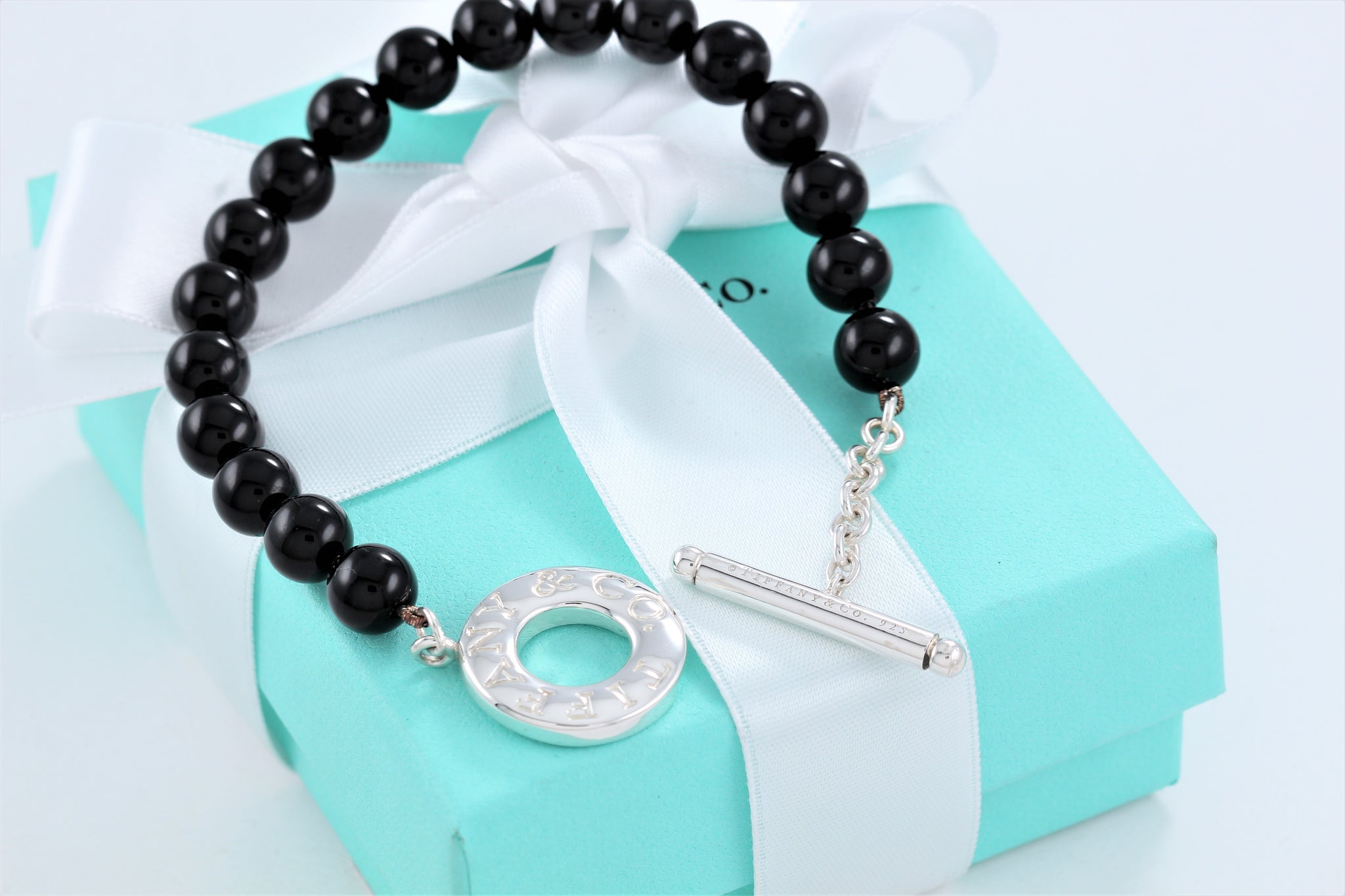 Tiffany & Co. Silver Onyx 8mm Beaded Toggle 8" Bracelet