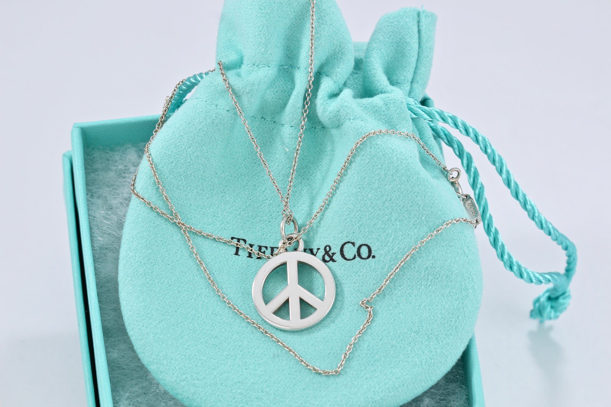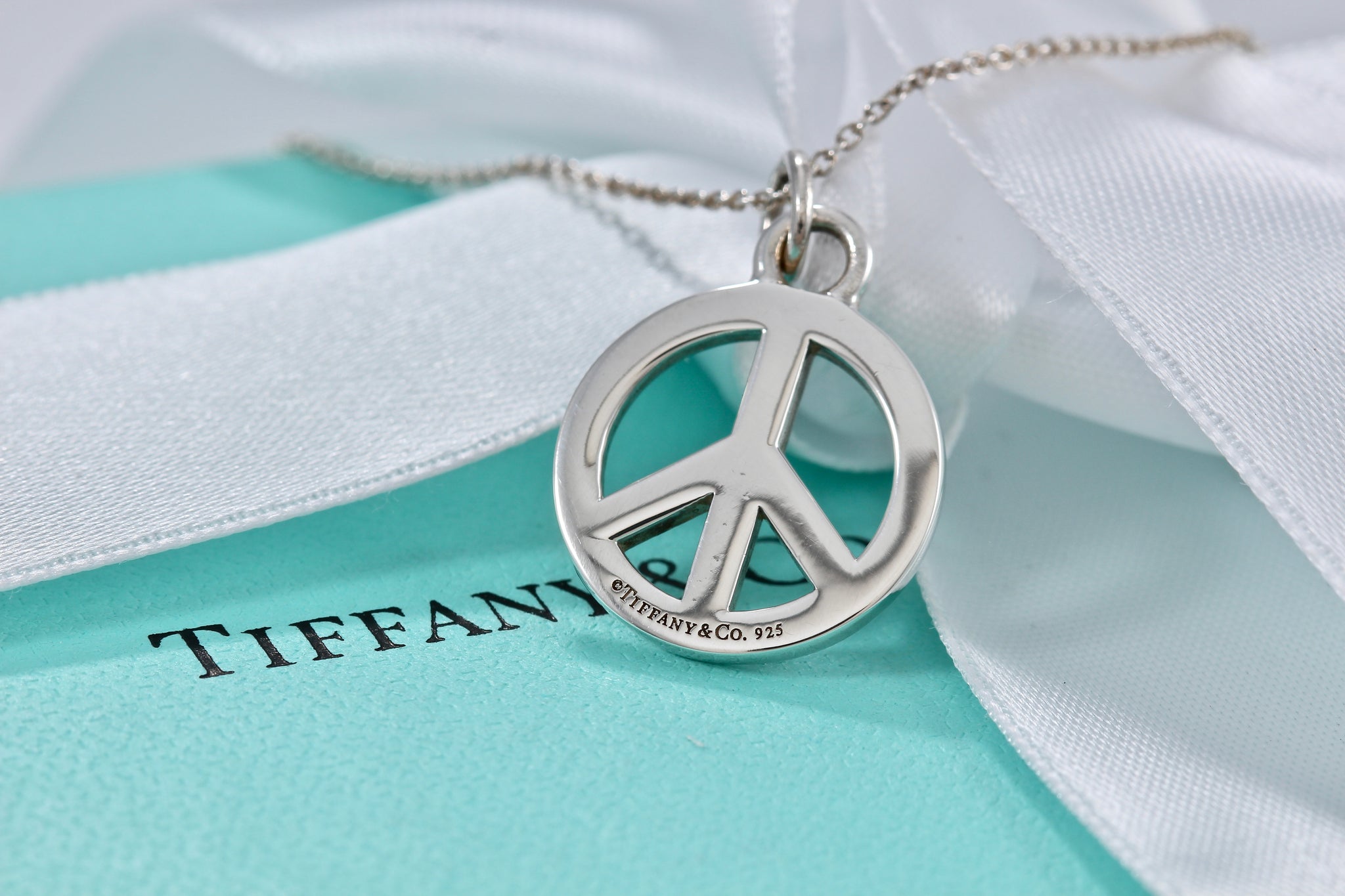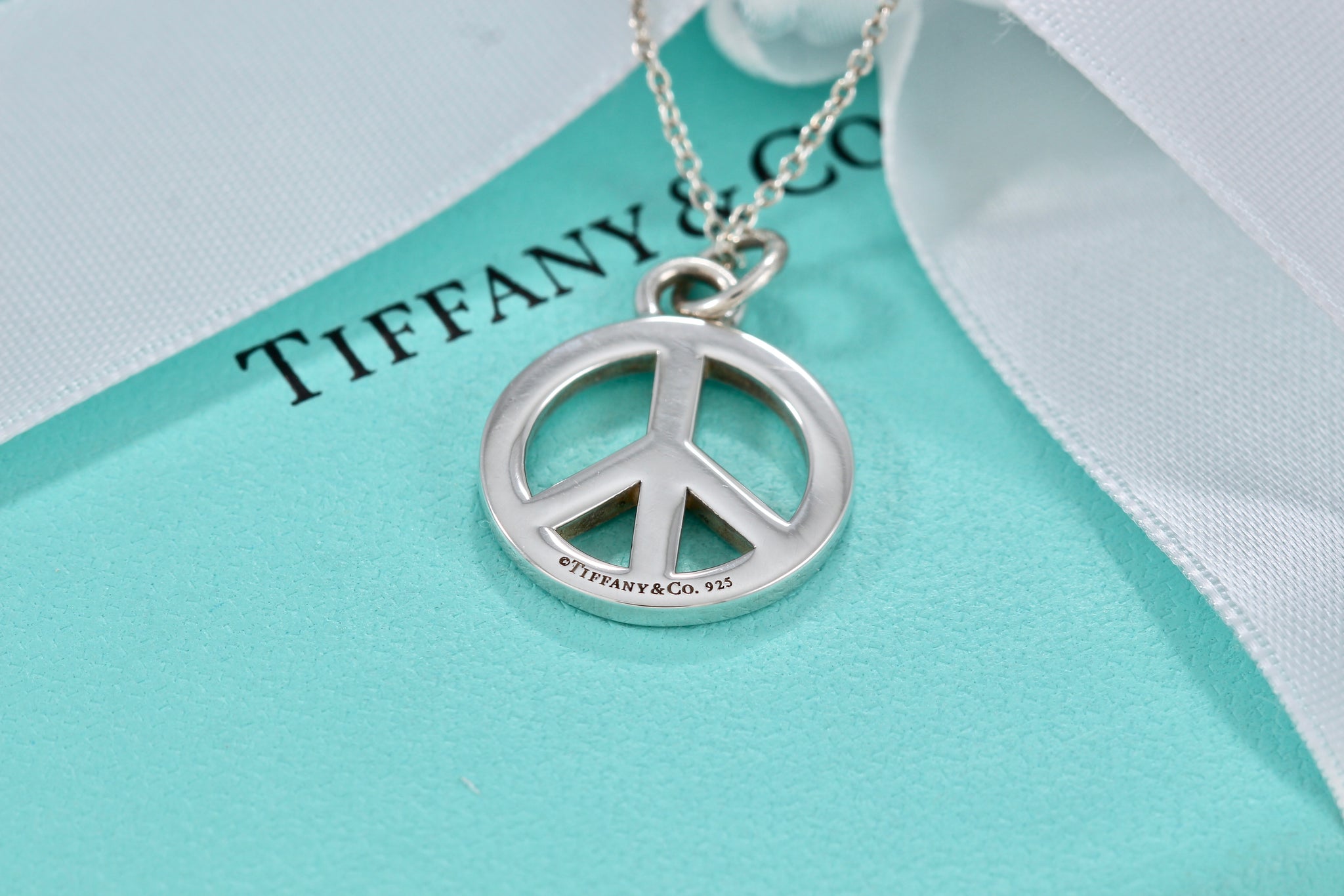 Tiffany & Co. Silver Peace Sign Pendant 16" Necklace