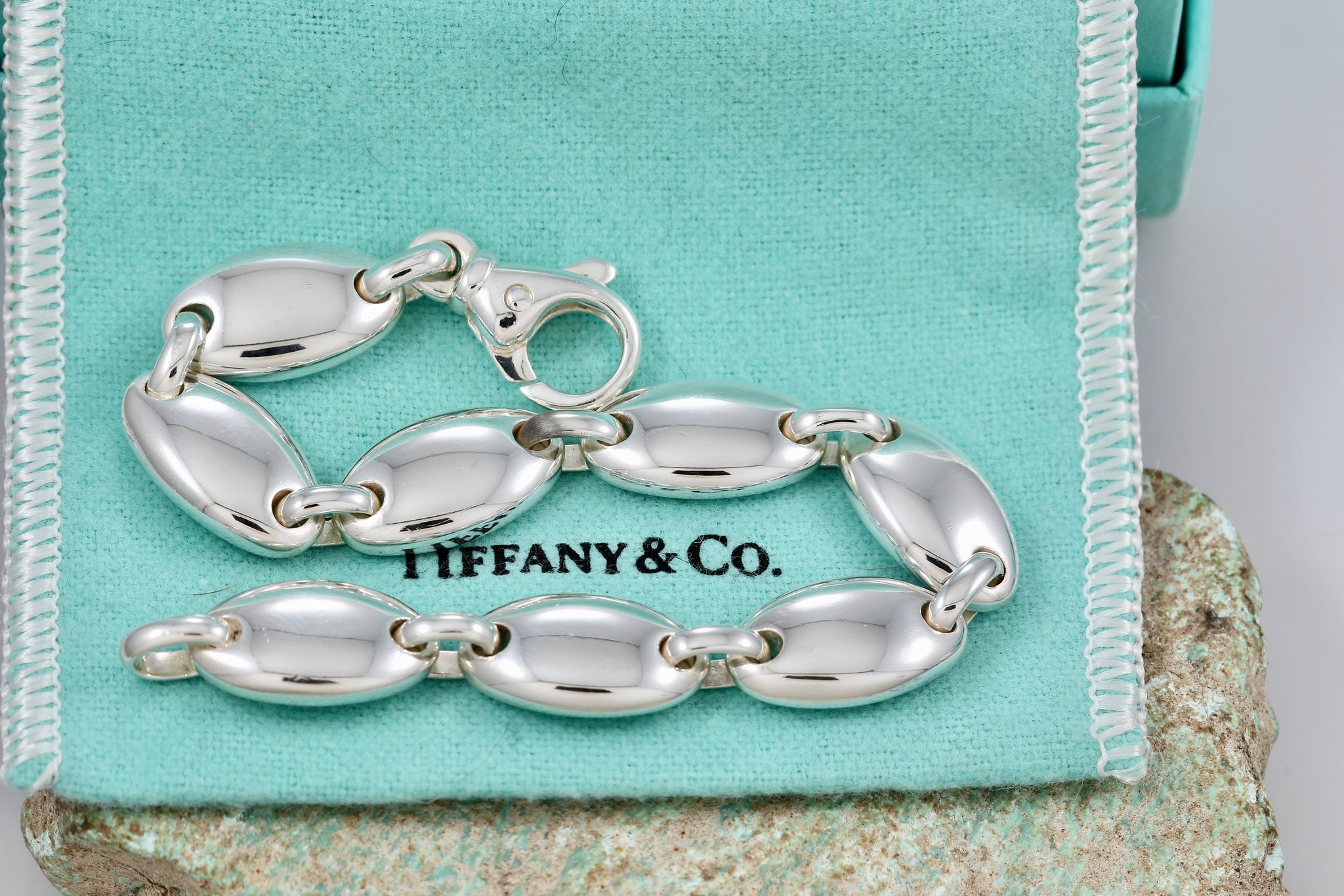 Tiffany & Co. Silver Pebble Stone Heavy Link 7.5" Bracelet